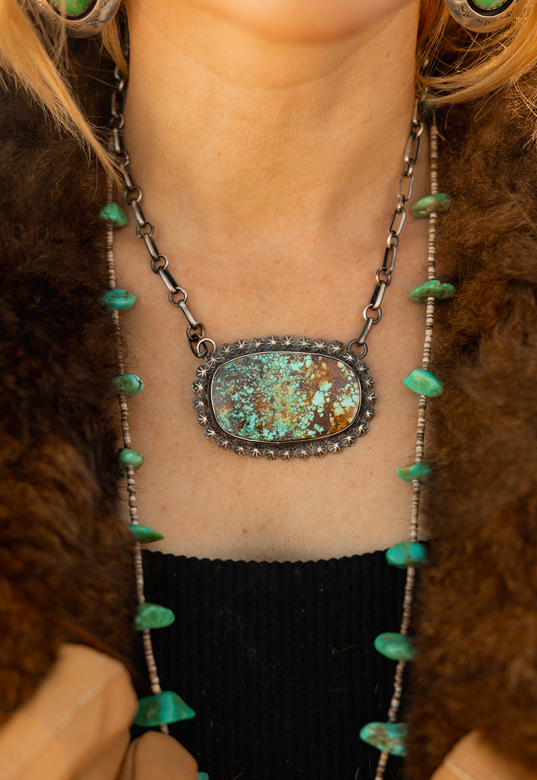 As a family-owned haven for all things artisanal, we've built strong bonds with our talented creators. Each stone and jewelry piece is stamped with the artist's seal of approval, ensuring its genuine pedigree. Crafted by the hands of Zuni, Navajo, Hopi, and Santo Domingo tribes, our collection is a treasure trove of high-quality, natural American turquoise jewelry that sings with authenticity.