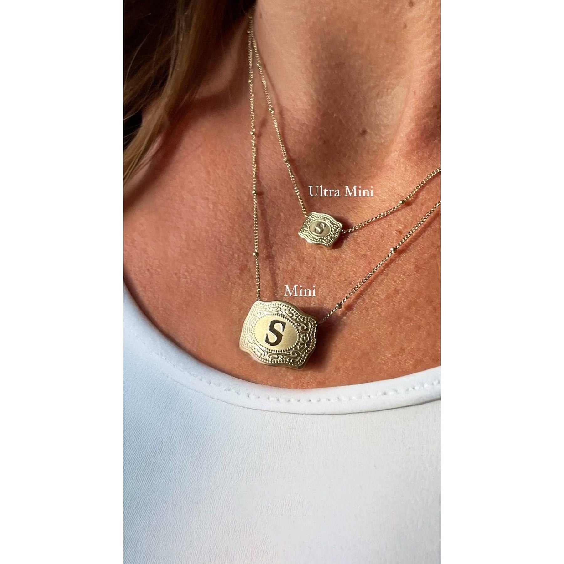 SpurWest Ultra Mini Belt Buckle Necklace (Initial) - Gold: Gold / R