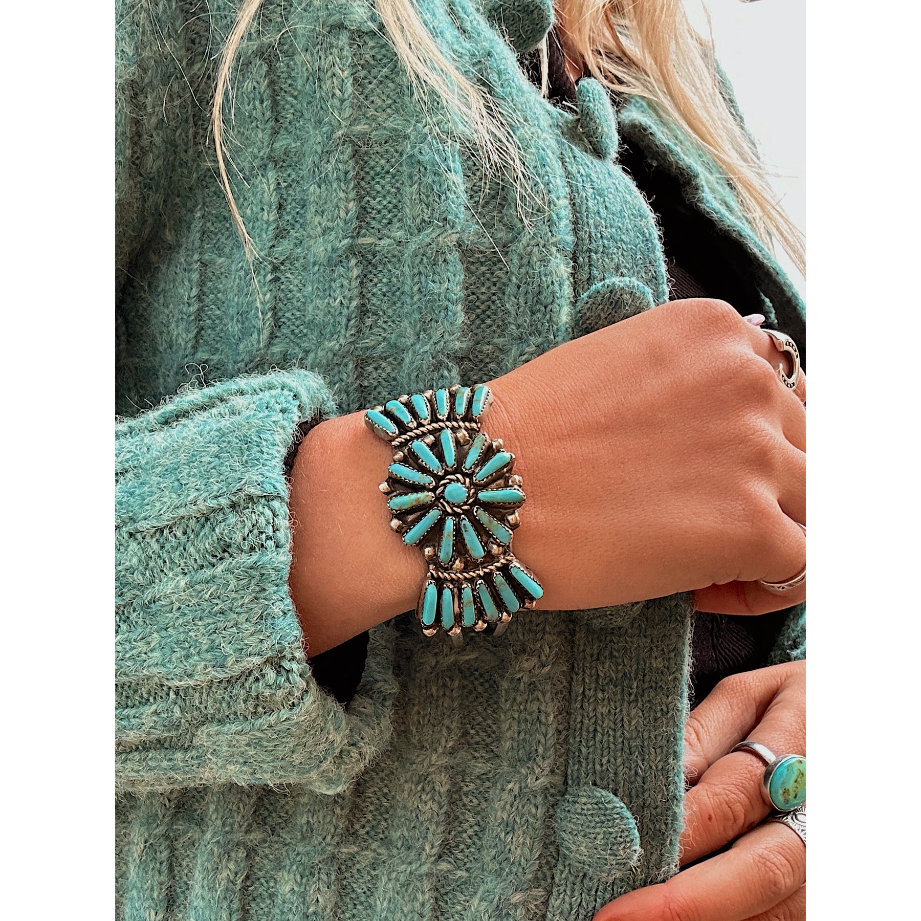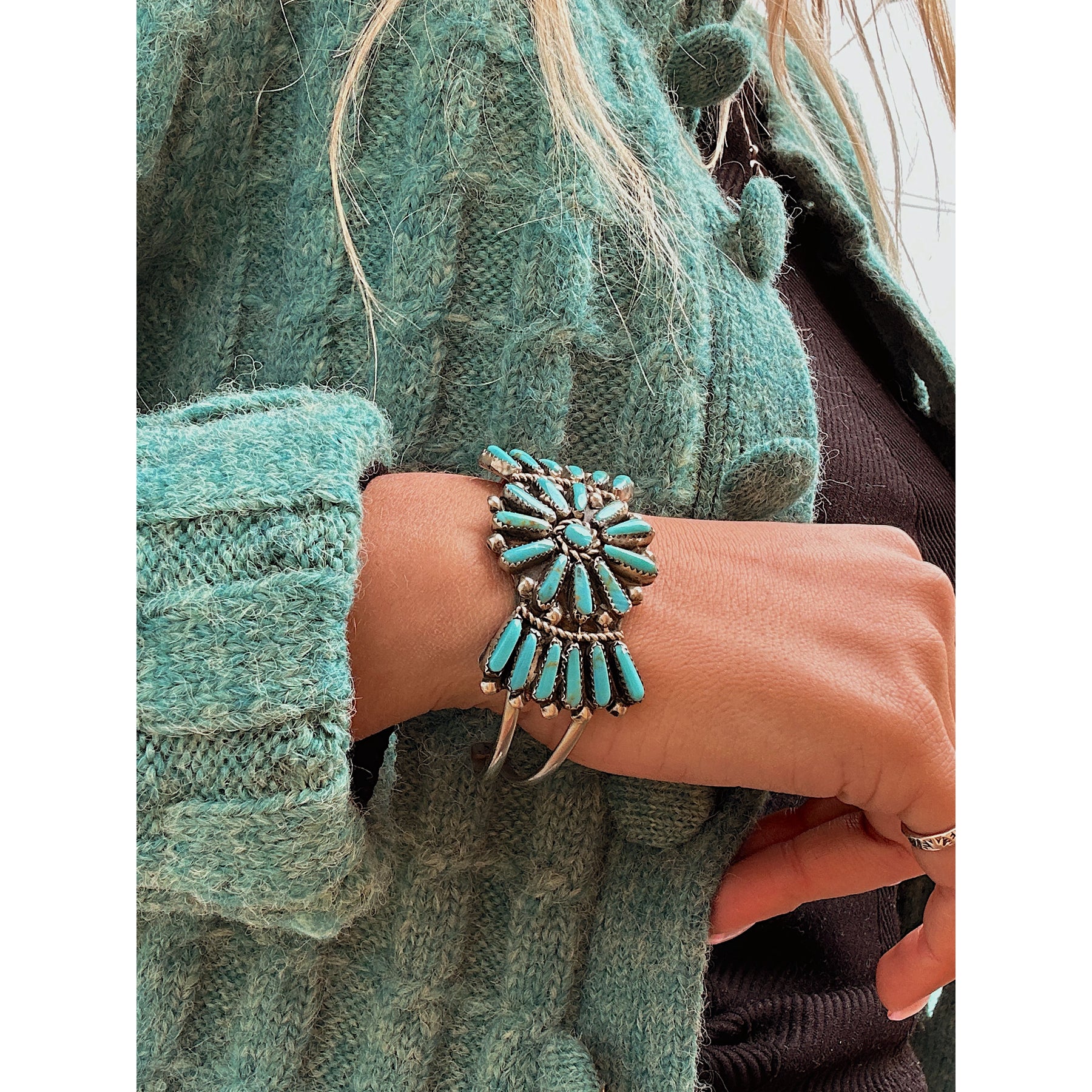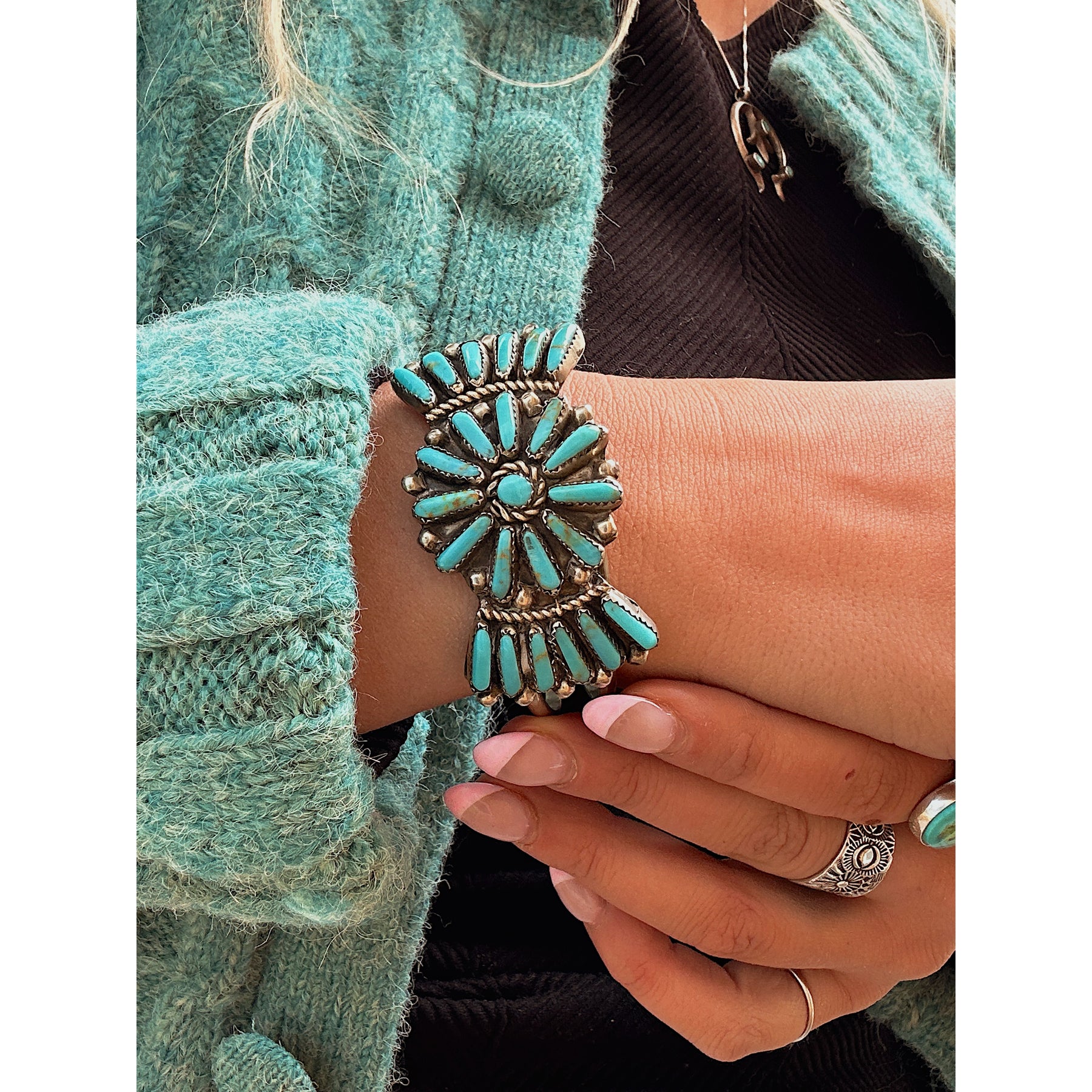 Vintage Zuni Sterling Silver Turquoise Cuff Native Made Bracelet