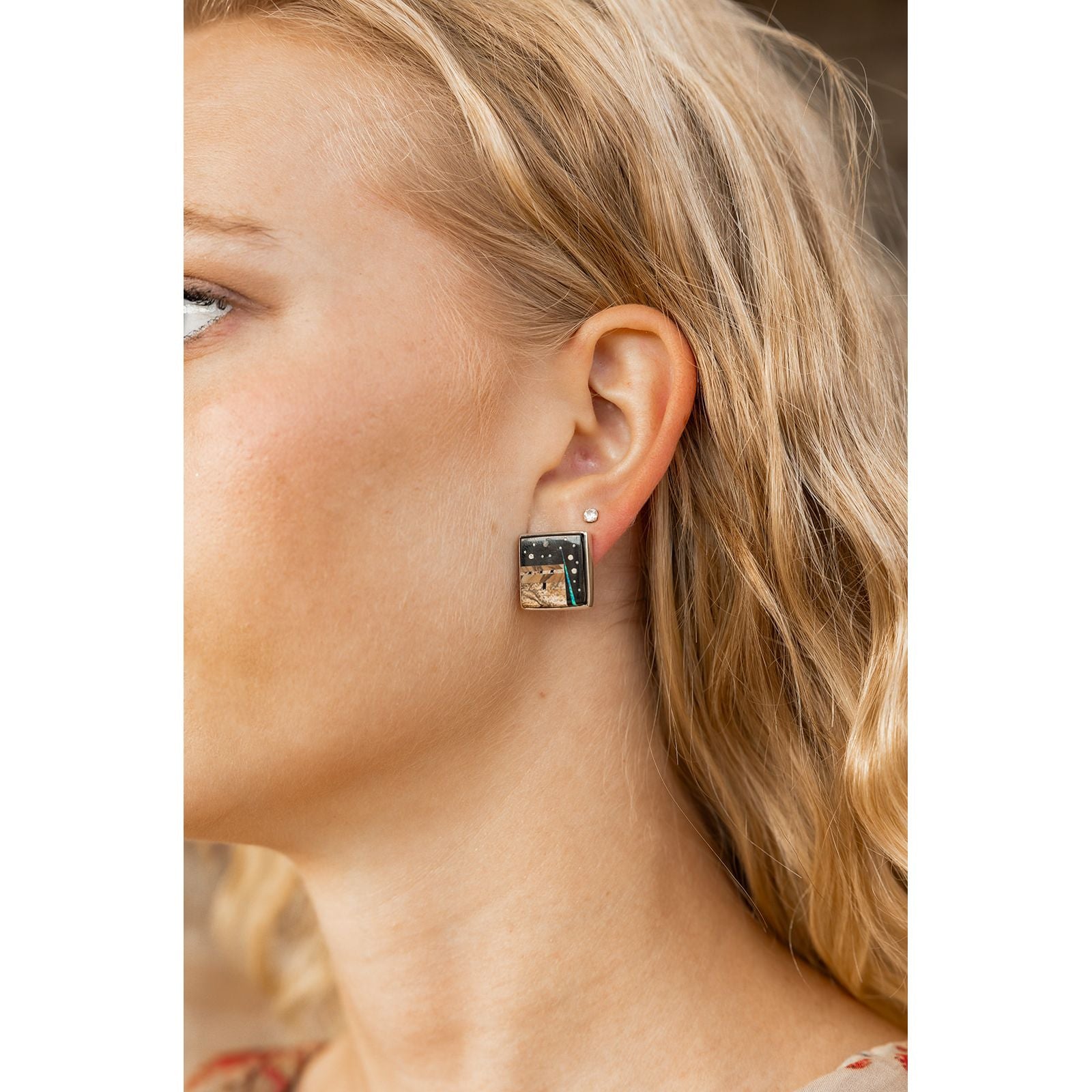Calvin Begay Pueblo Night Sky Square Post Earrings FD