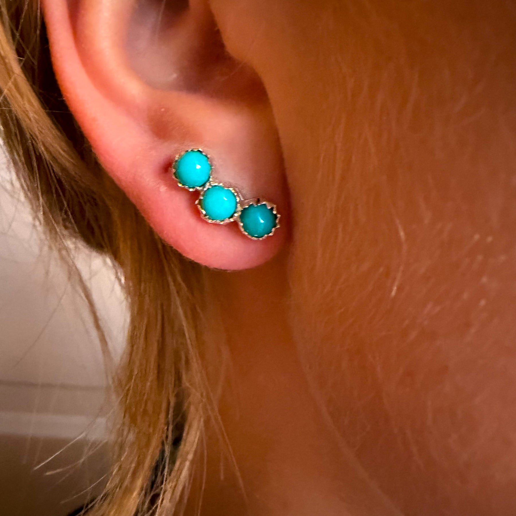 3 Stone Kingman Turquoise Earrings Sterling Silver Native Made
