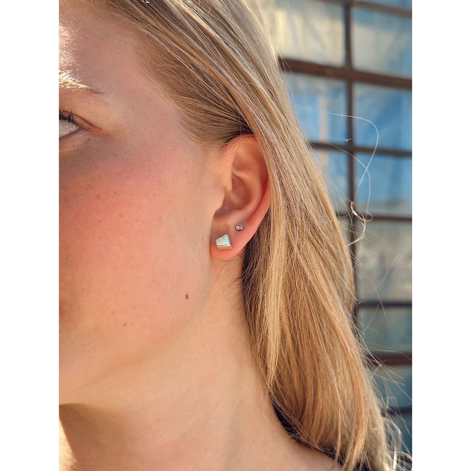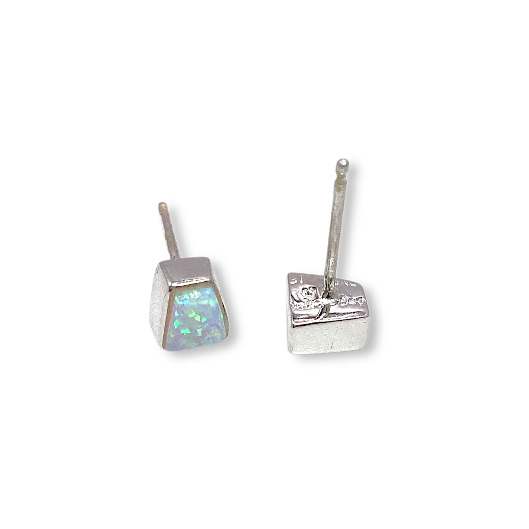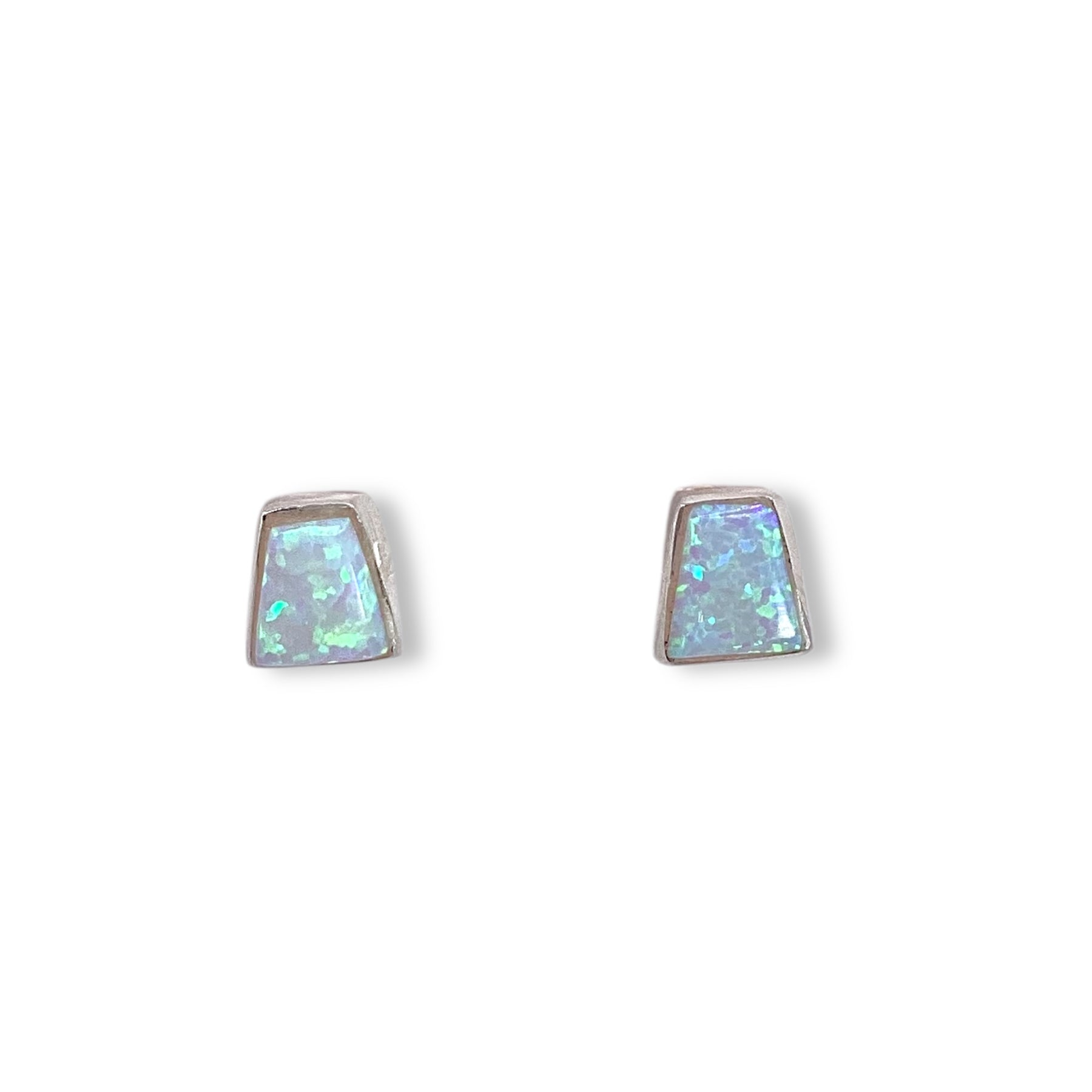 Calvin Begay Petite Opal Trapezoid Earrings Sterling Silver Native Made