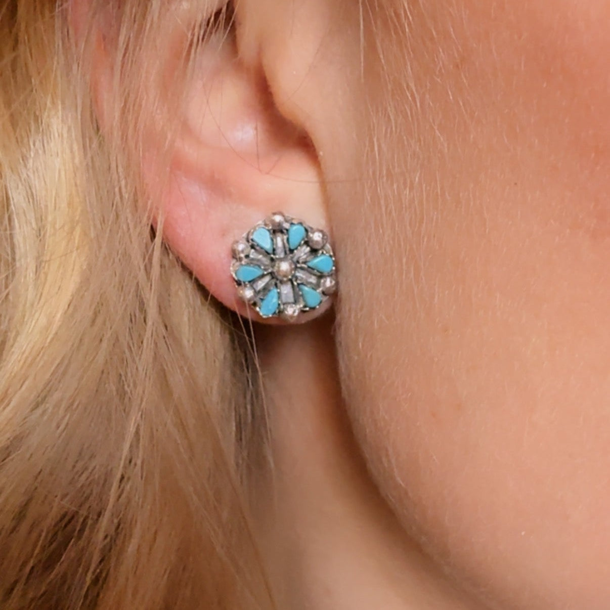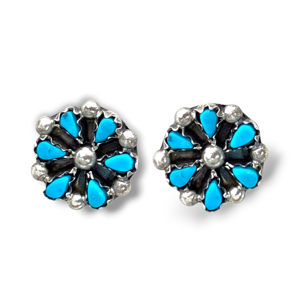 Zuni Authentic Turquoise Petite Point Flower Earrings