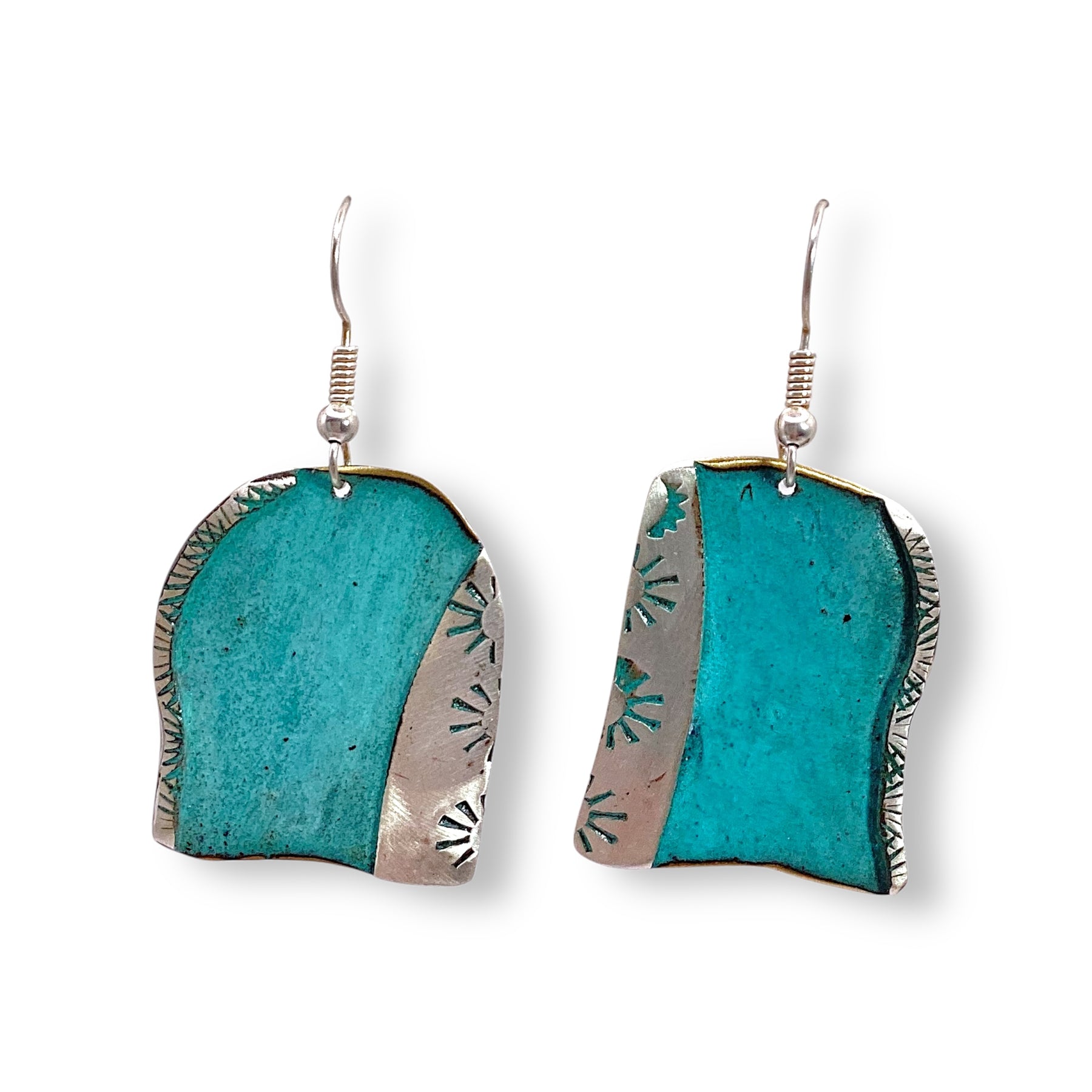 Lazaro Gutierrez Patina Earrings Solid Brass and Sterling Silver