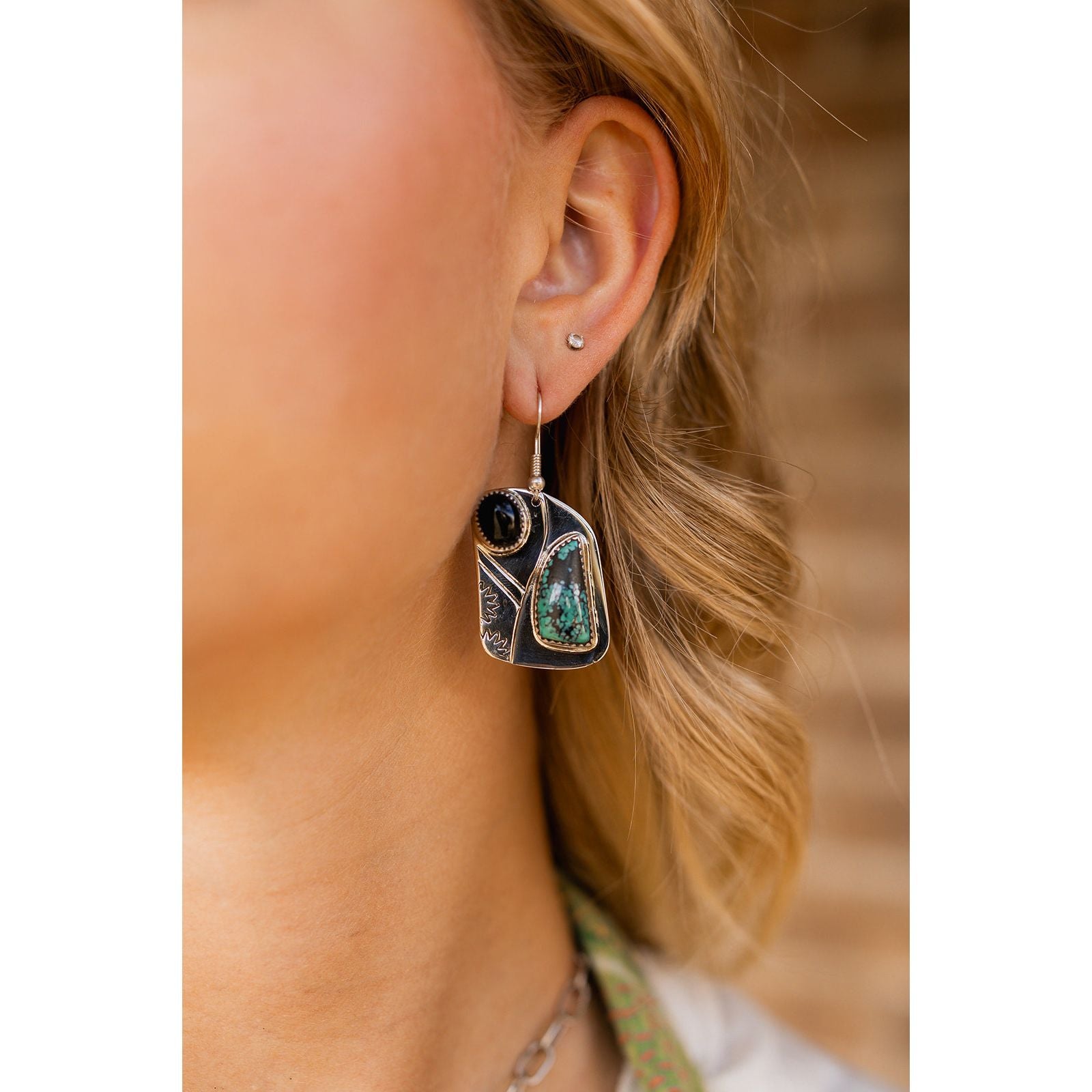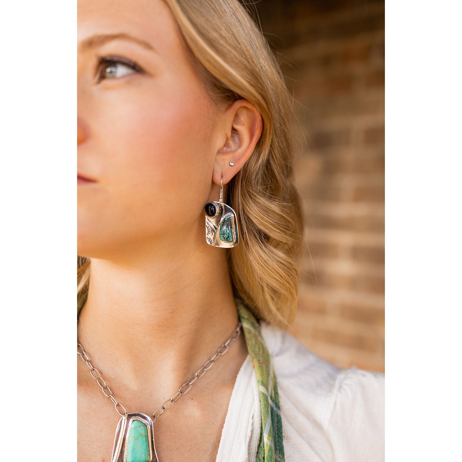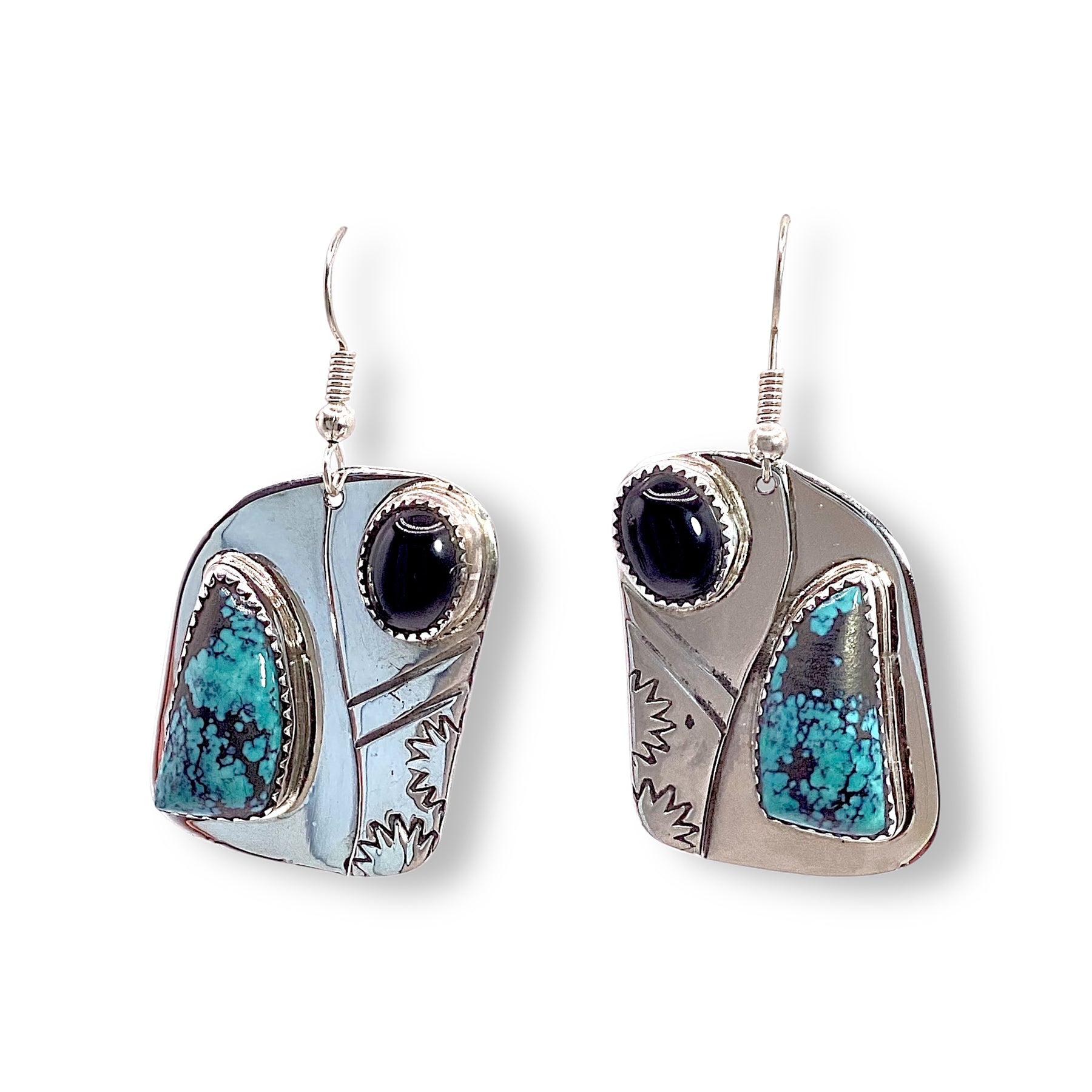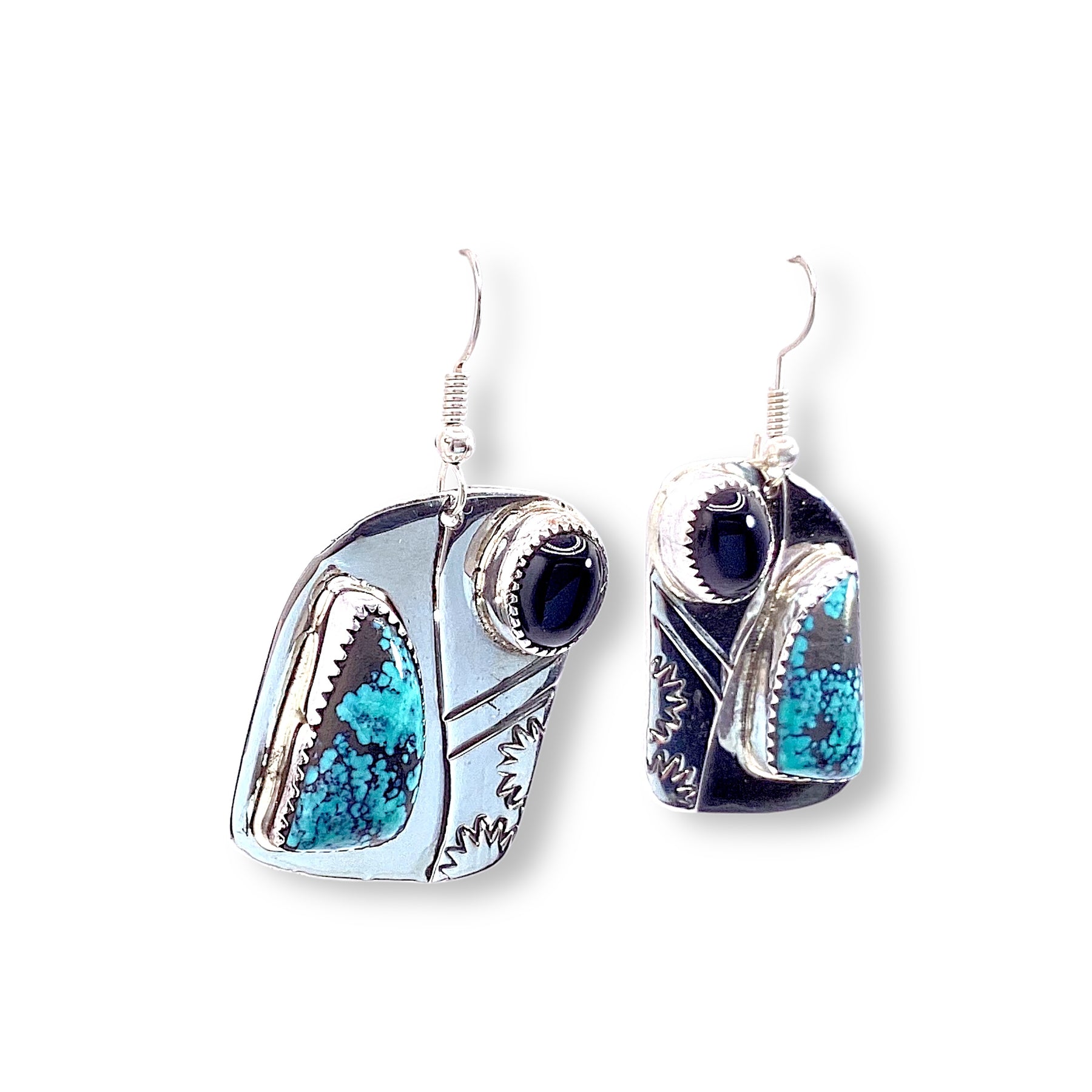 Lazaro Gutierrez Turquoise And Black Onyx Sterling Silver Earrings