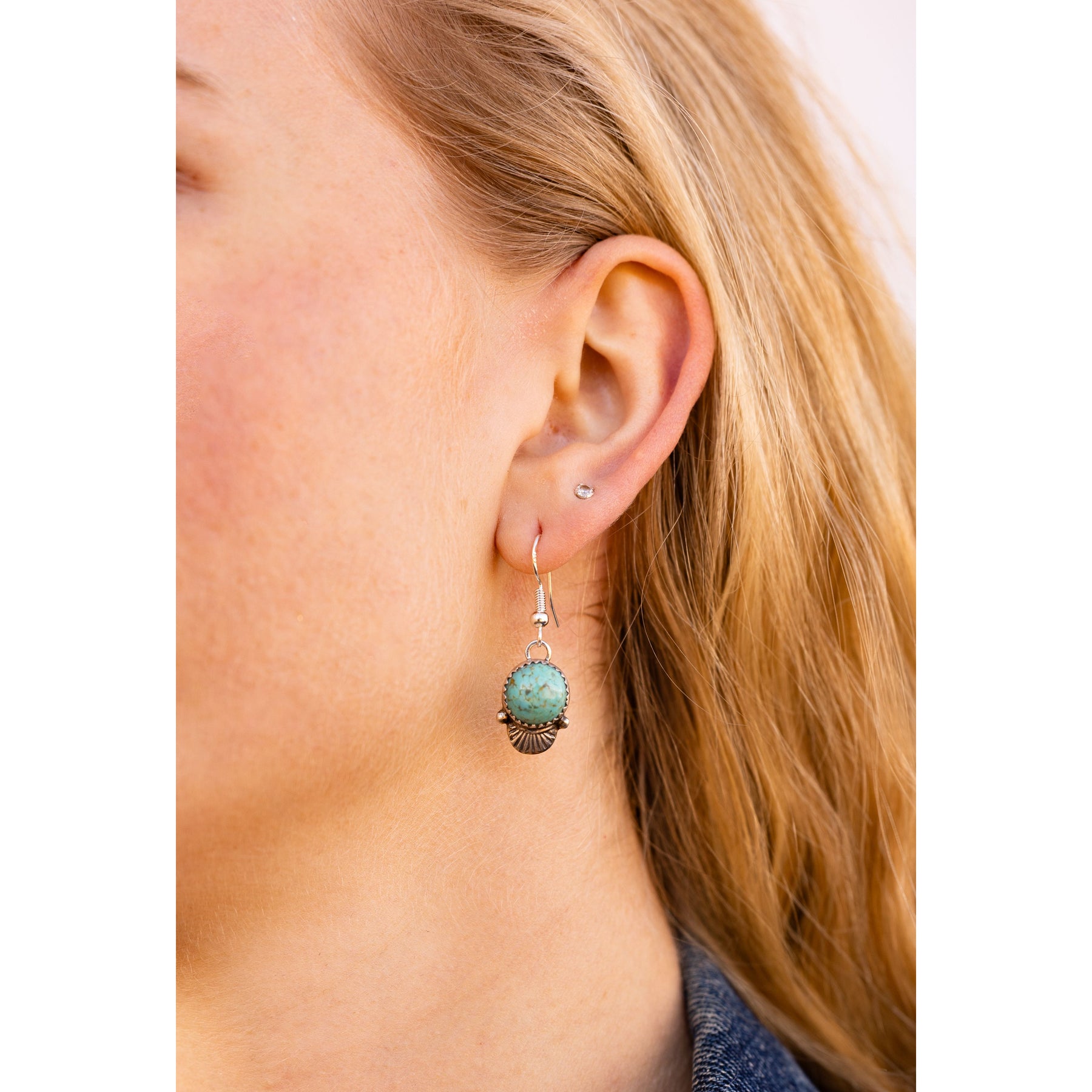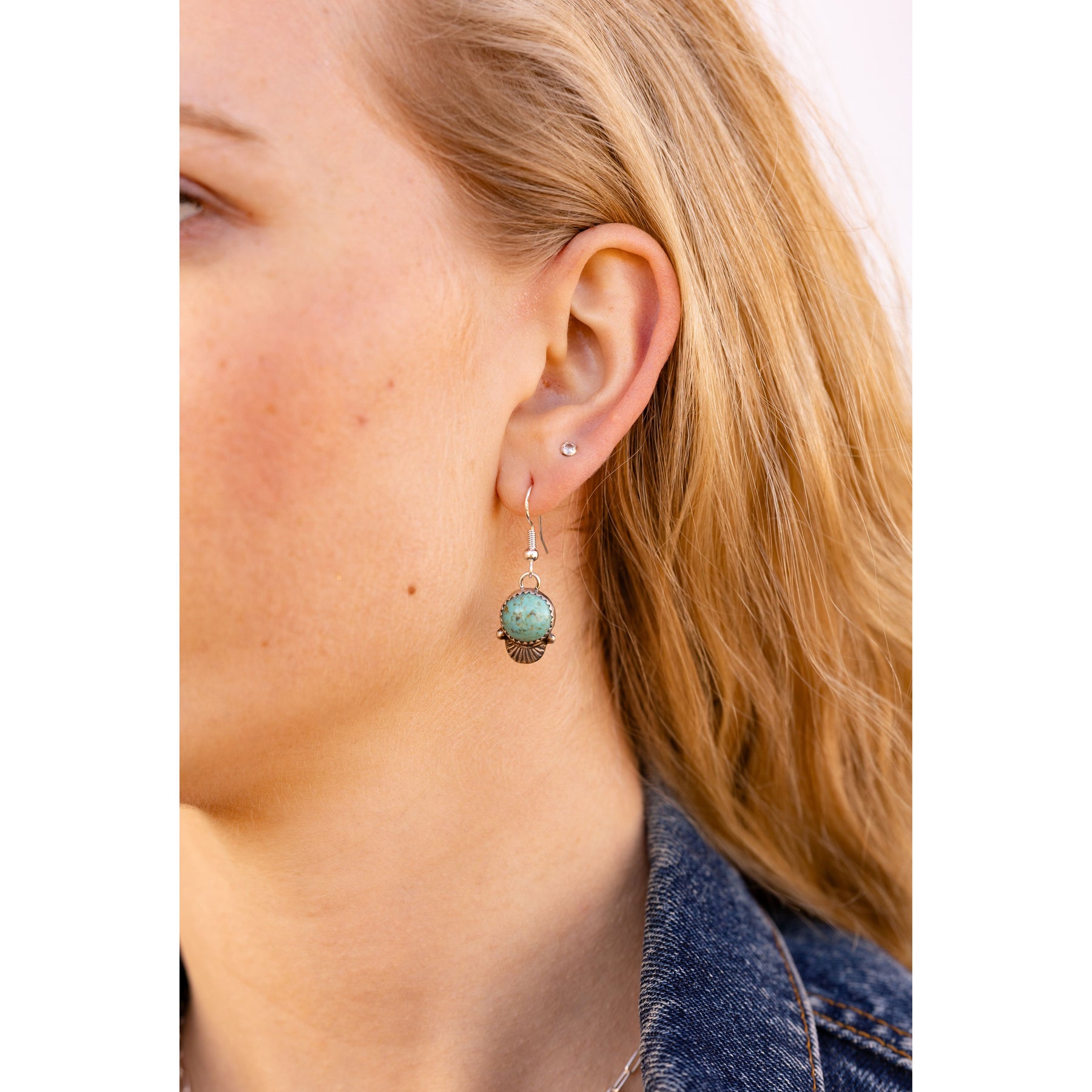 Handcrafted by Navajo artist Mary Tso, these dangle earrings feature luminous turquoise stones set in delicate sawtooth sterling silver bezels. The graceful drop and soft movement give them a beautifully feminine feel, while the traditional Southwestern silverwork adds depth and character.