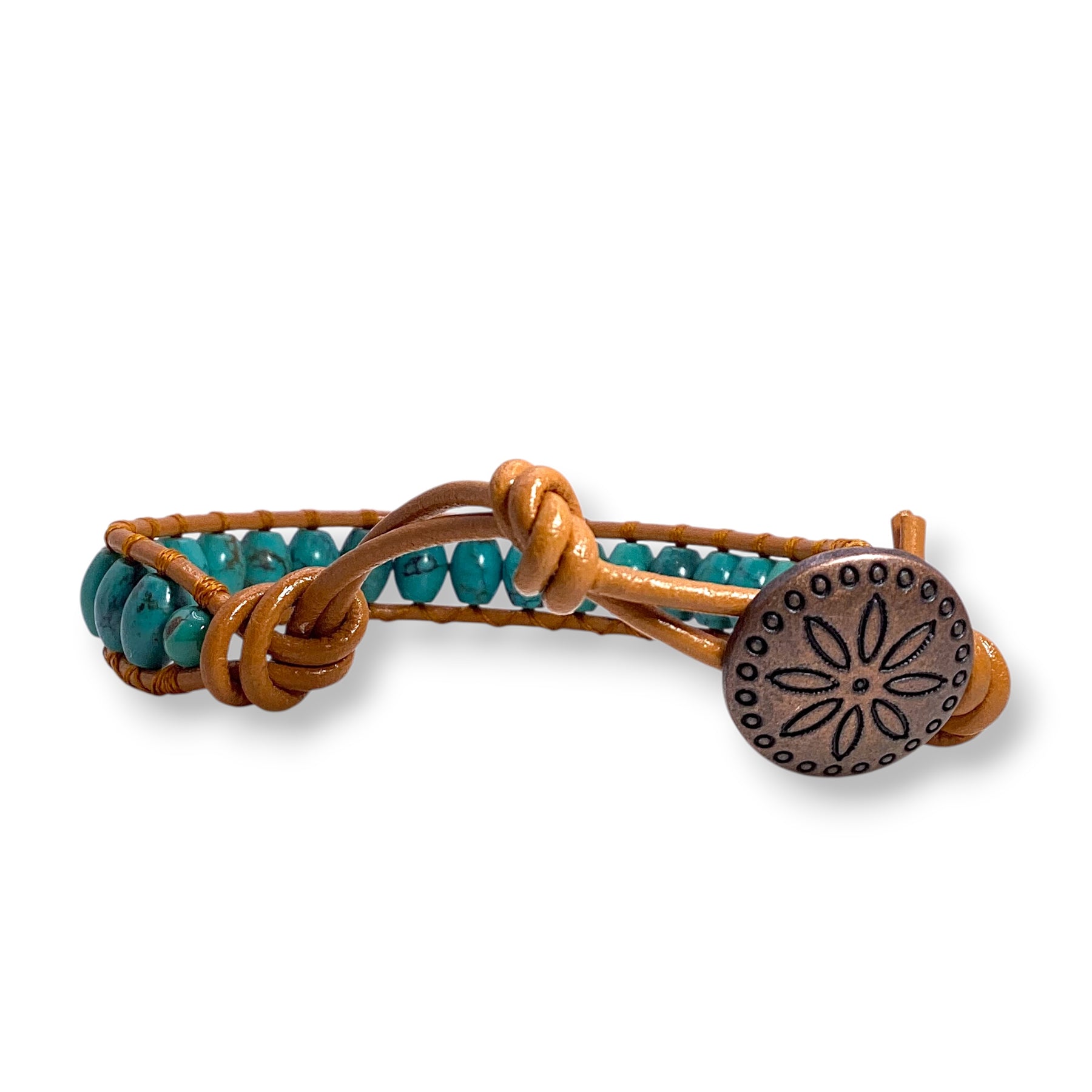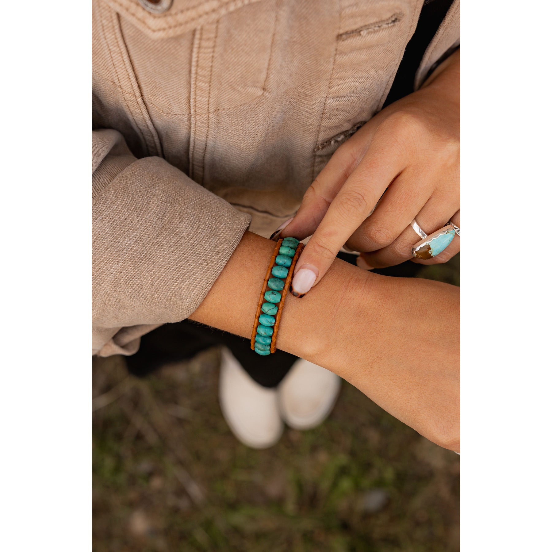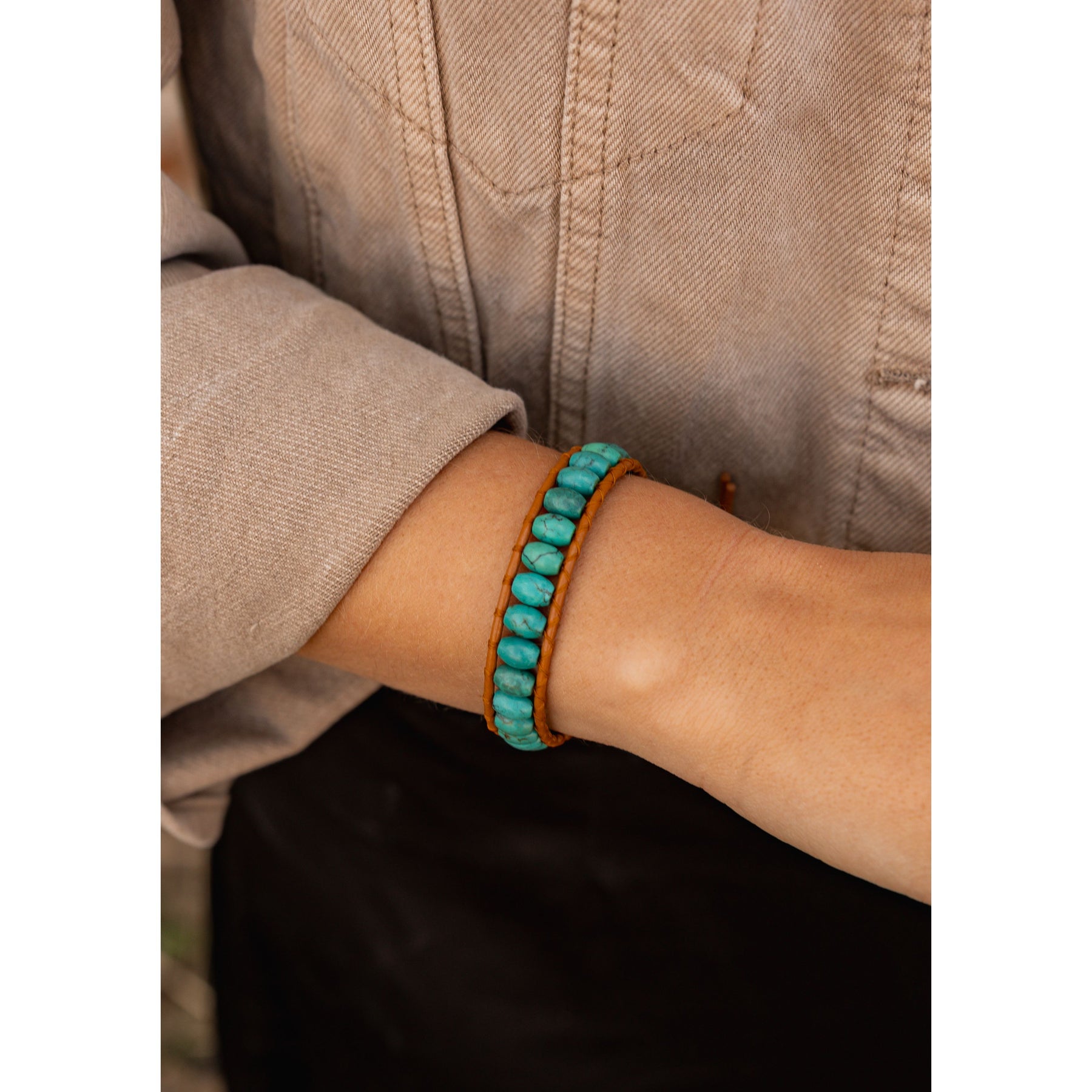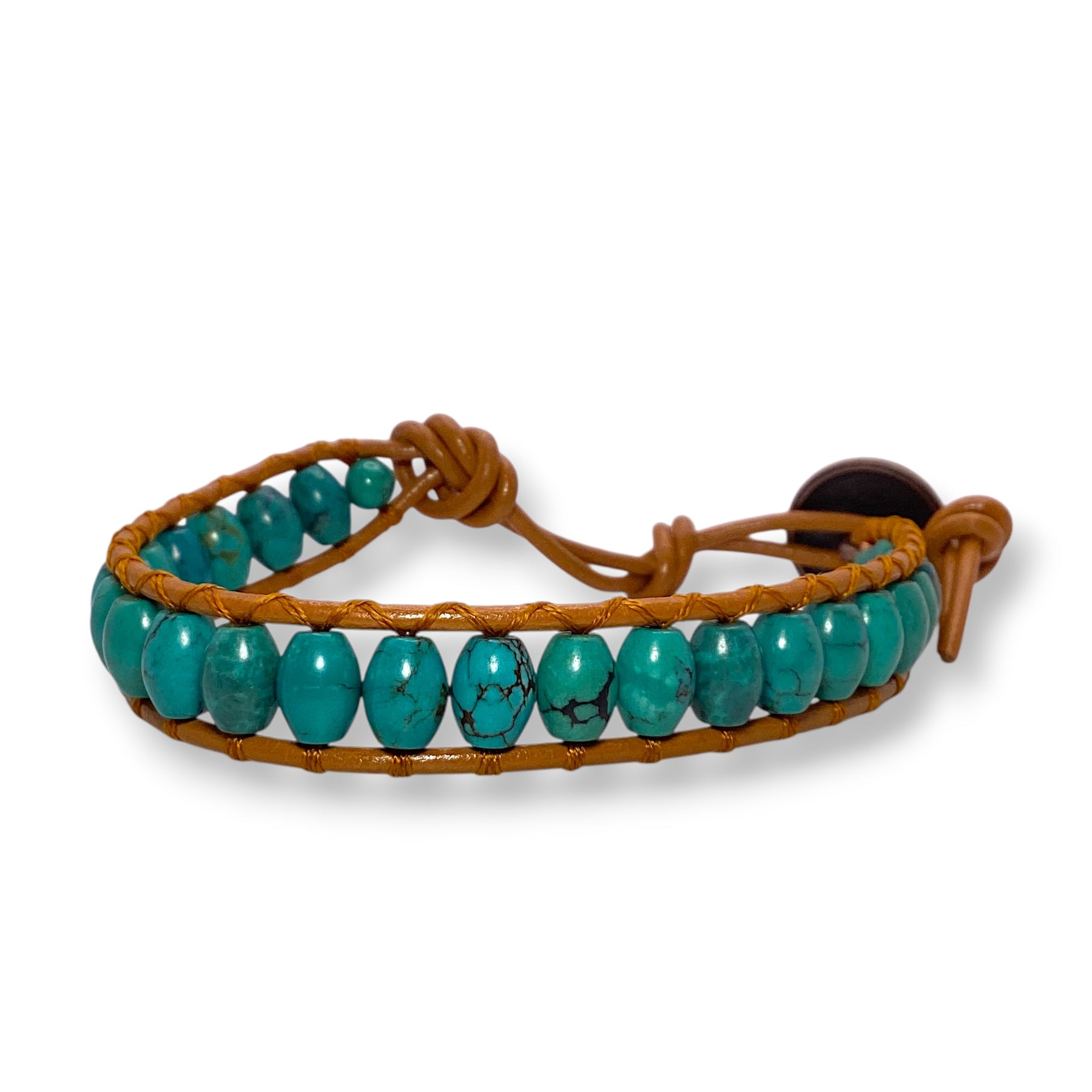 Michael Silberhorn Turquoise Beaded Leather Bracelet