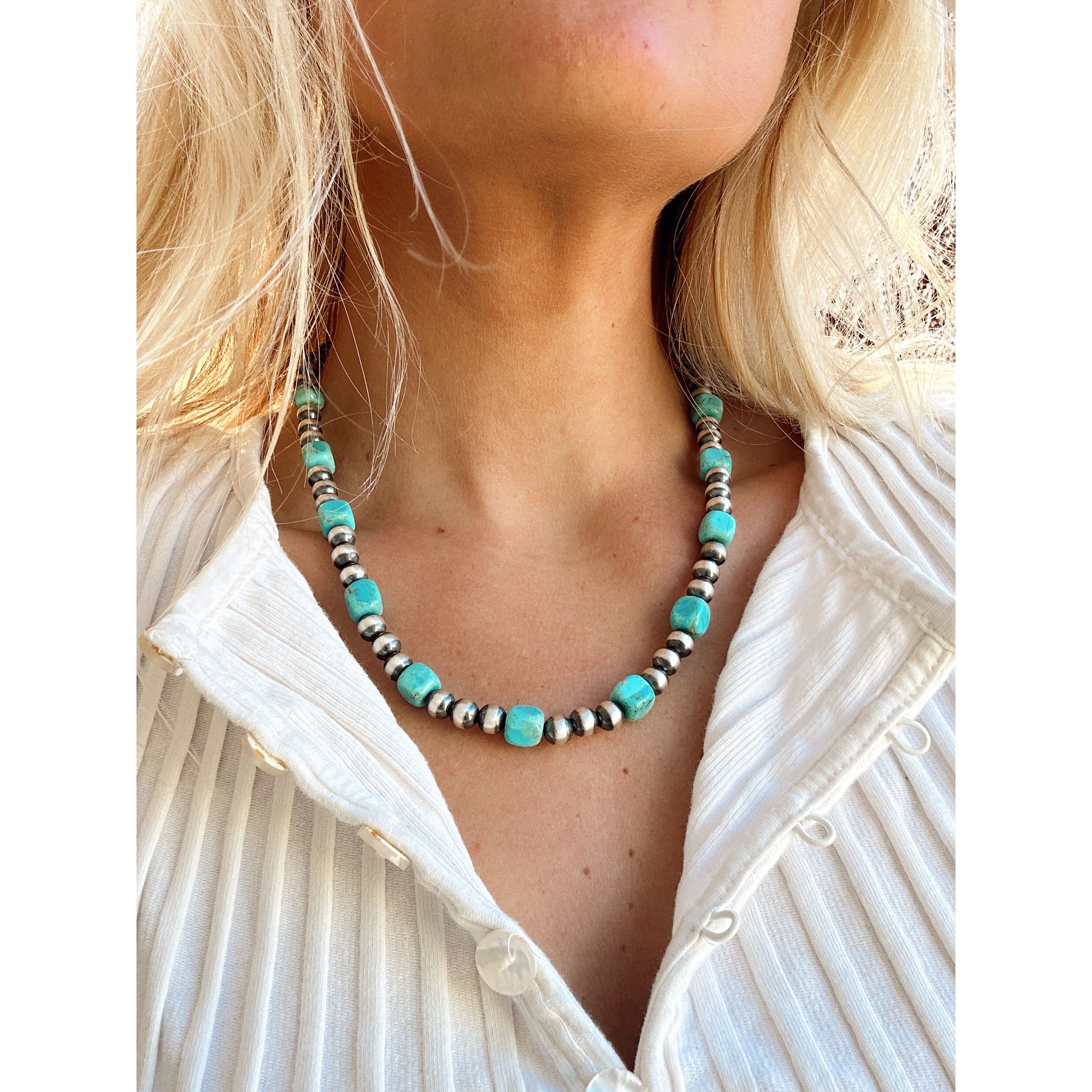 Lantern Dancer Old Taos Navajo Pearl And Kingman Turquoise Necklace