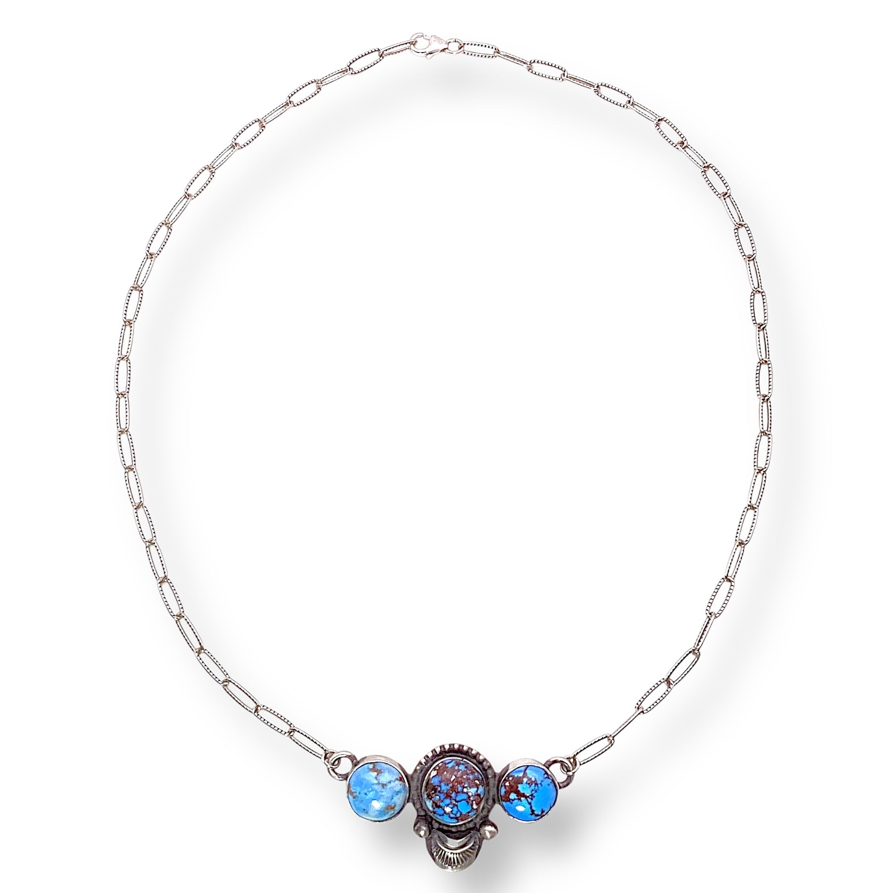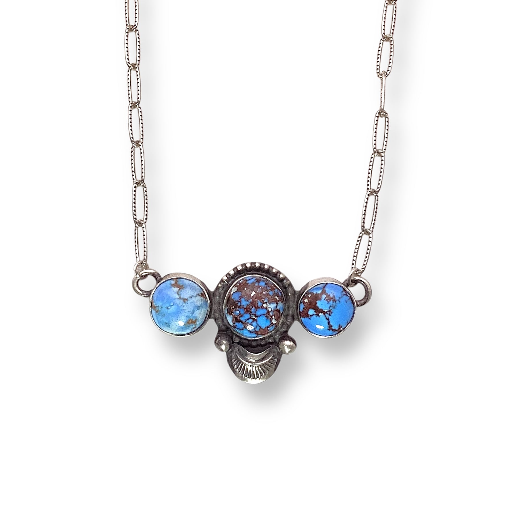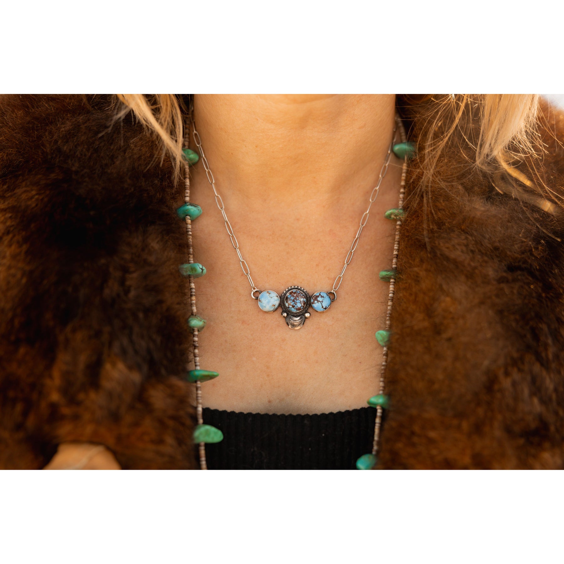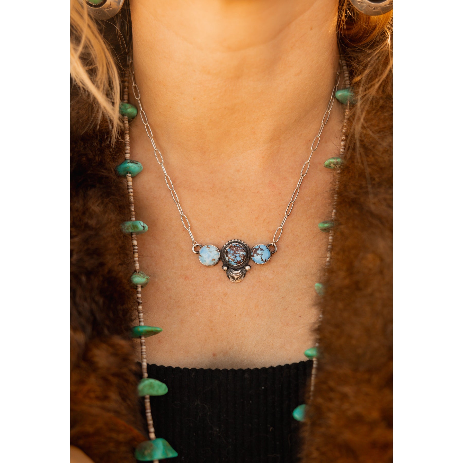 Leigha Cleveland 3 Stone Golden Hills Turquoise Sterling Silver Necklace Native Made