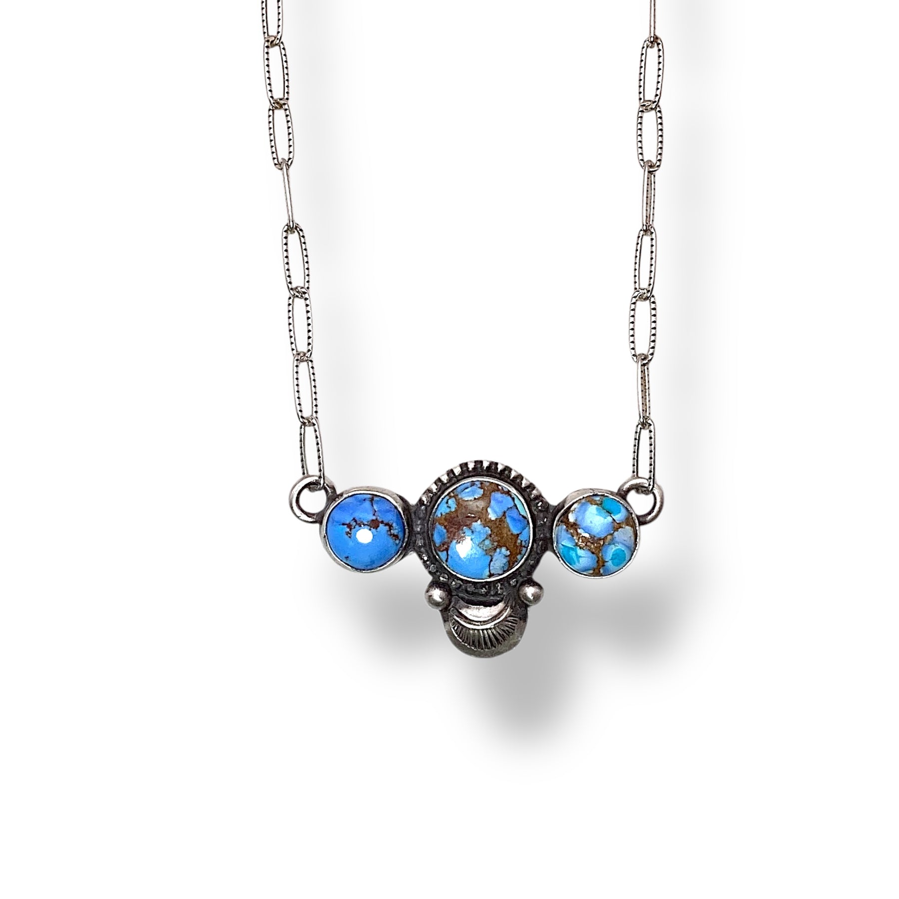 Leigha Cleveland 3 Stone Golden Hills Turquoise Sterling Silver Necklace Native Made