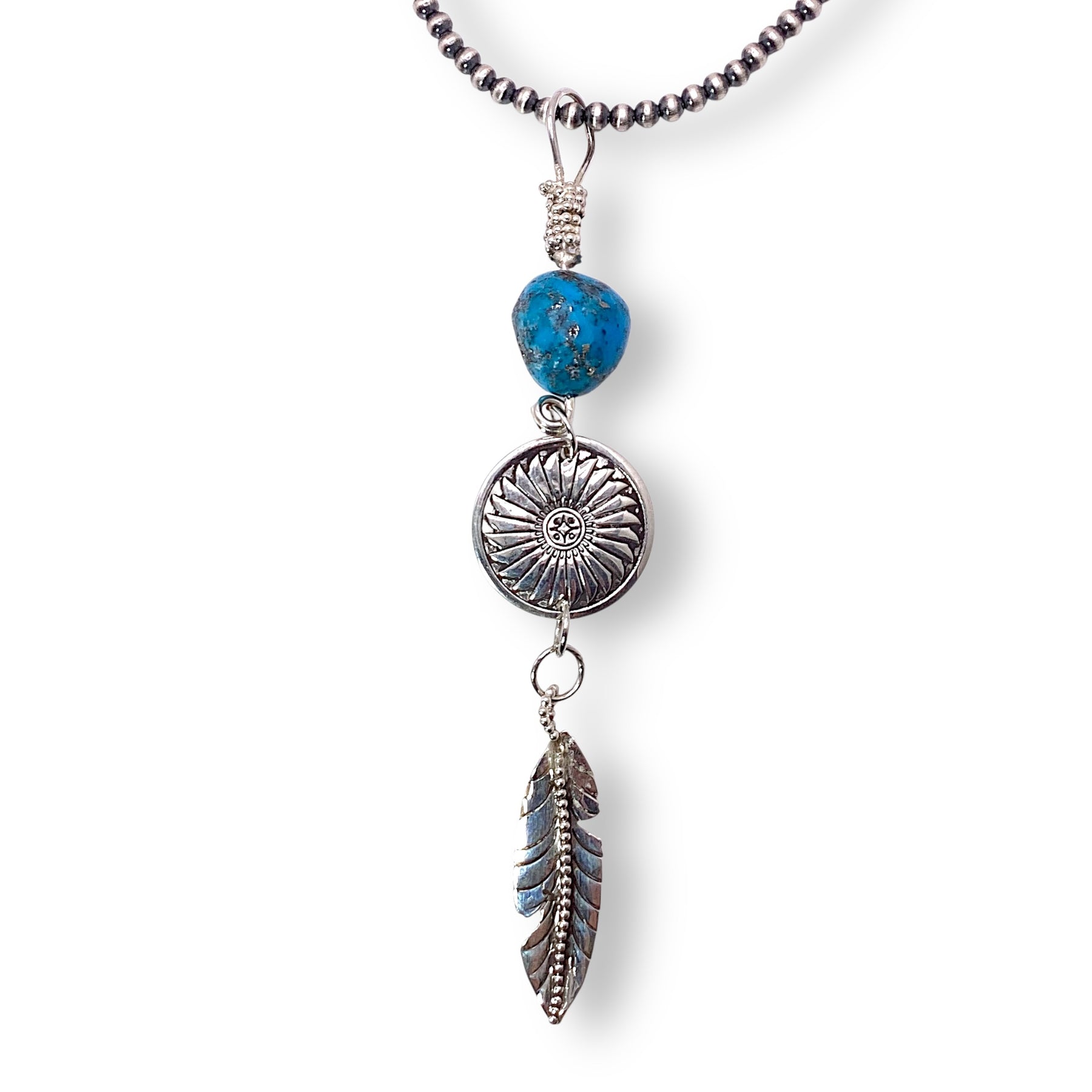 Fabulous Randy Christensen feather piece. We love the handmade bail and high grade Persian Turquoise stone.