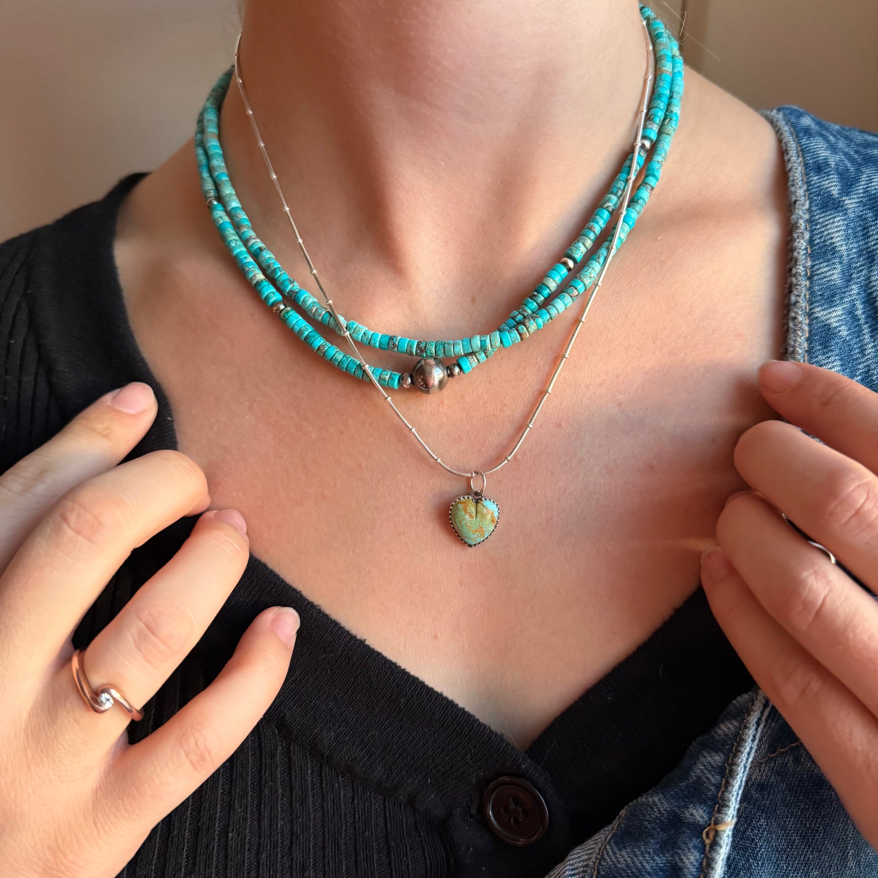 It’s a piece that never goes out of style—perfect for layering with other silver jewelry or wearing solo to let the heart-shaped turquoise shine. Classic, elegant, and full of Southwestern charm, it adds a subtle yet striking touch to any outfit.