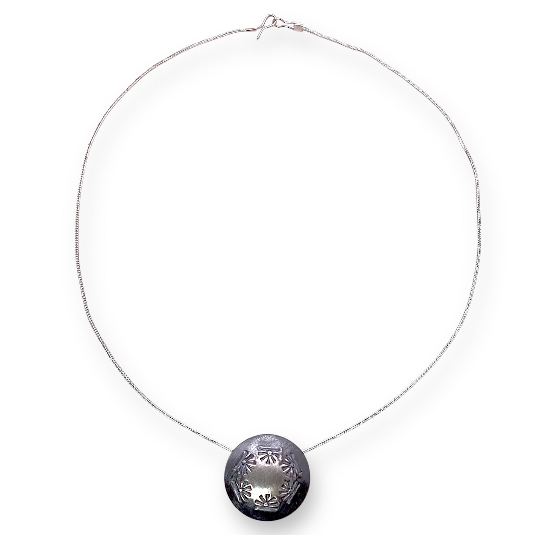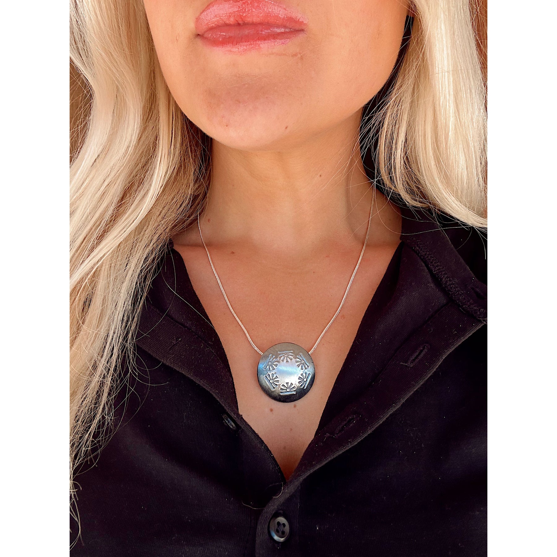 Sunrise Stamped Pillow Top Pearl Sterling Silver Pendant Necklace Maryetta Daukei