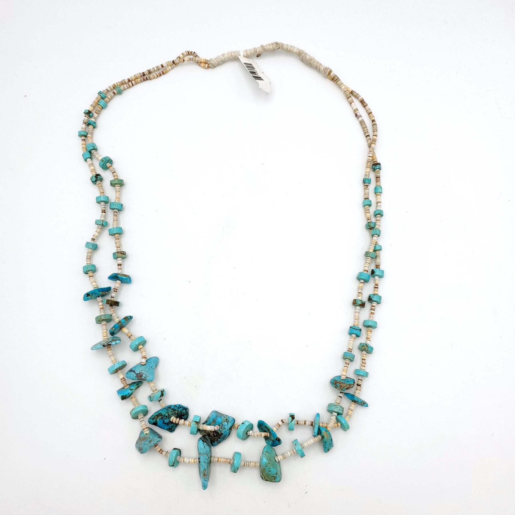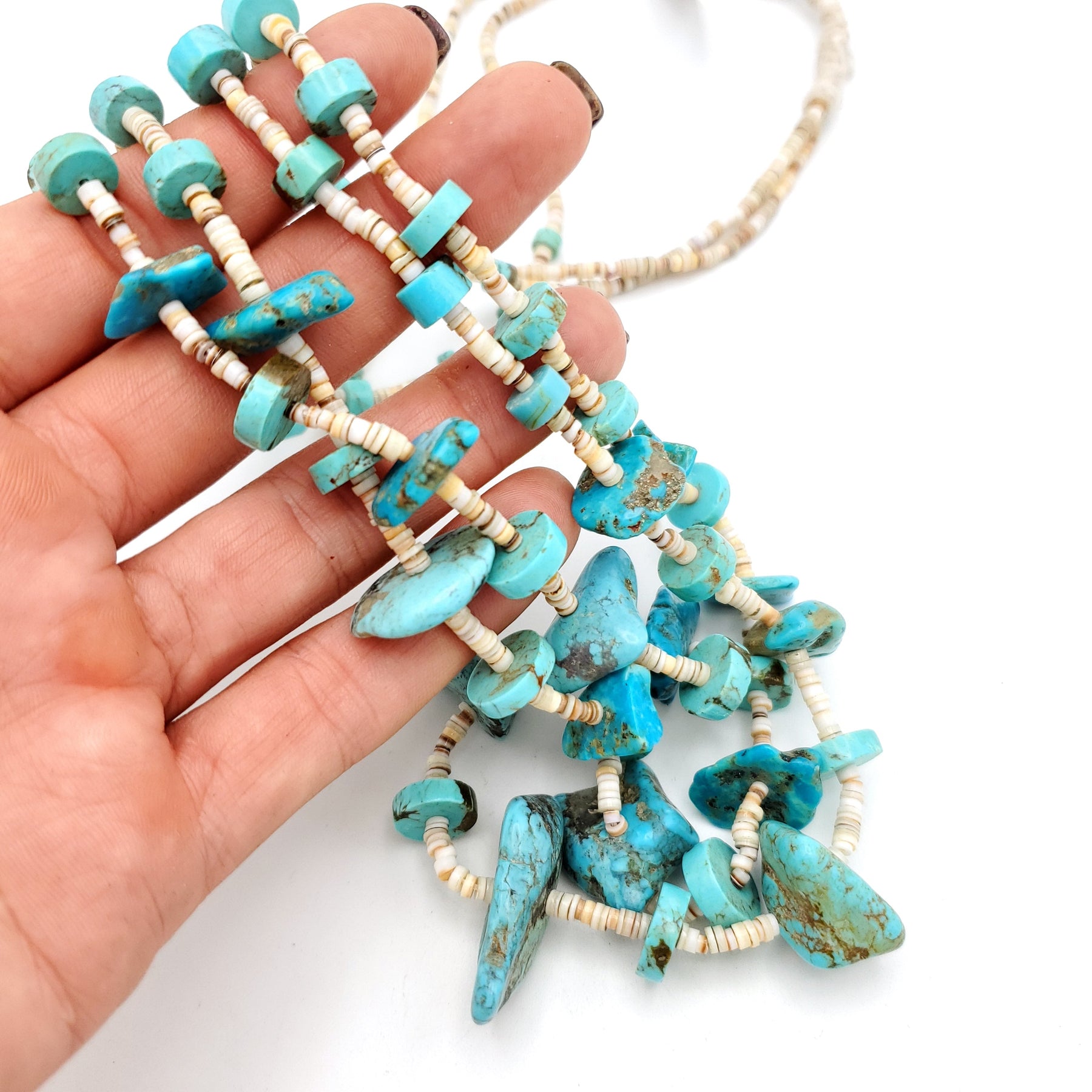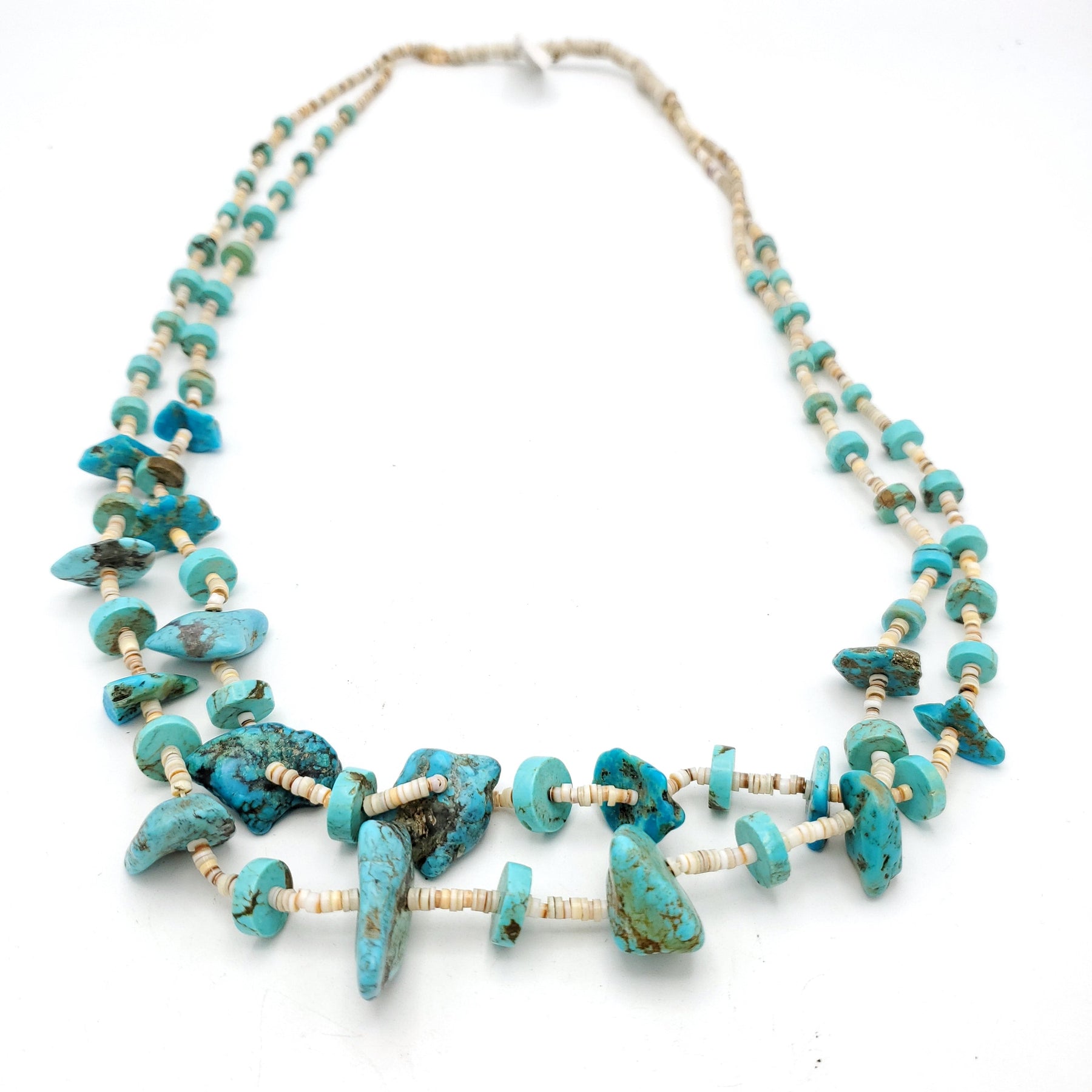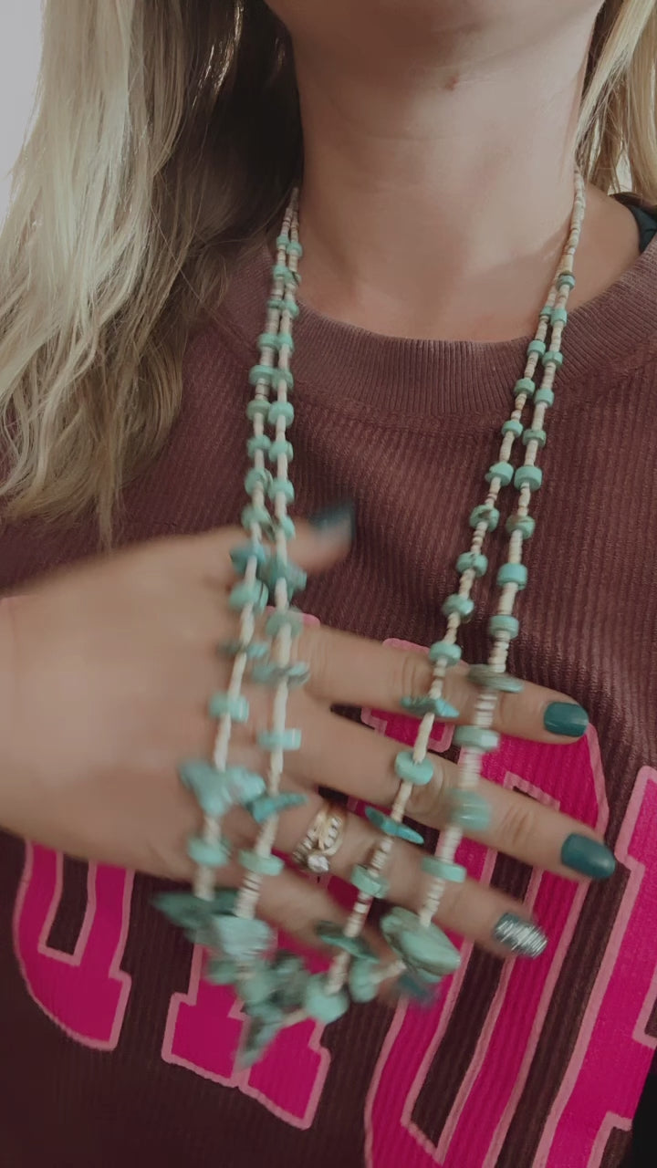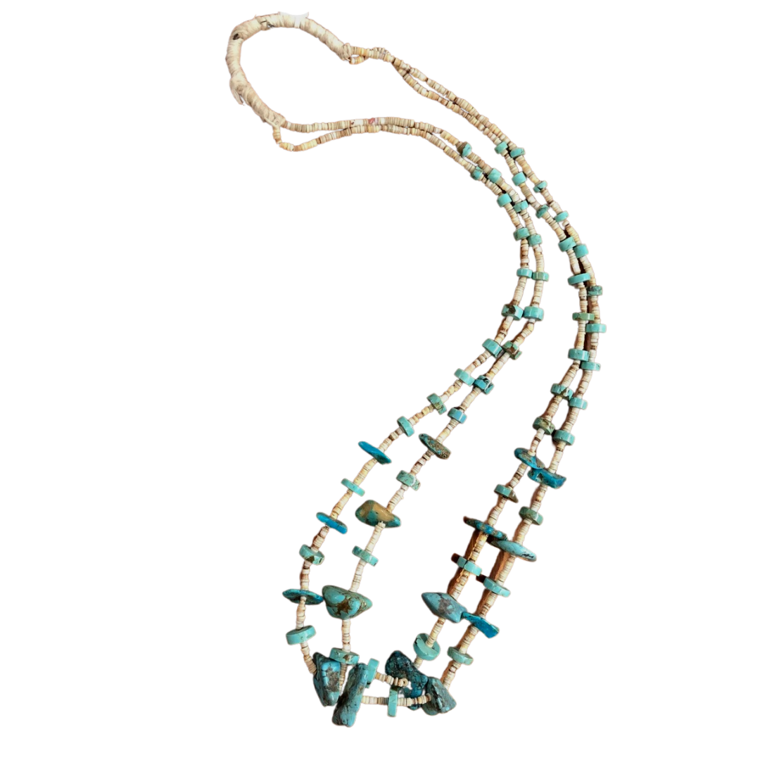 Beautiful Vintage Heishi Two Strand Turquoise Nugget and Shell, Squaw Wrap Necklace