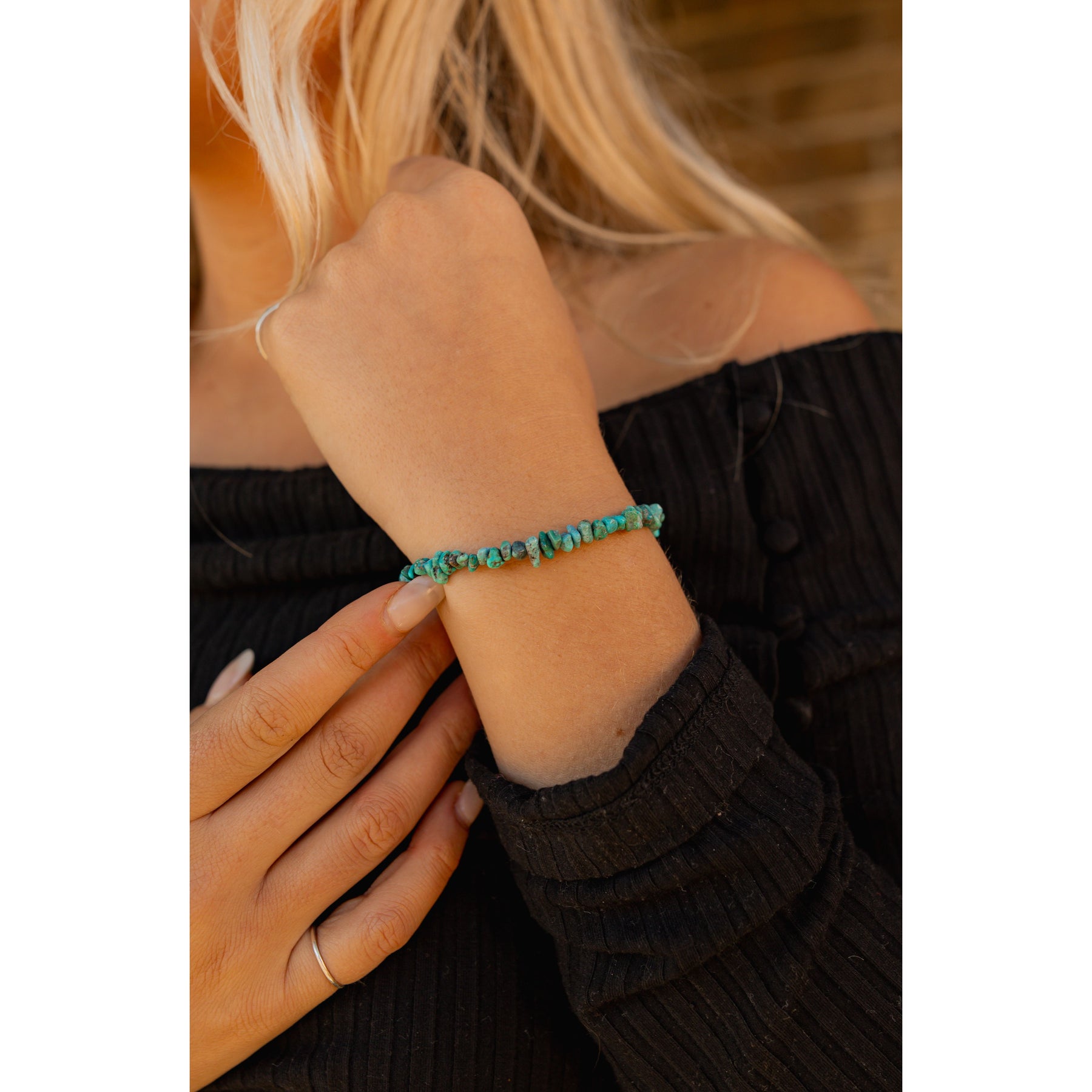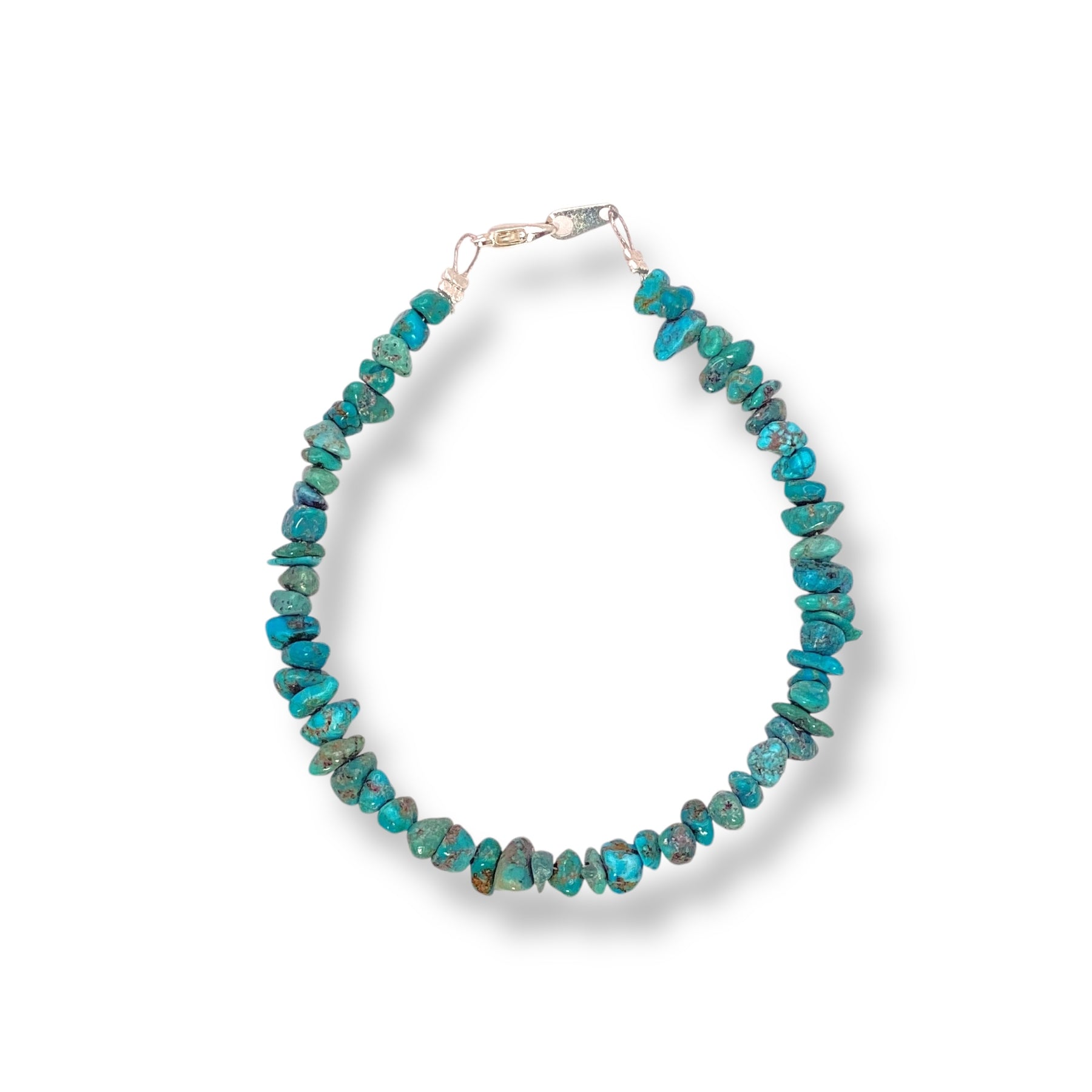 This sweet Blue Turquoise Beaded Bracelet by Santo Domingo artist Fannie Garcia features soft, smooth beads strung together for an effortlessly charming look.