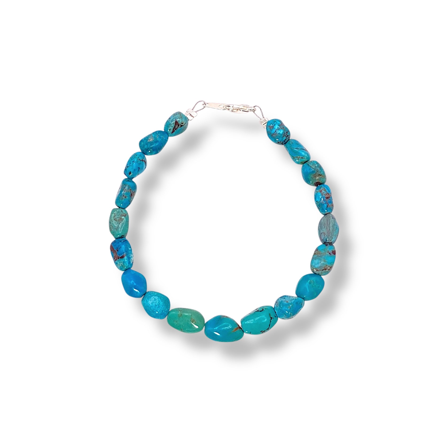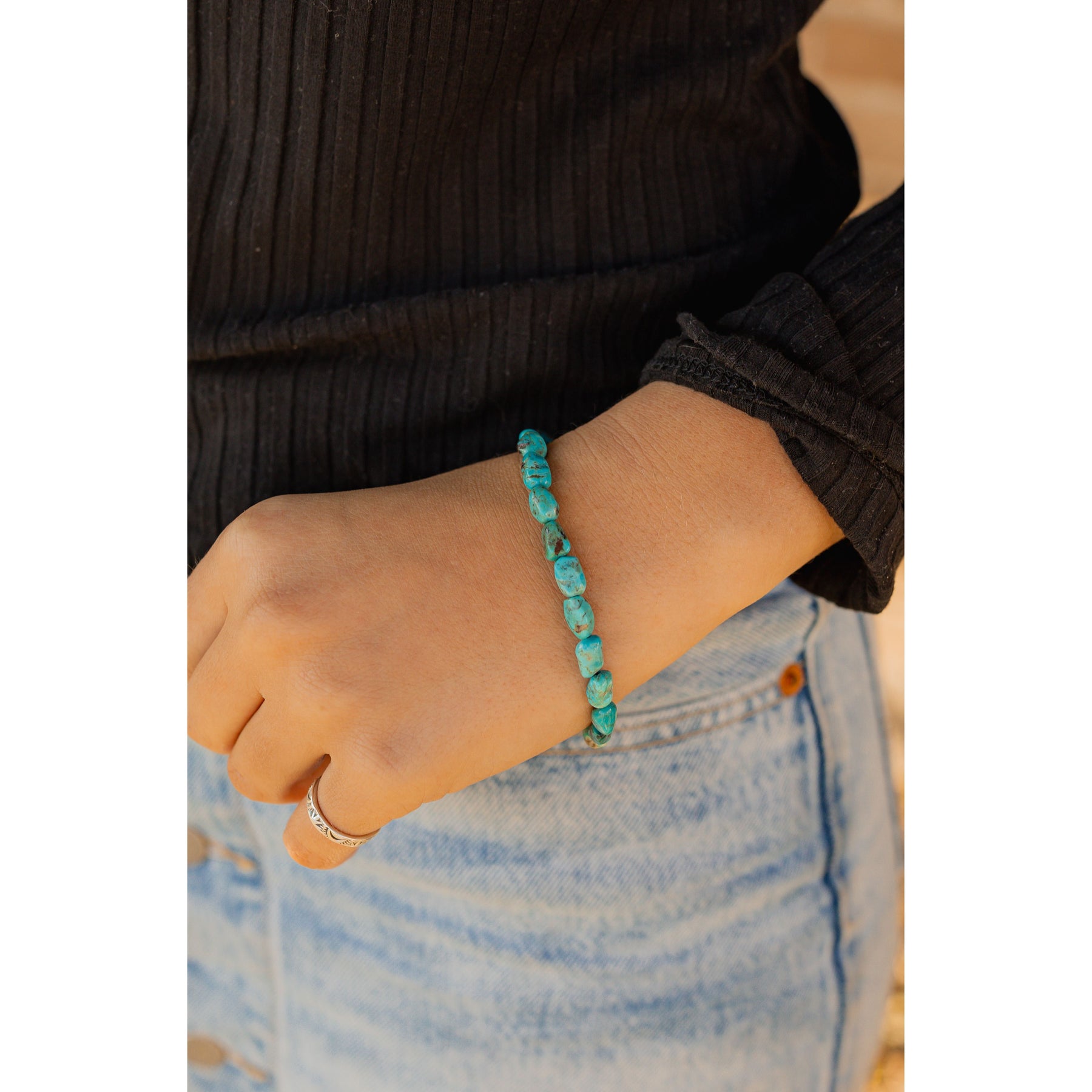 This Blue Turquoise Beaded Bracelet by Santo Domingo artist Fannie Garcia is simply sweet and full of charm. Each turquoise bead brings a soft pop of sky-blue color, strung together with care and an easy elegance that feels both timeless and heartfelt.