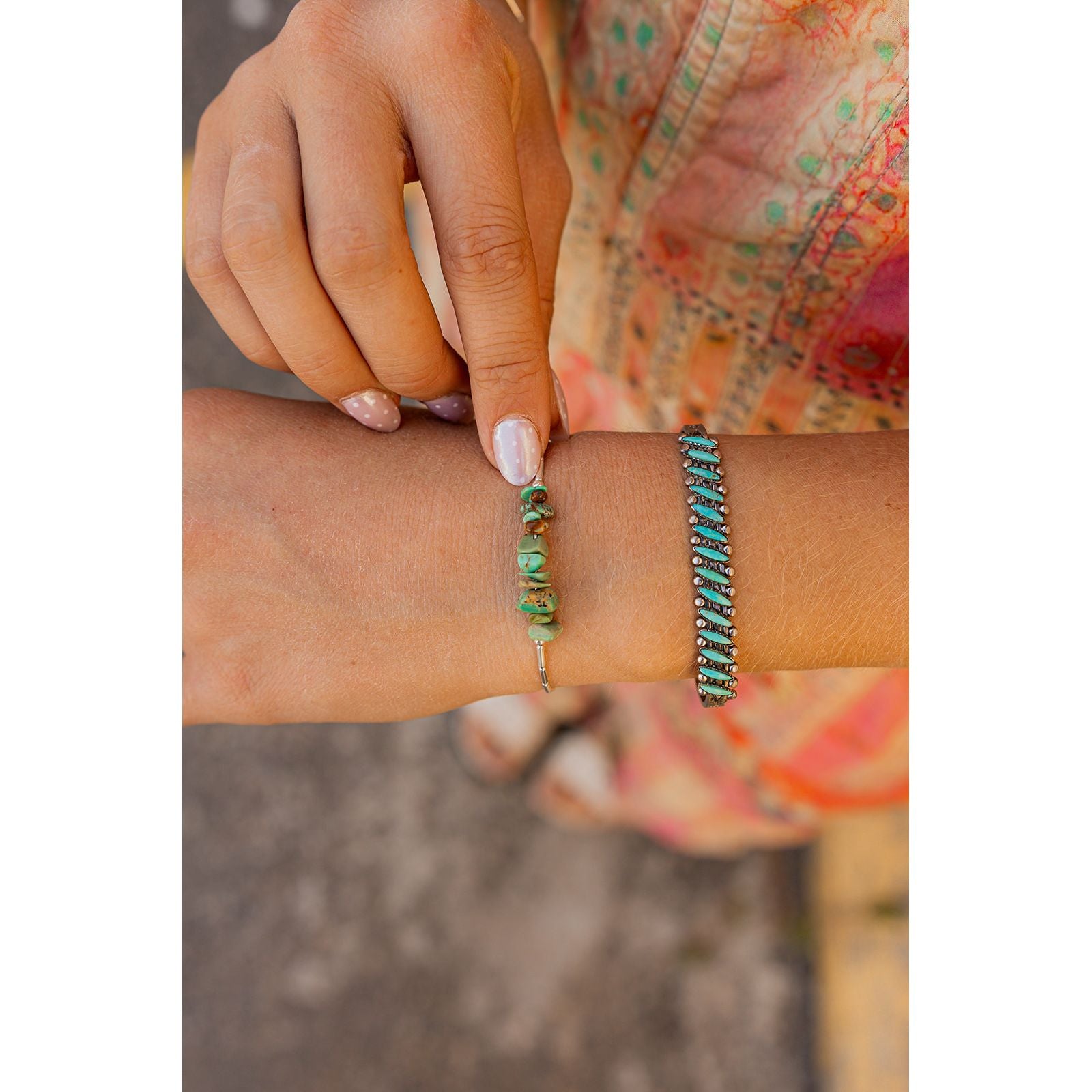 Why We ❤ It: The play of colors in the turquoise makes this bracelet feel alive—every shade tells its own story. It’s a piece you’ll reach for daily, whether you’re stacking it with other silver treasures or letting it shine solo with your favorite jeans and flowing top.