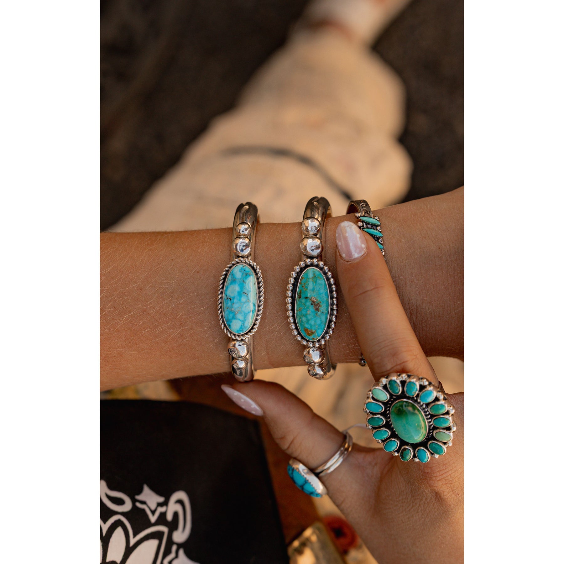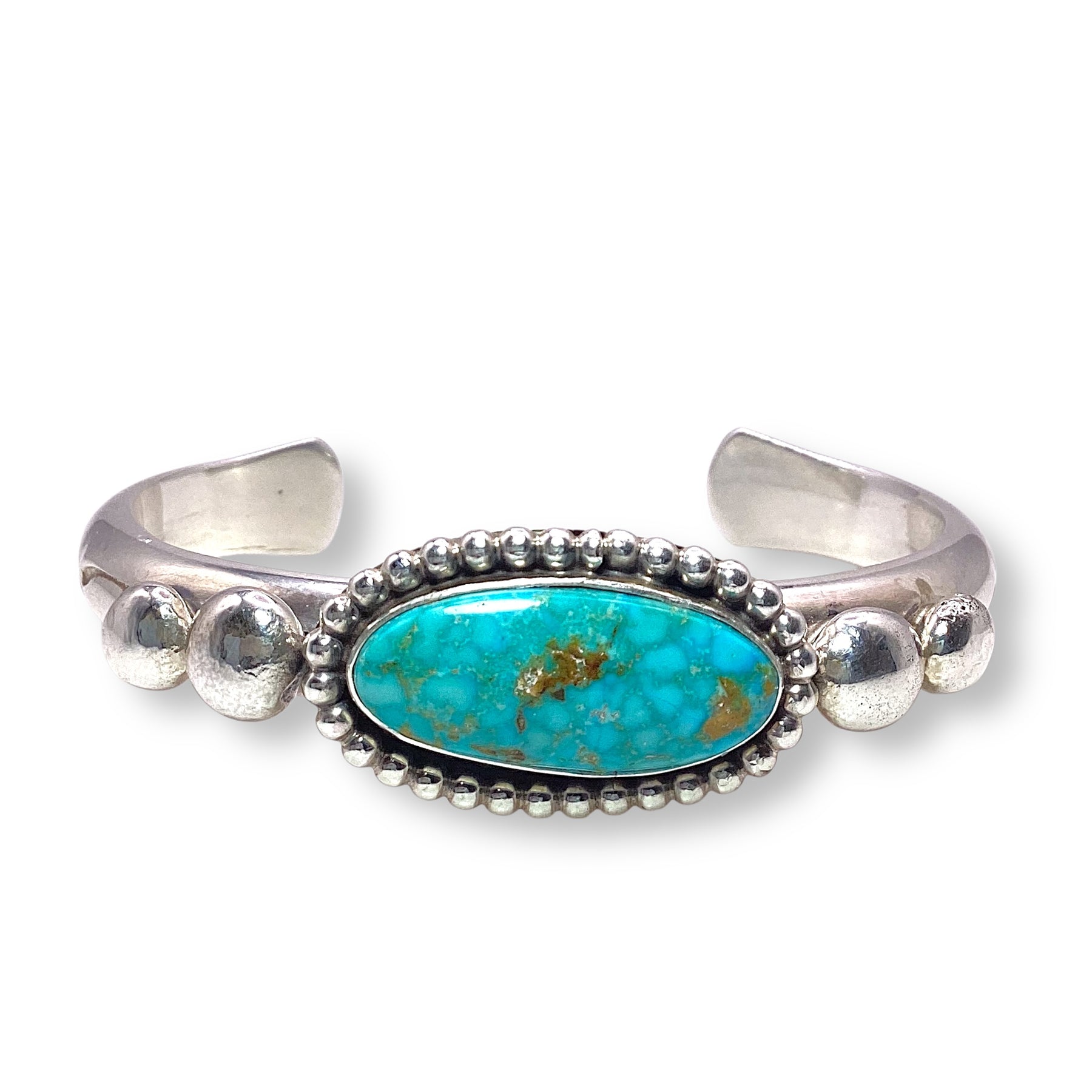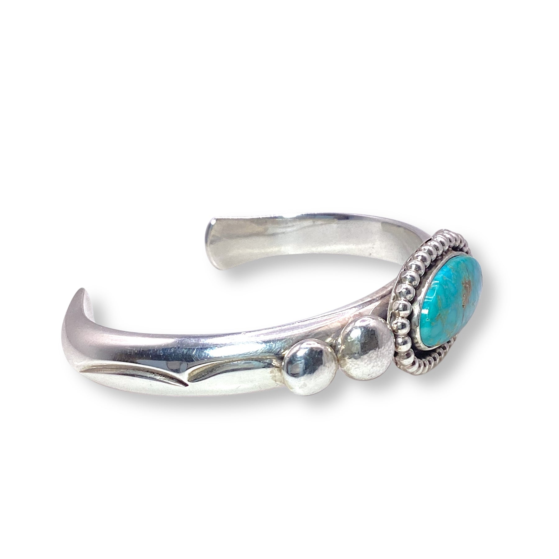 The pop of turquoise against the silver feels both timeless and modern—perfect for stacking with other cuffs, slipping on with everyday denim, or letting it shine solo with a flowy dress.