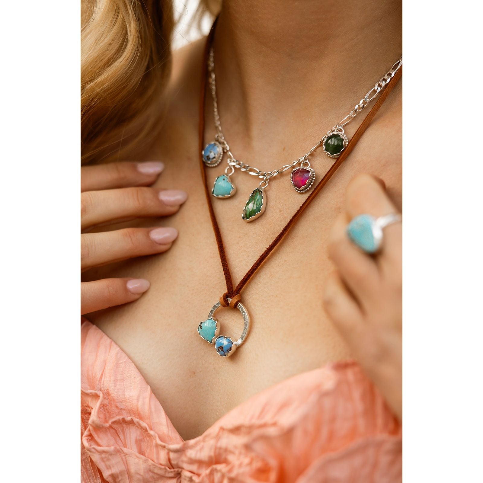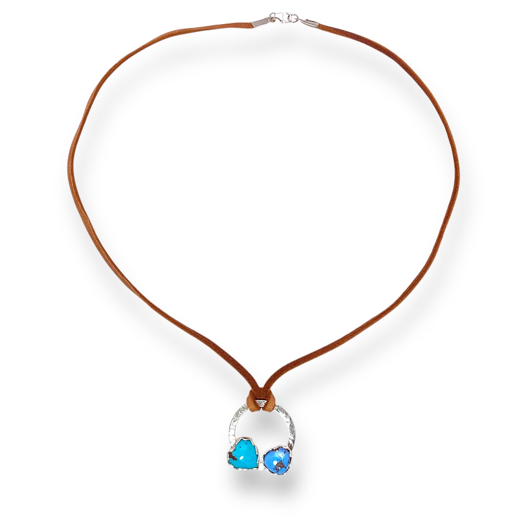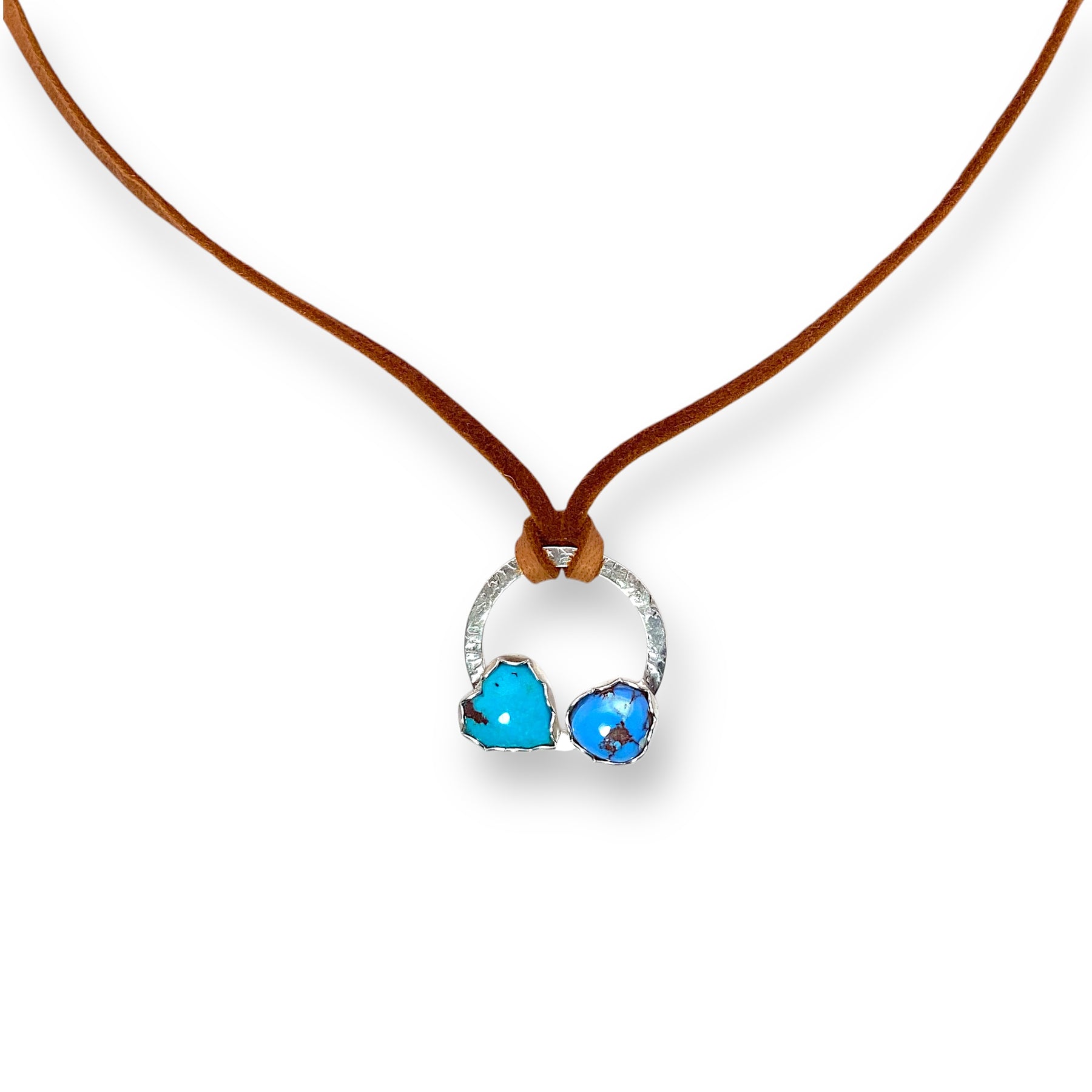 It’s the base of this piece. ✨ next, we take high grade at Golden Hills turquoise and a Kingman heart with delicate scallop to beel’s strung on authentic deer skin leather.