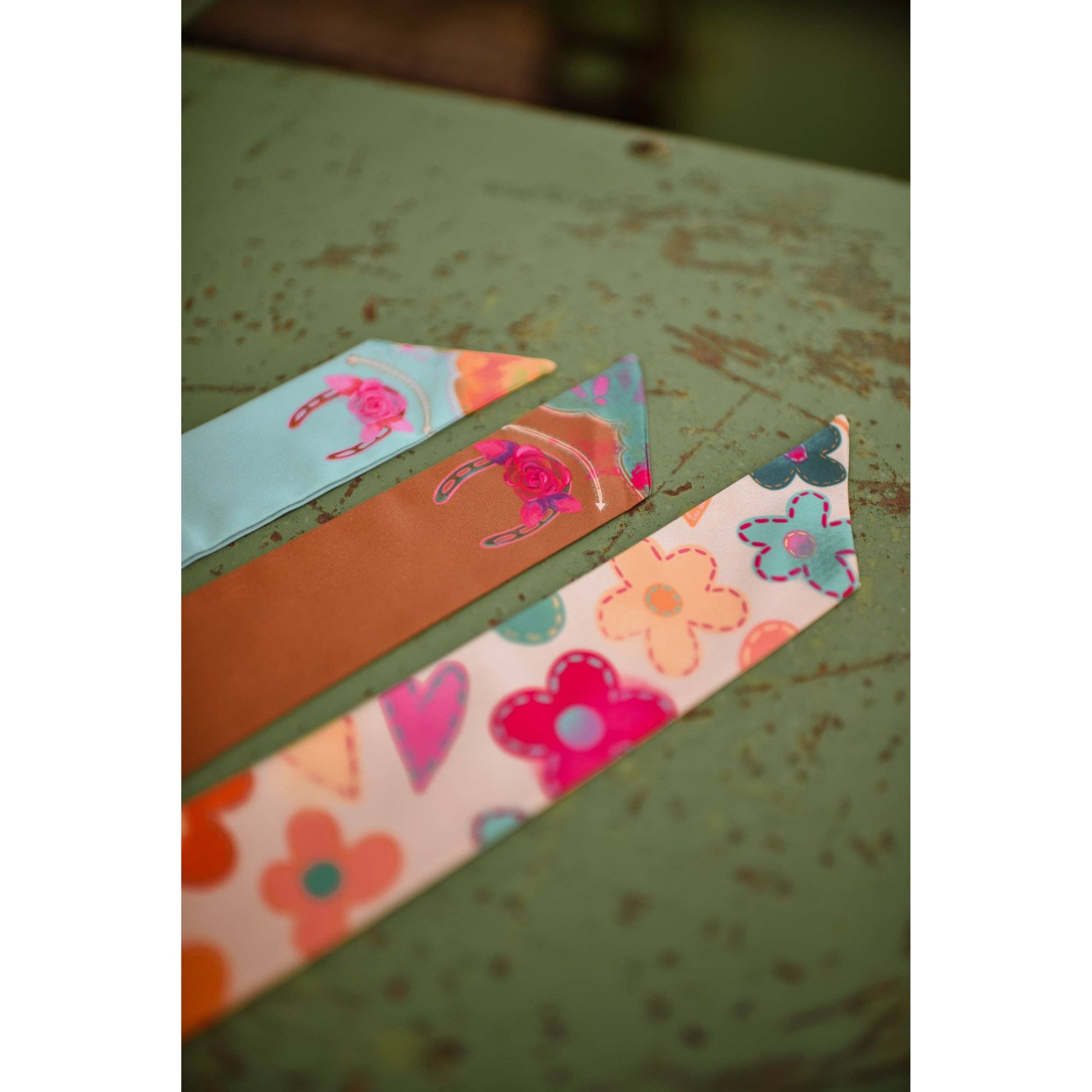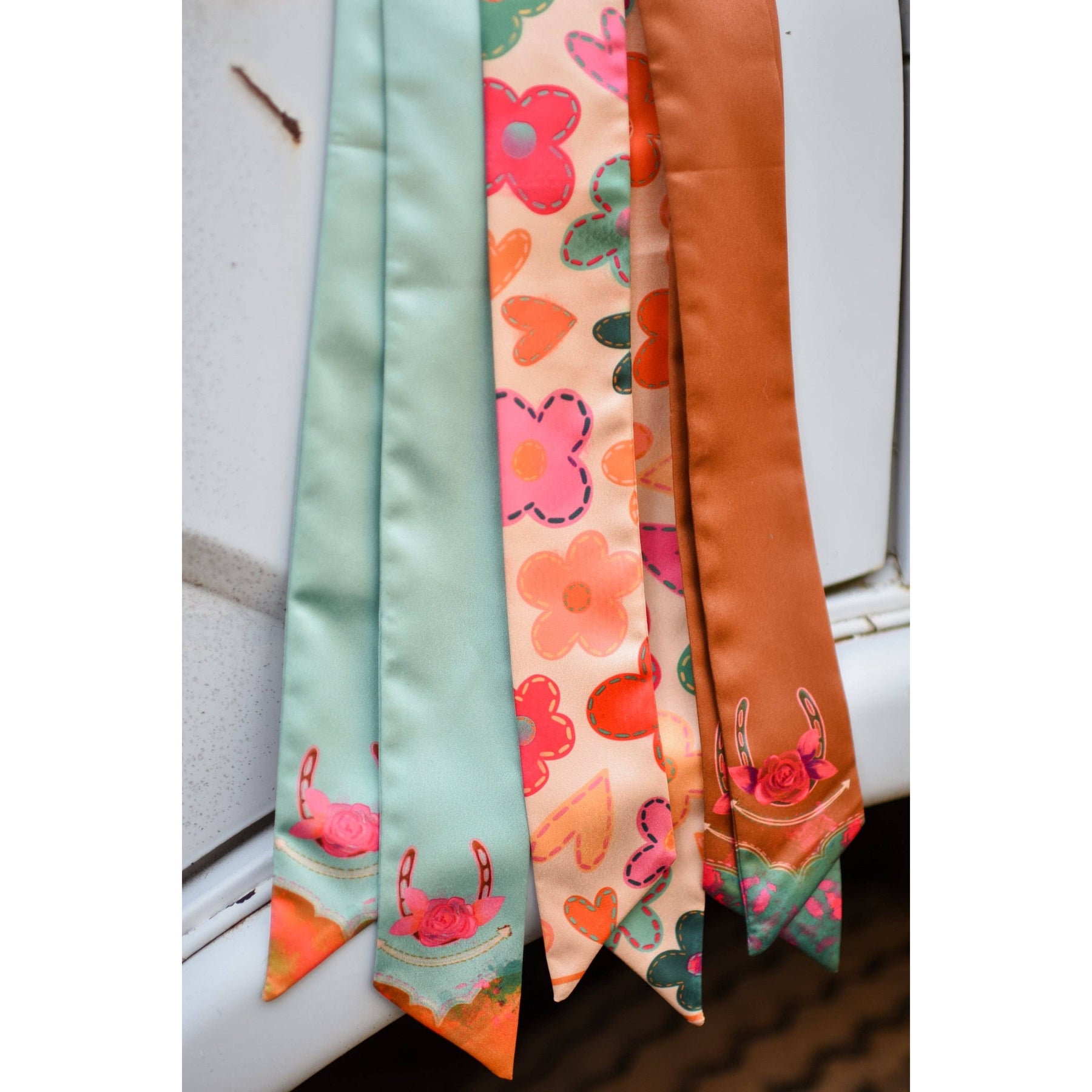 Spring Patchwork Florals Western Silk Twilly Scarf