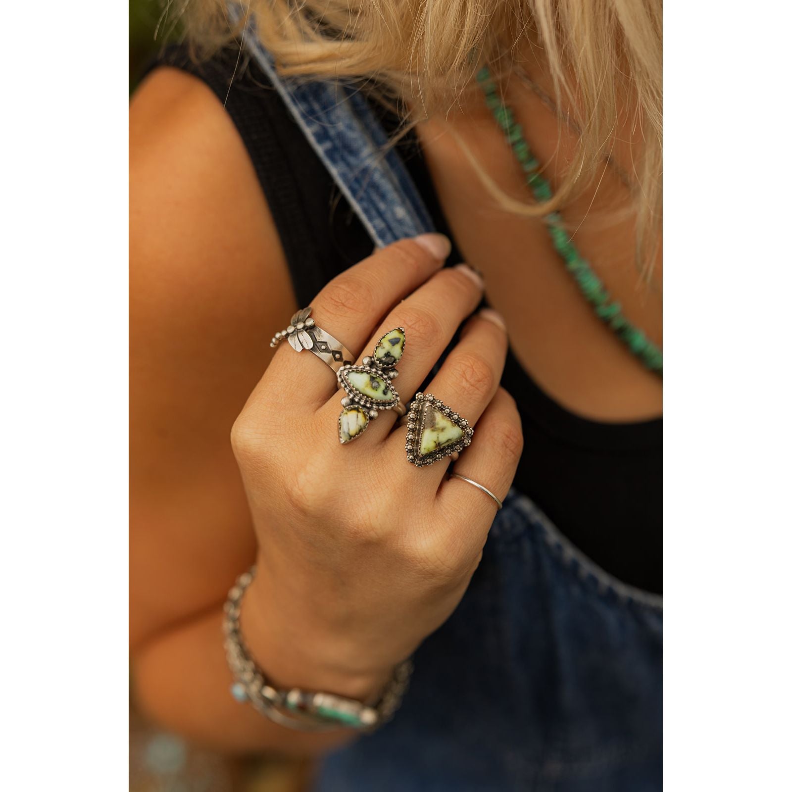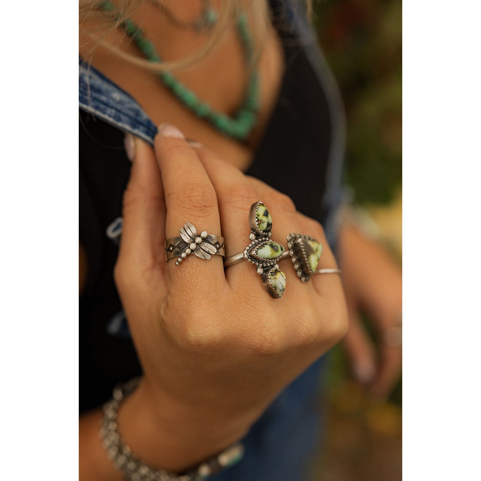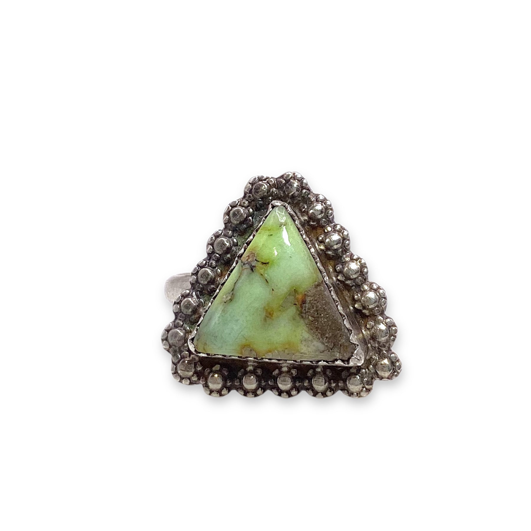 Mary Tso Triangle Palomino Turquoise Sterling Silver Ring Native Made