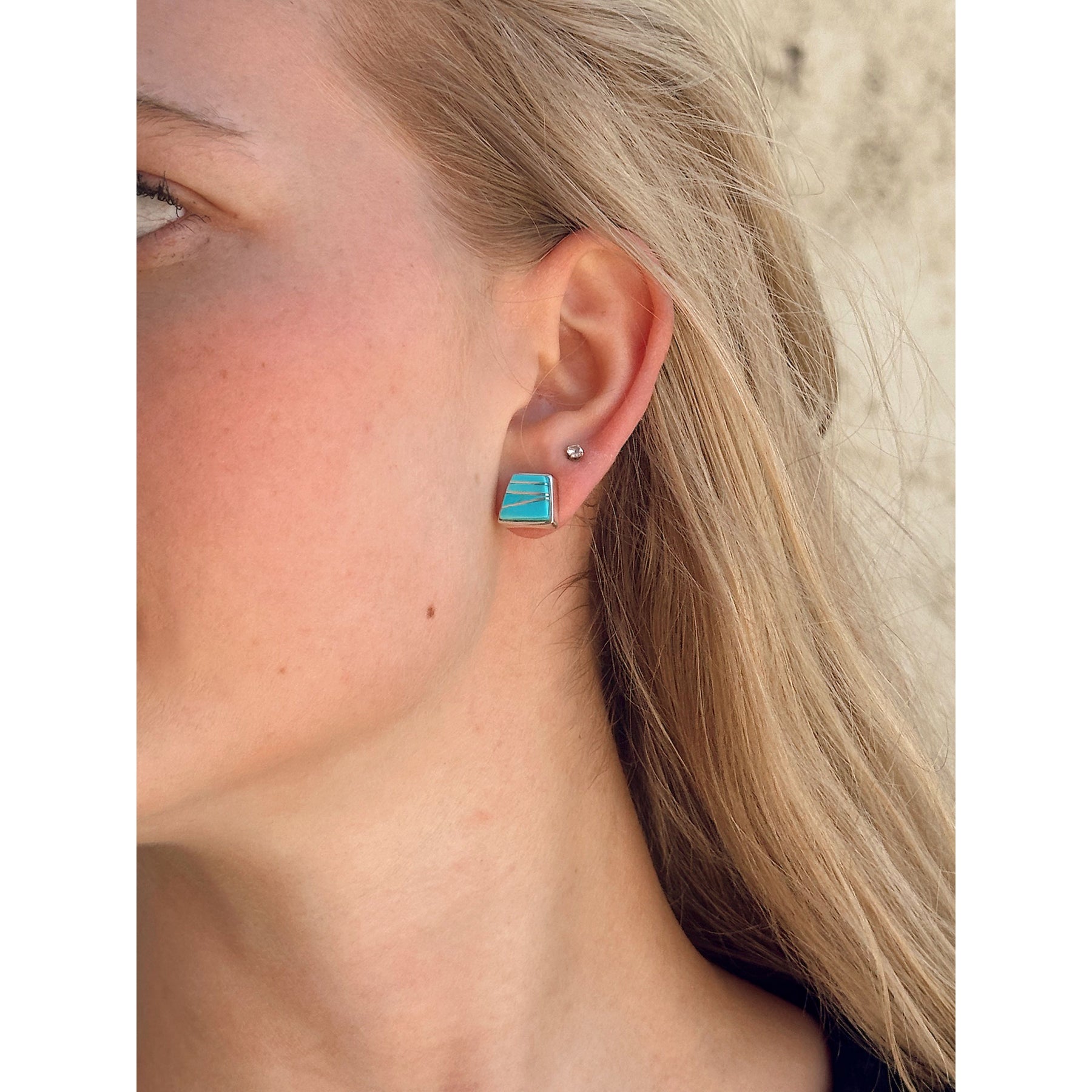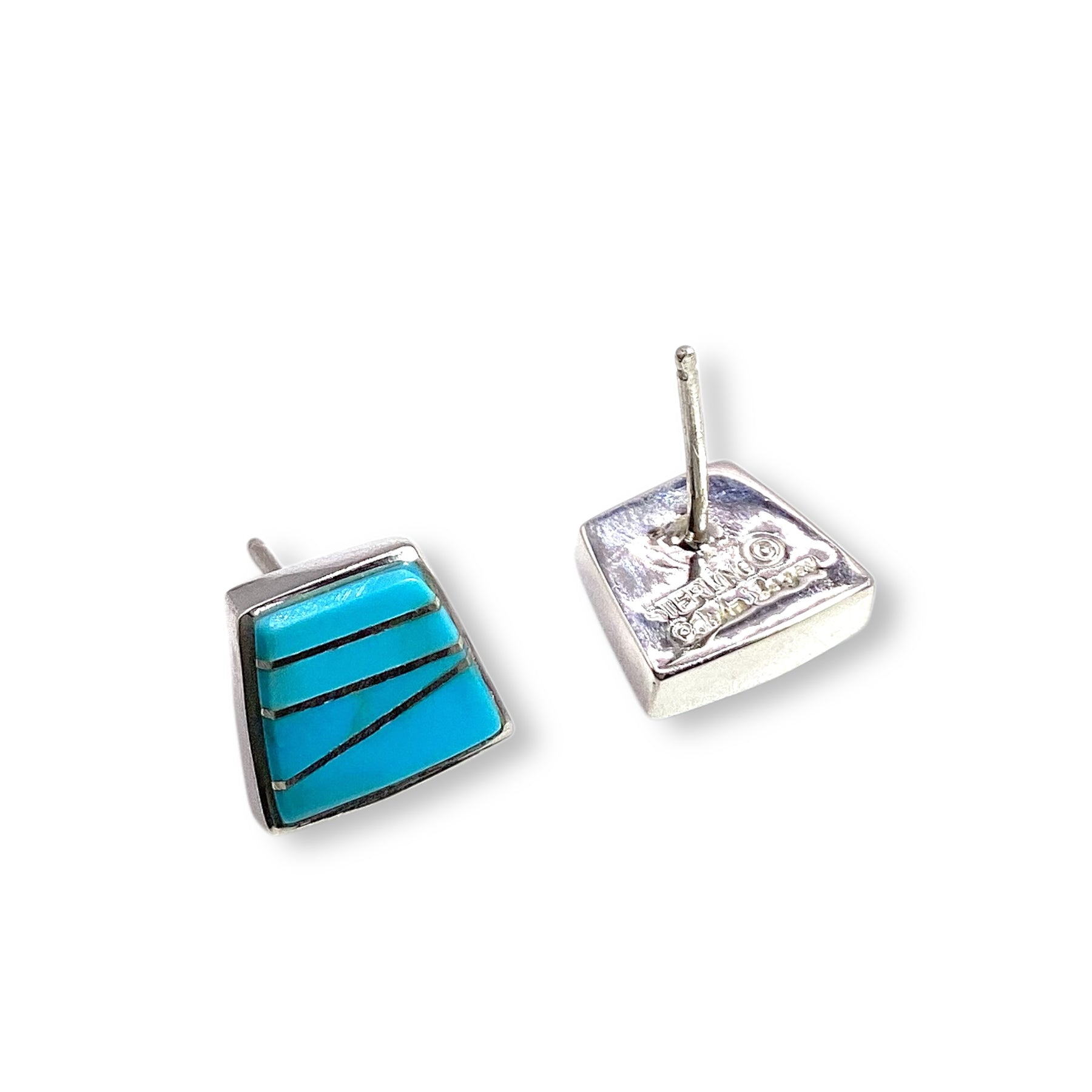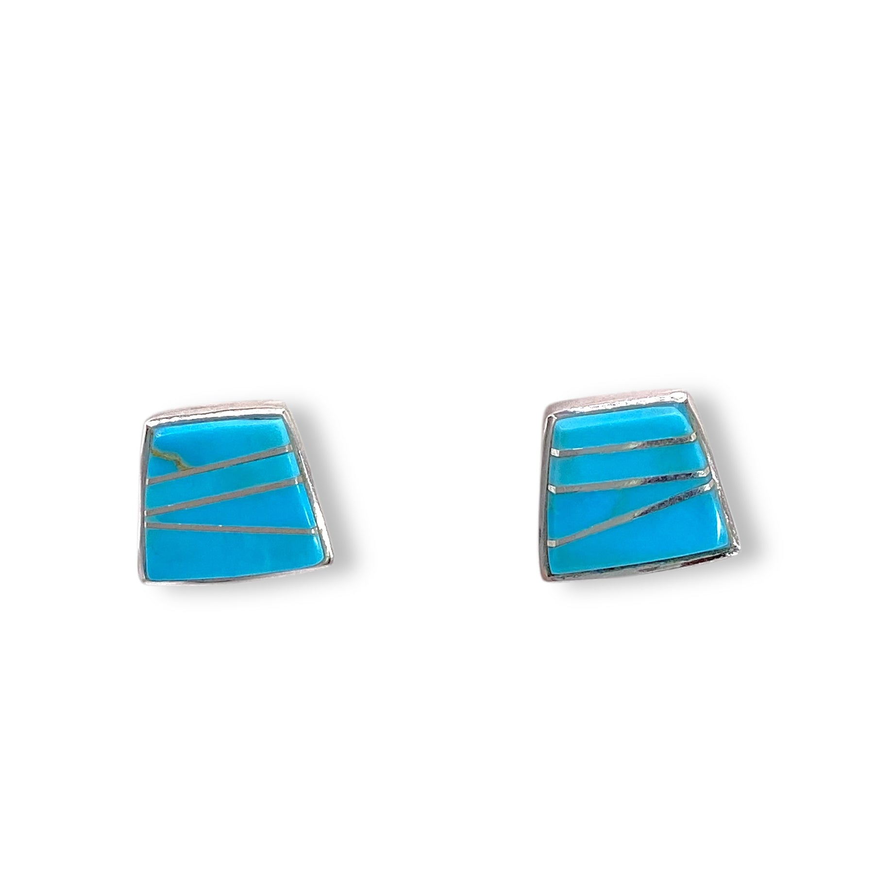 Calvin Begay Inlay Kingman Turquoise Trapezoid Earrings Sterling Silver Native Made