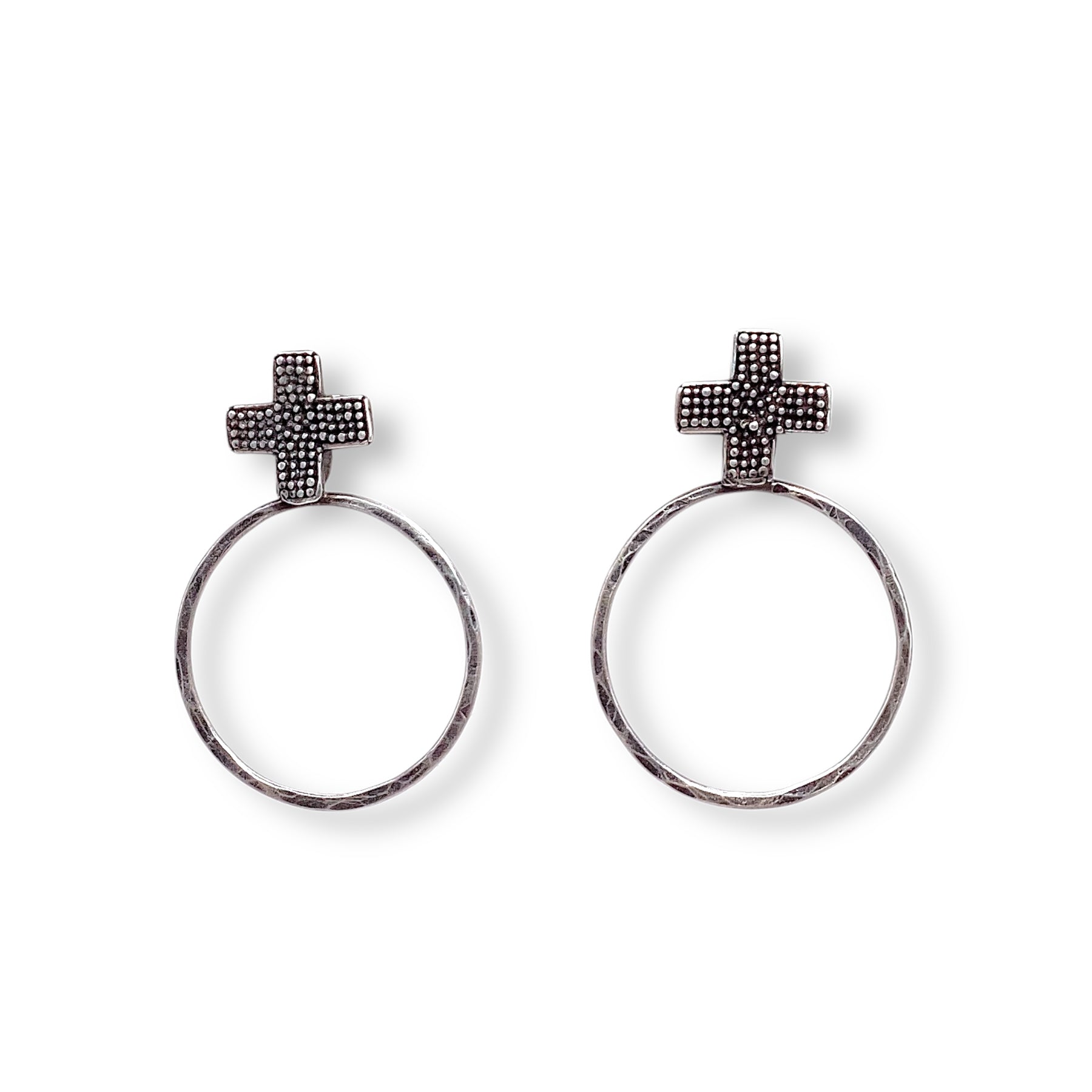 Ristra Ranch Sterling Silver Cross Hoop Earrings