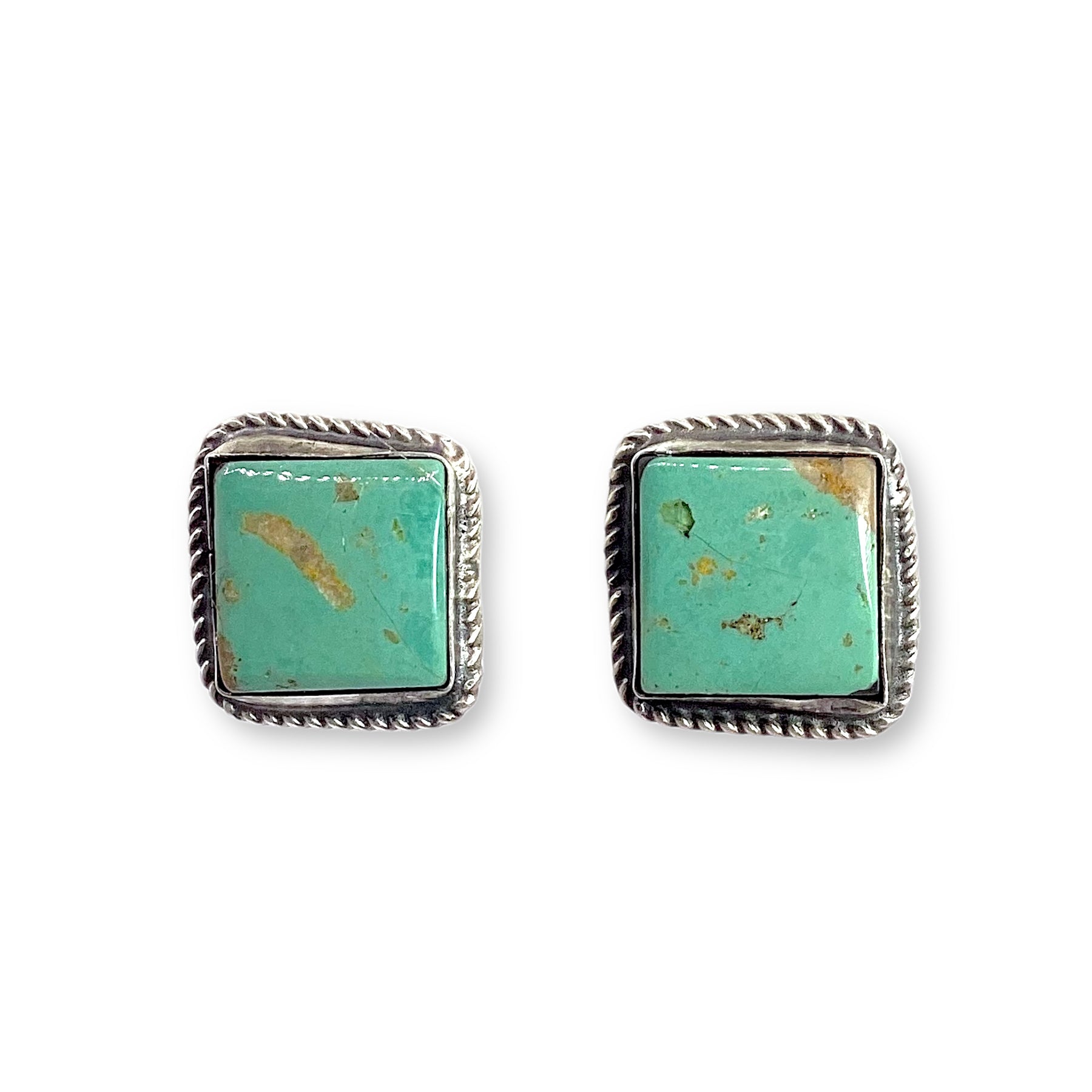 Square Green Kingman Turquoise Studs Sterling Silver Native American Made
