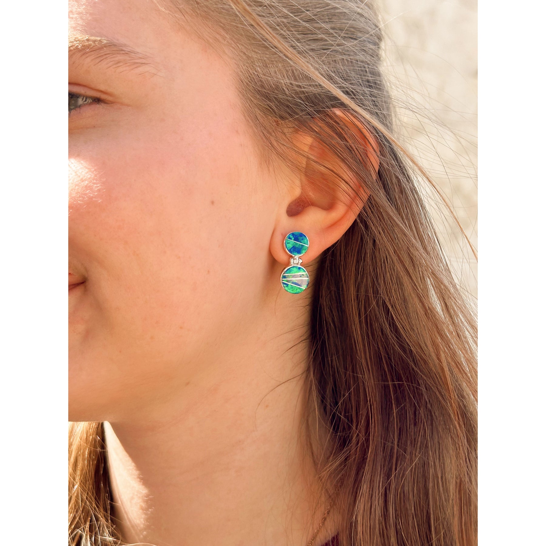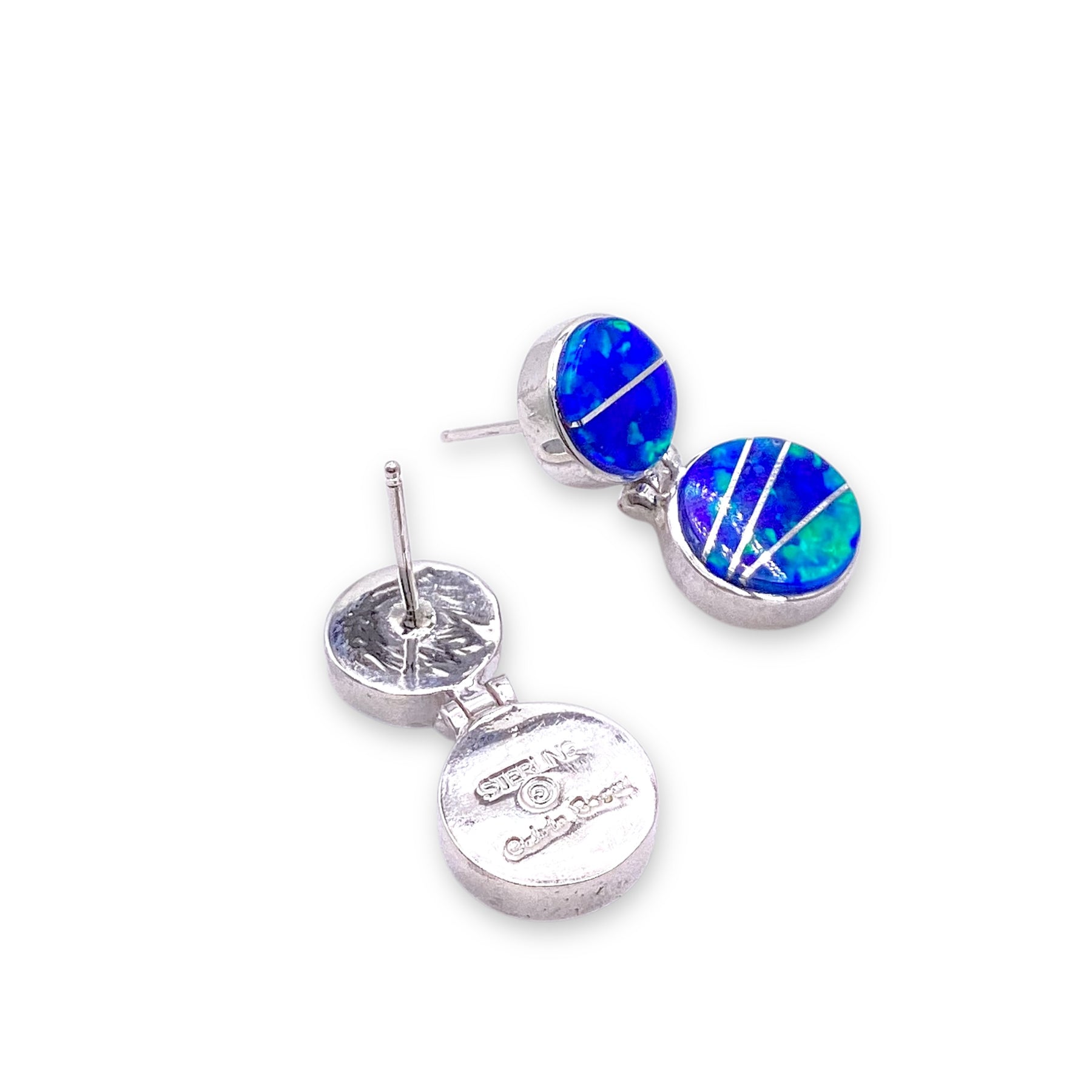 Calvin Begay Blue Fire Opal Circle Sterling Silver Earrings Native Made
