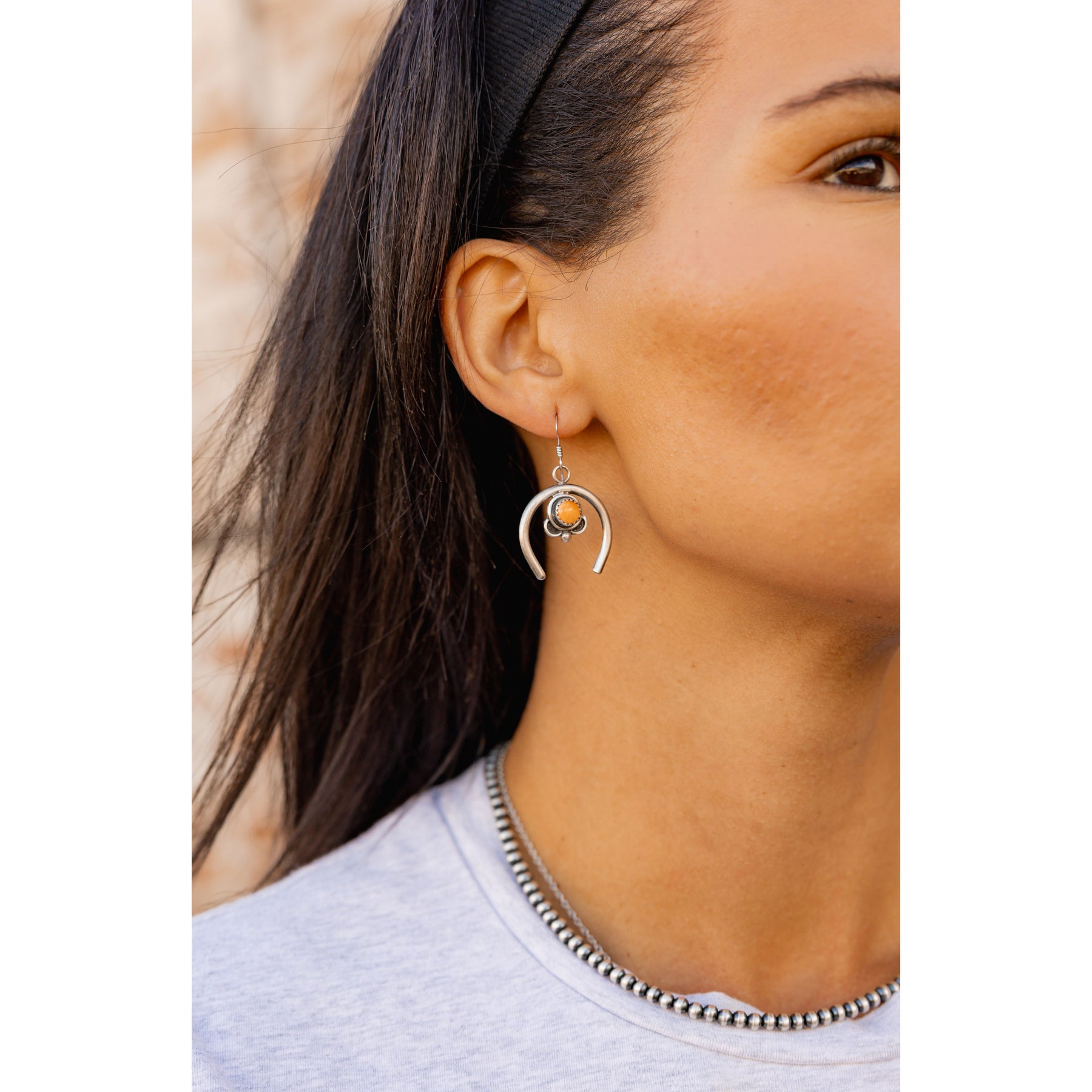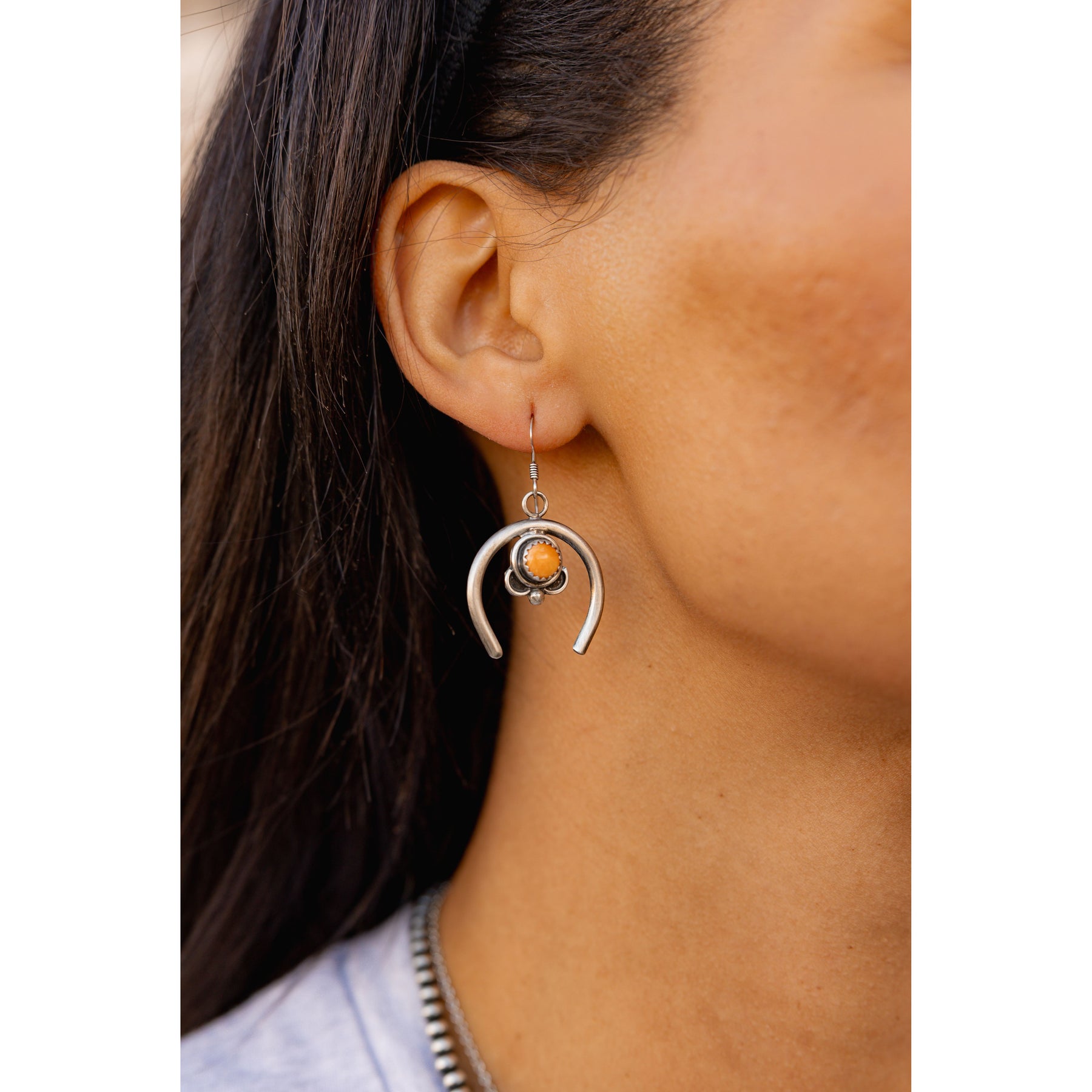 Treat yourself with an exquisite piece of southwestern jewelry with these Mini Naja Earrings by Mary Tso. Steeped in rich cultural history, these earrings are Native American made, bringing authenticity and beauty right to your collection. Each earring is handmade, showcasing intricate detailing that reflects the skill and passion of the artist. Despite the impressive detailing, these earrings maintain the perfect size - making them comfortable and practical for everyday wear. Celebrate your love for unique and meaningful jewelry with these charming Mini Naja Earrings.