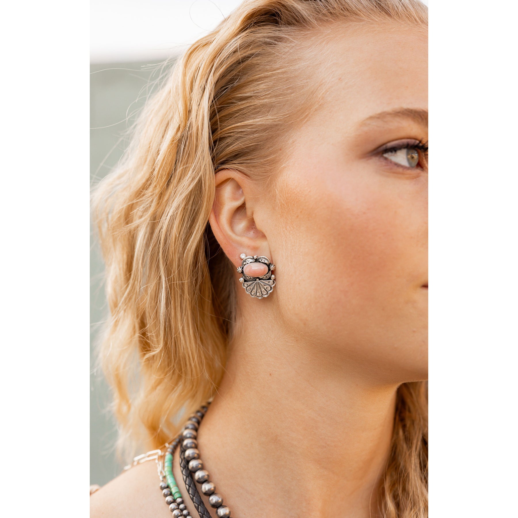 Add a splash of pink to brighten up any look, anytime! These studs shine with layers of sterling silver hand-stamped cutouts, giving a fun wink to Spanish artistry inspired by early colonial American styles.
