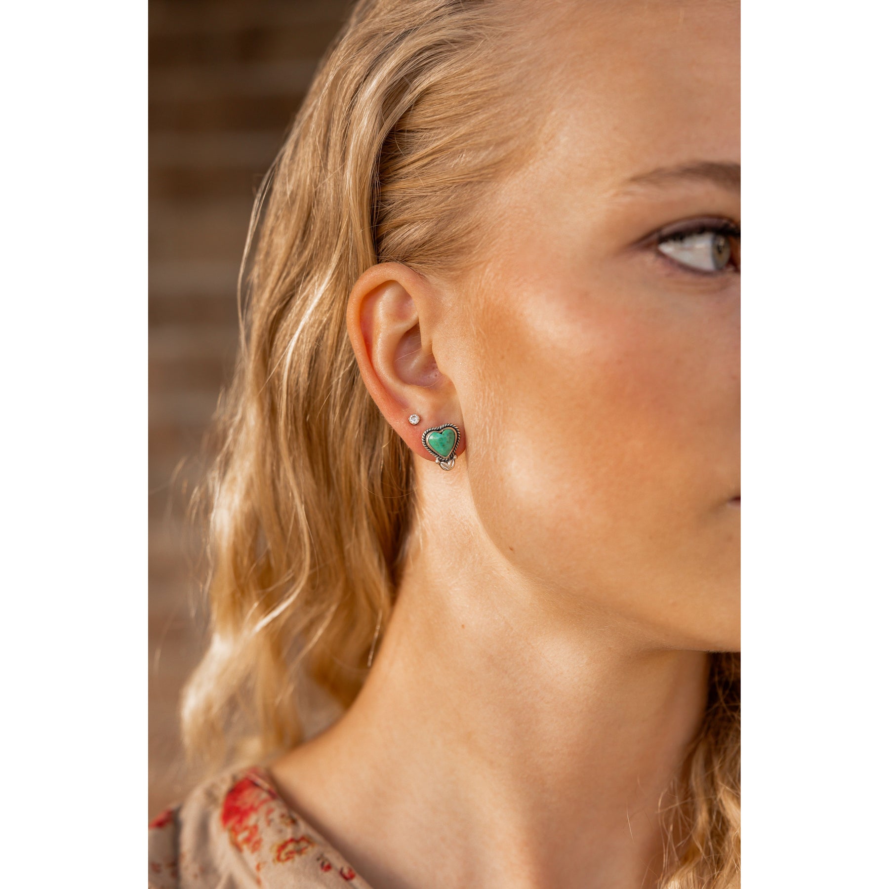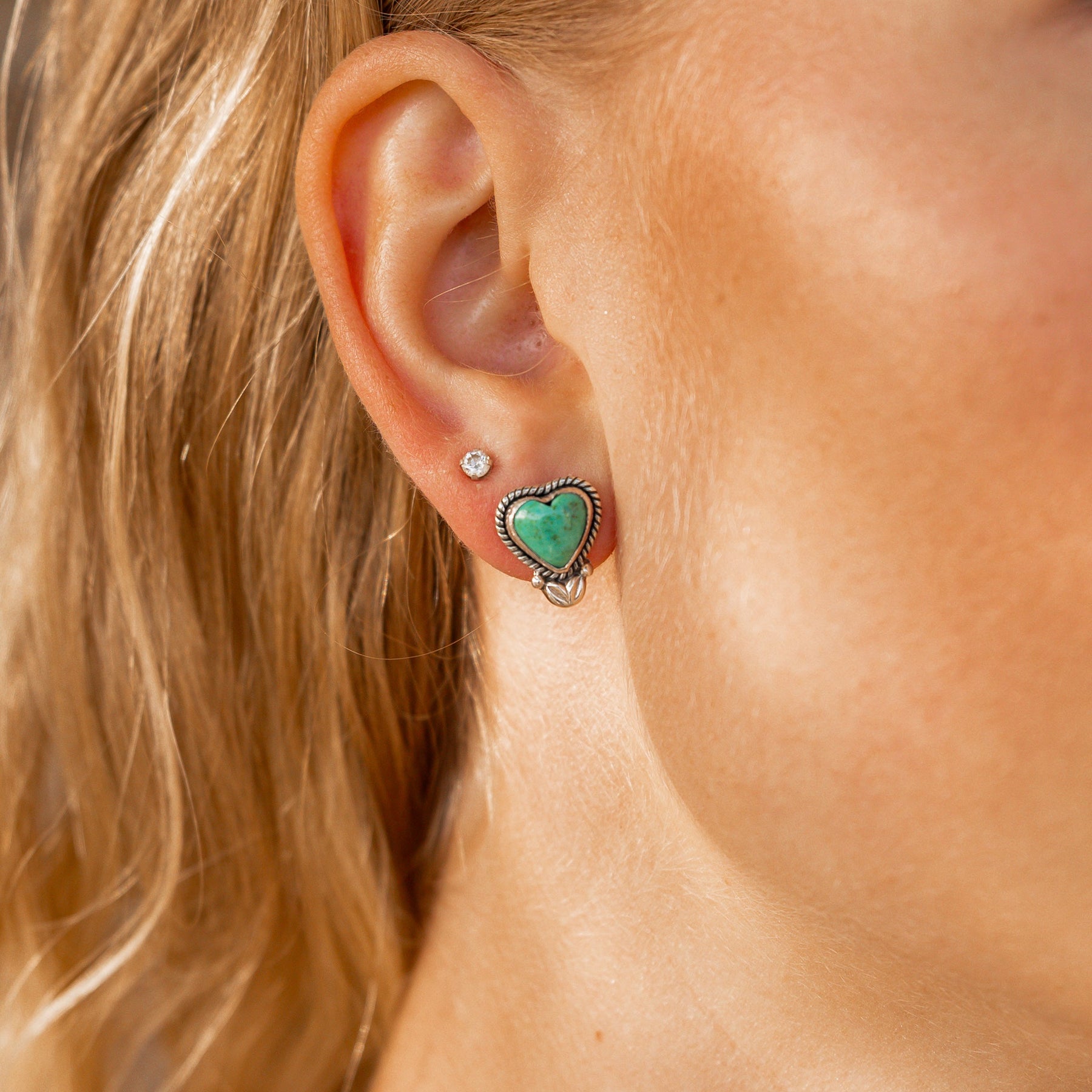 From our Southwestern Jewelry Collection these USA made sterling silver earrings with genuine turquoise stones and darling silver designs are a fan favorite.