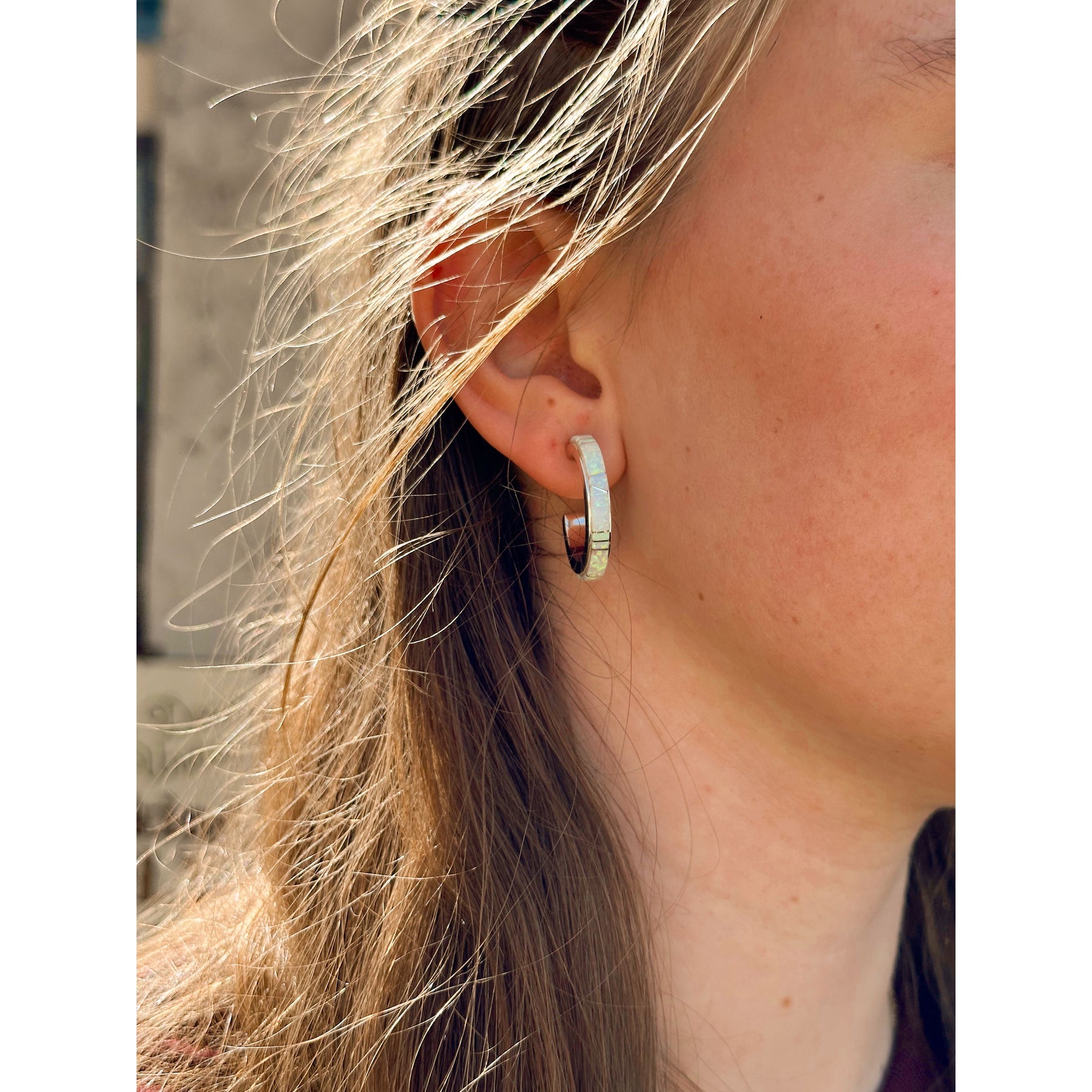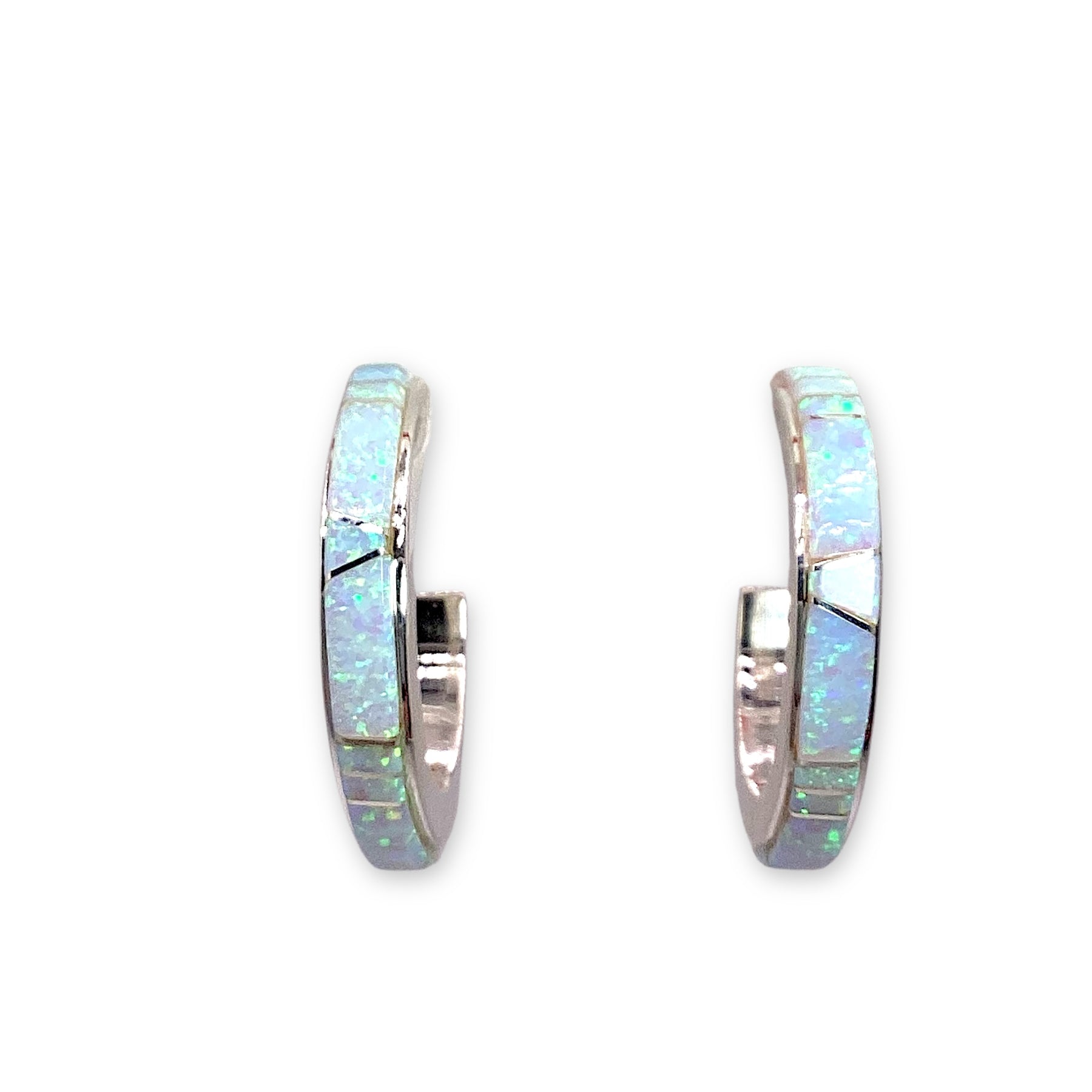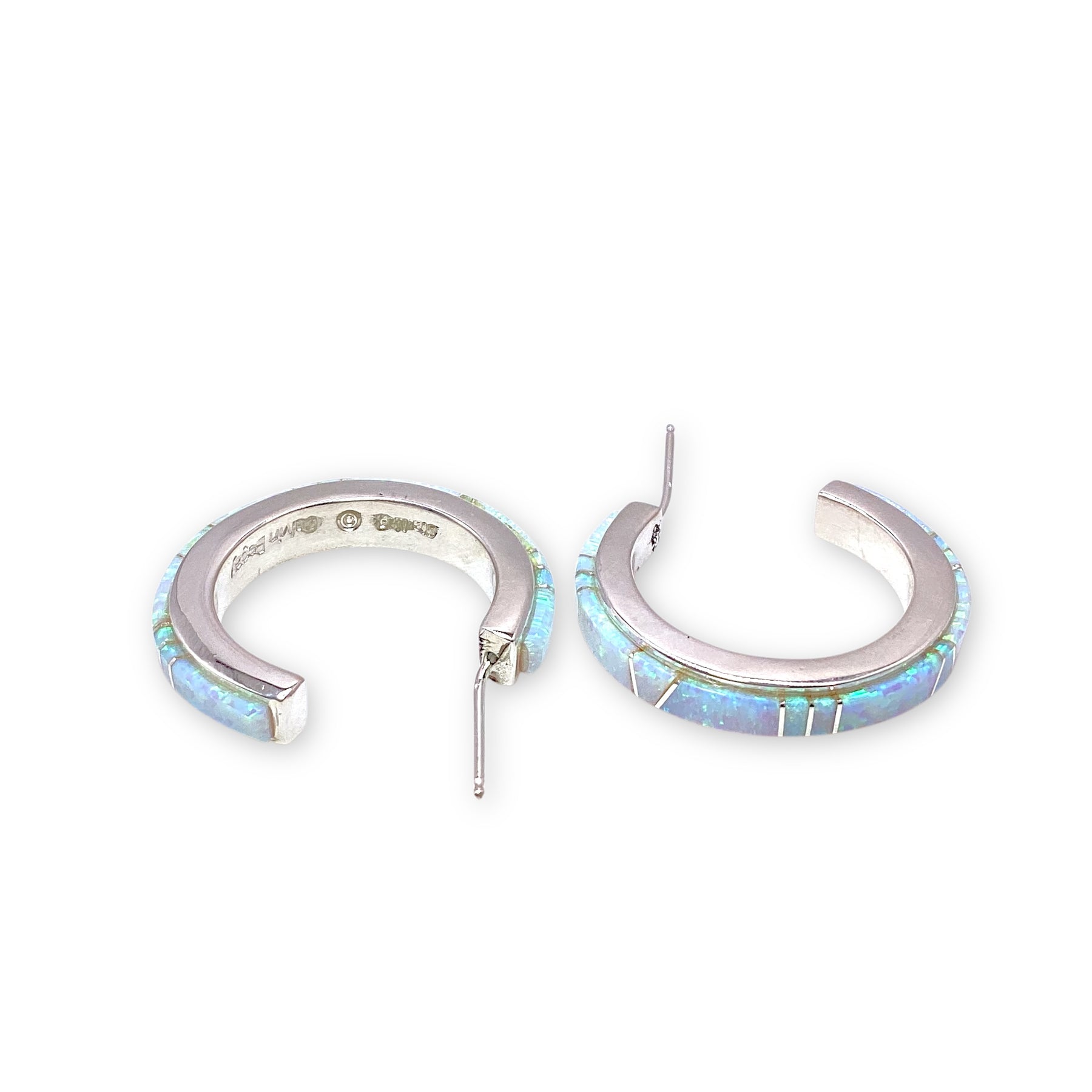 Calvin Begay White Opal Small Hoops Sterling Silver Earrings Native Made