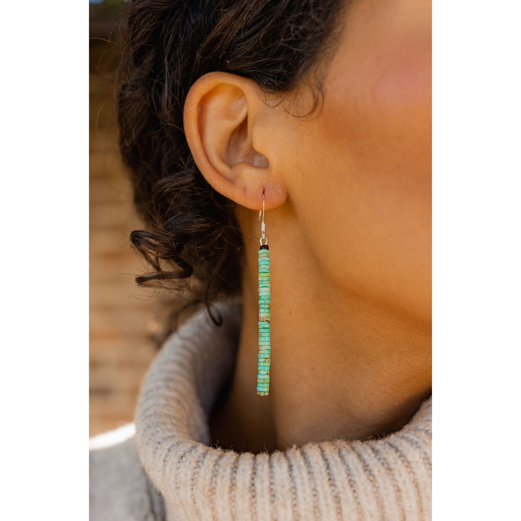 These playful pencil-style earrings from Fannie Garcia mix vibrant turquoise with classic heishi shells for a whimsical, Southwestern-inspired look. Sleek, lightweight, and full of charm, they’re perfect for everyday fun.