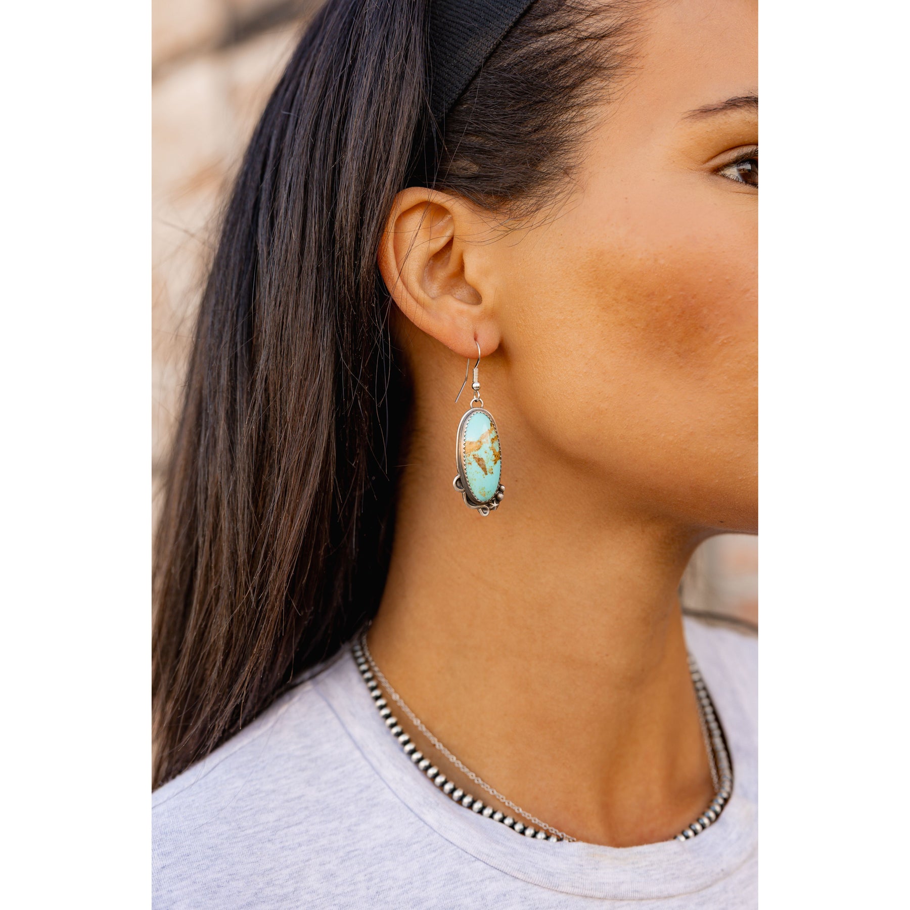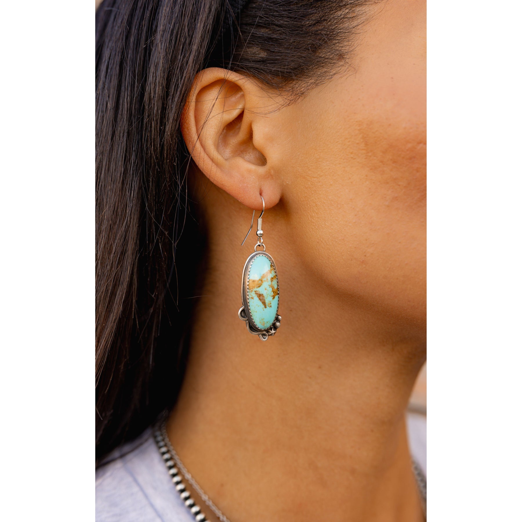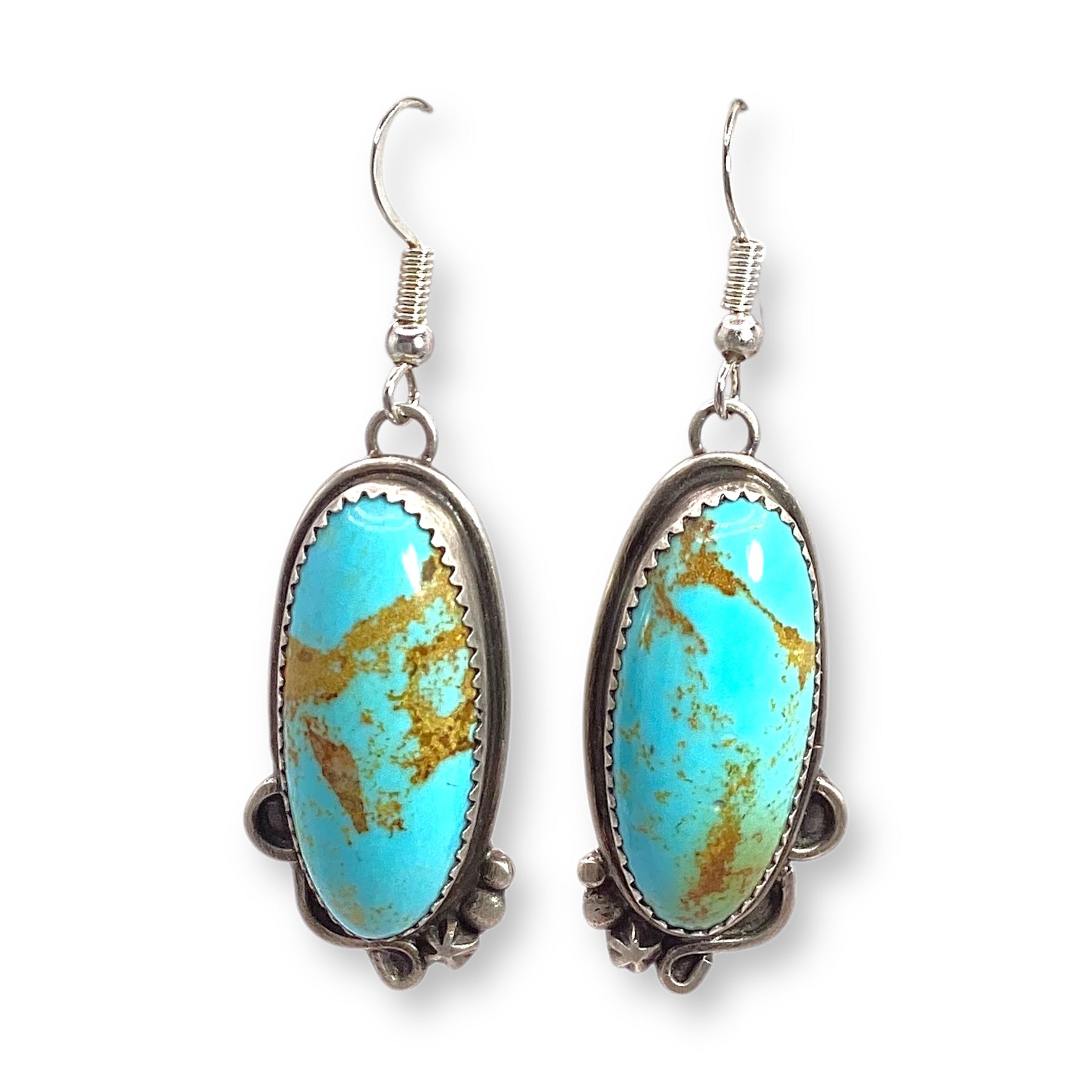 Mary Tso Long Royston Turquoise Earrings Sterling Silver Native Made