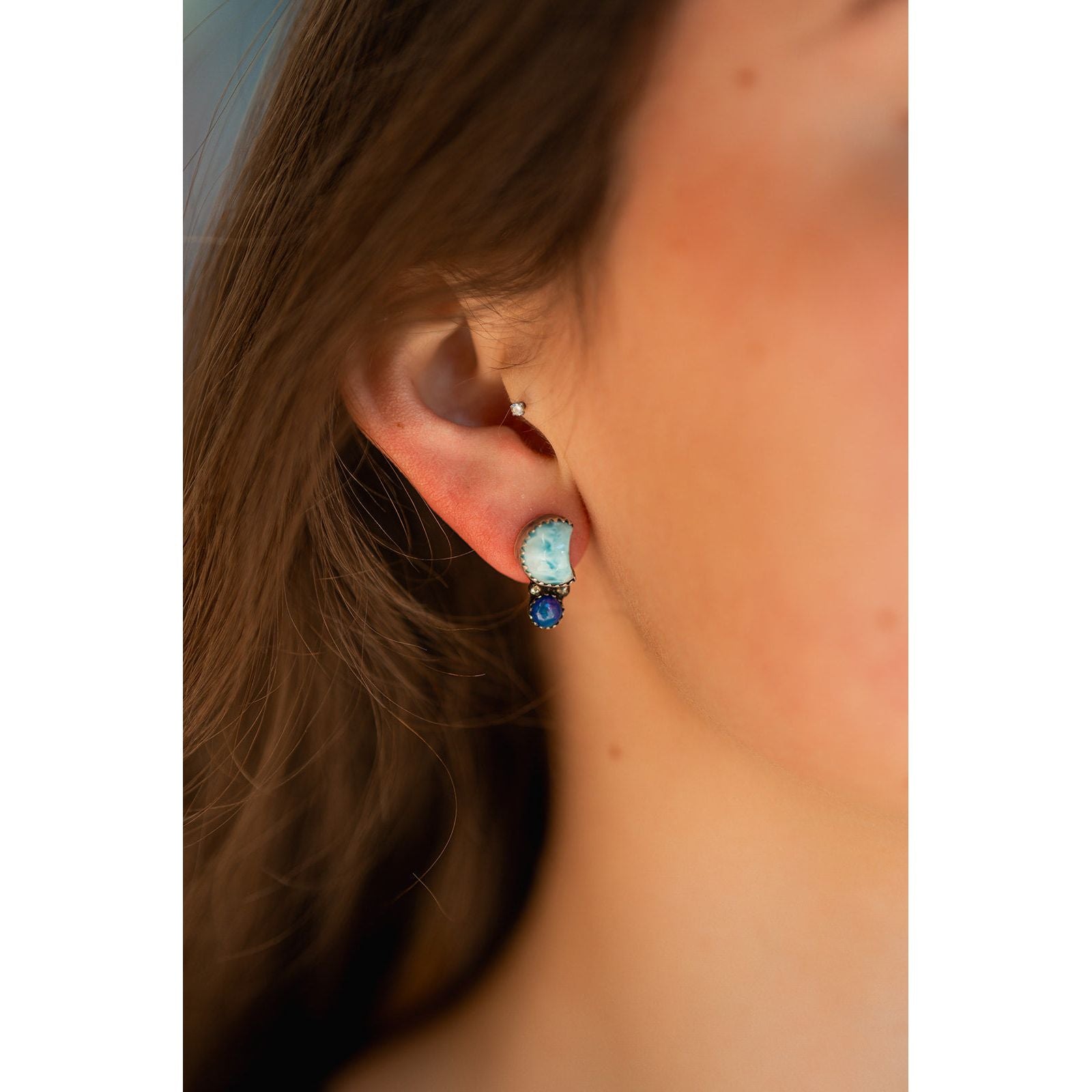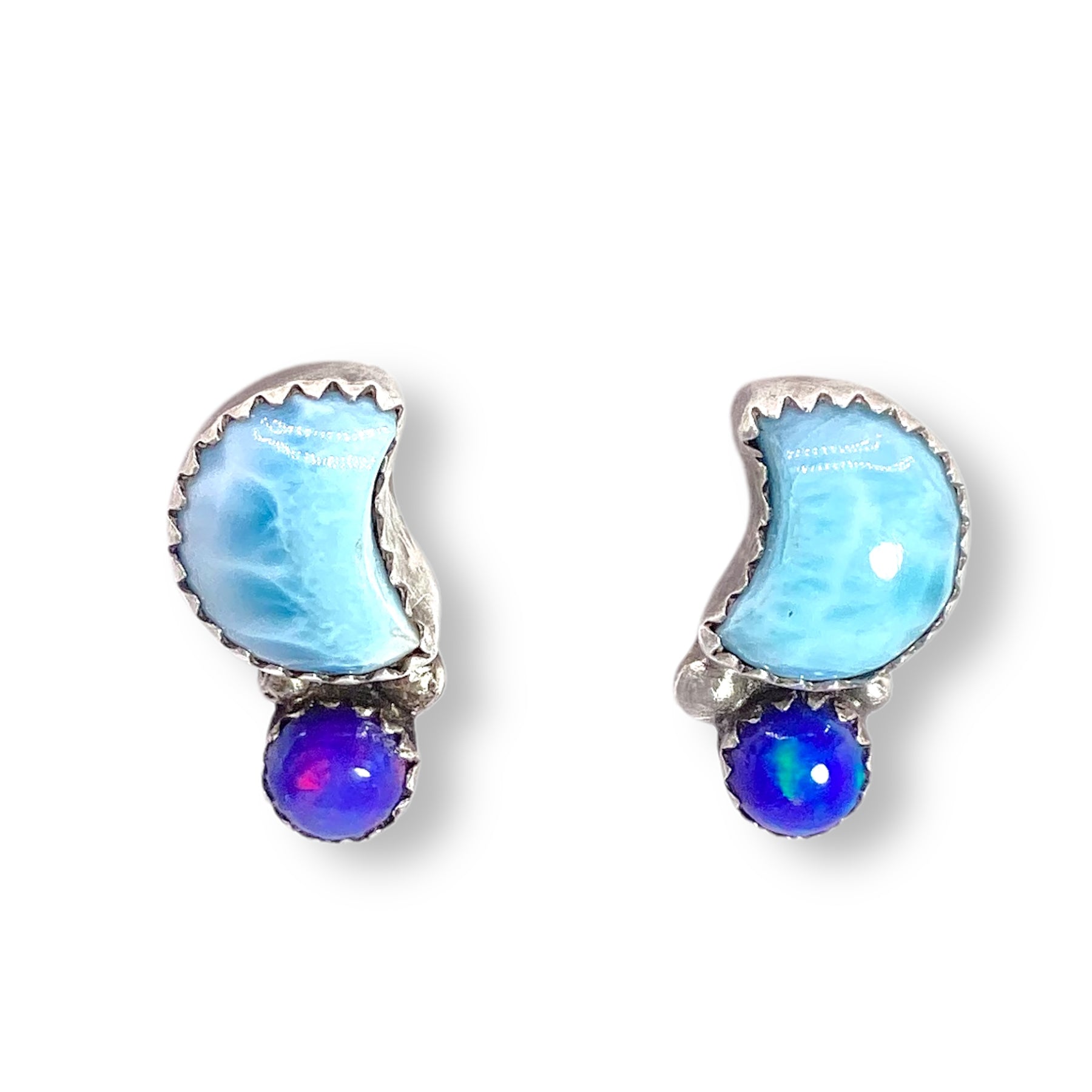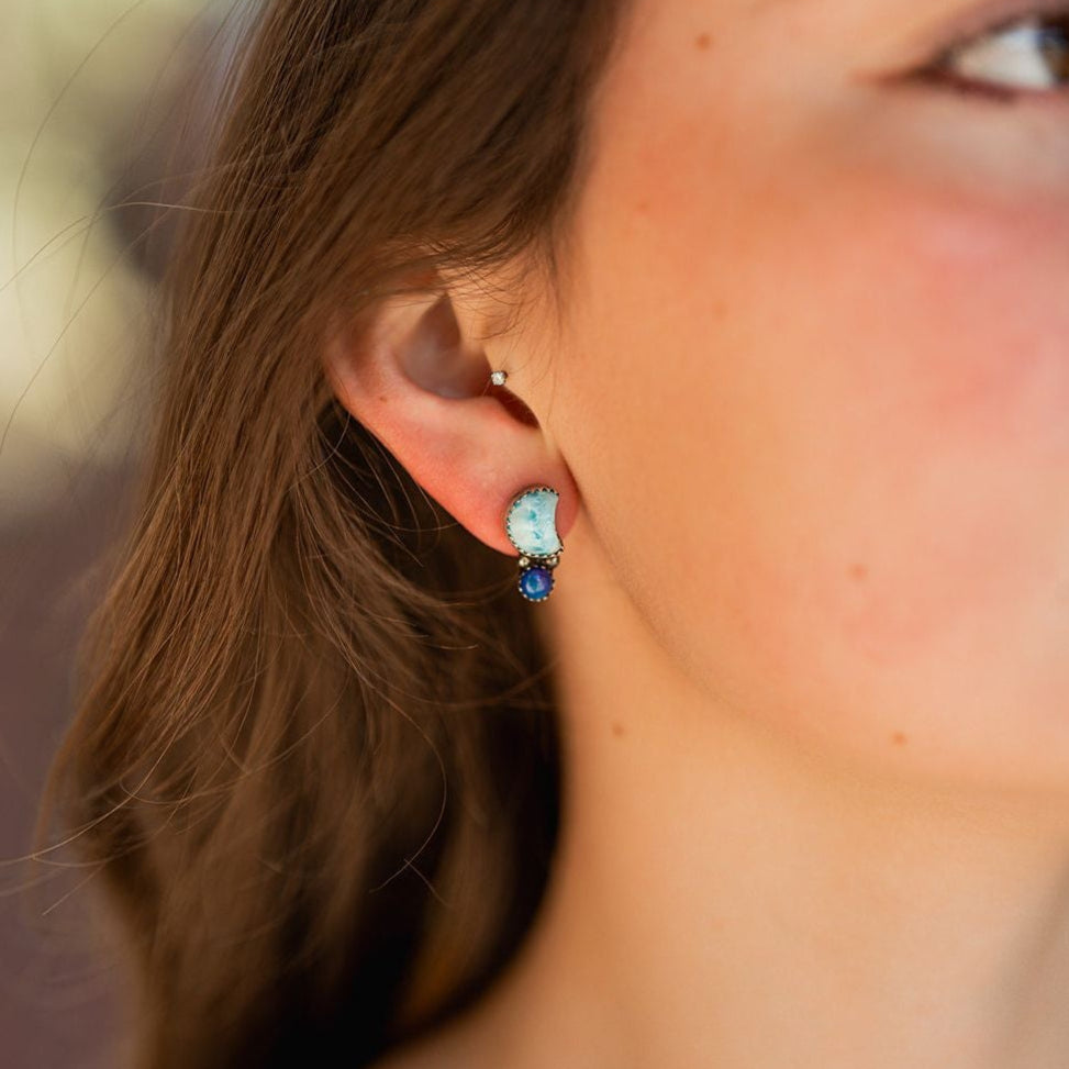 Oasis by Lantern Moon and Stars Earrings with Larimar and Blue Opal Native American Made