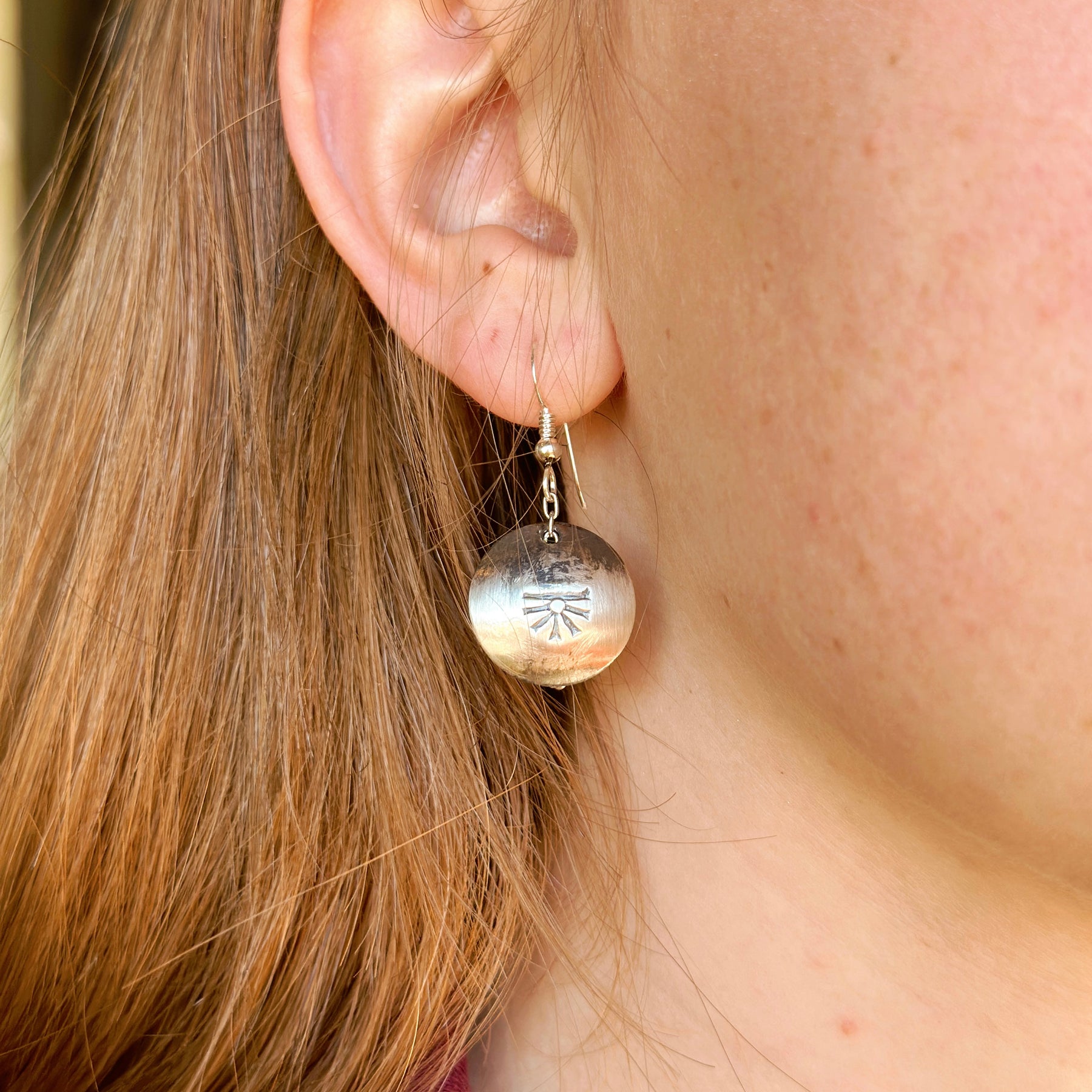 Handcrafted by Navajo artist Maryetta Daukei, these Sunset Pillow Top Navajo Pearl Dangle Earrings capture the magic of golden hour in the Southwest. The softly gleaming pearls shimmer like the last light of day, adding a touch of warmth and wild spirit to any look.