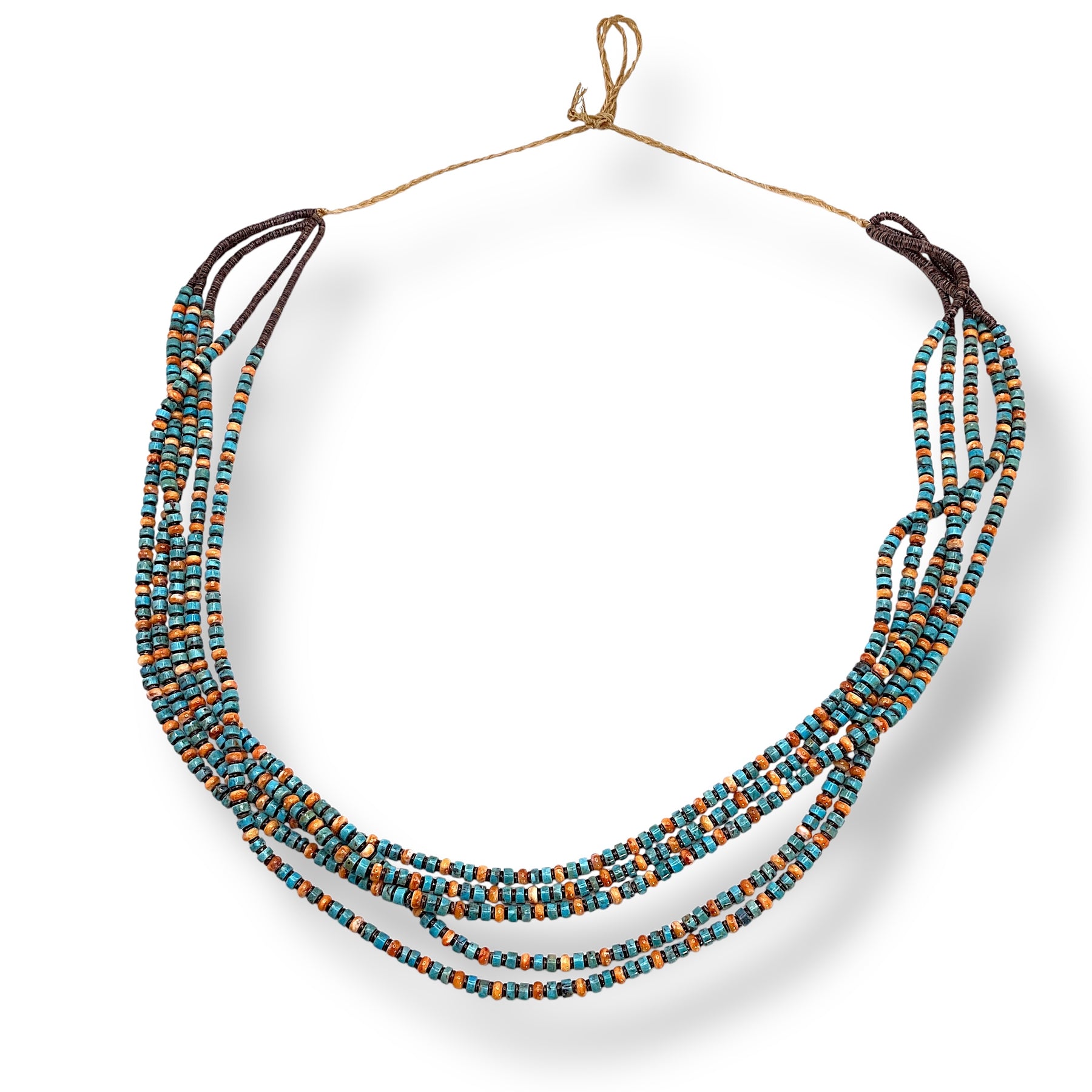 Fannie Garcia 5 Blue Strand Turquoise, Orange Spiny Oyster Shell, And Heishi Shell Beaded Necklace Native Made