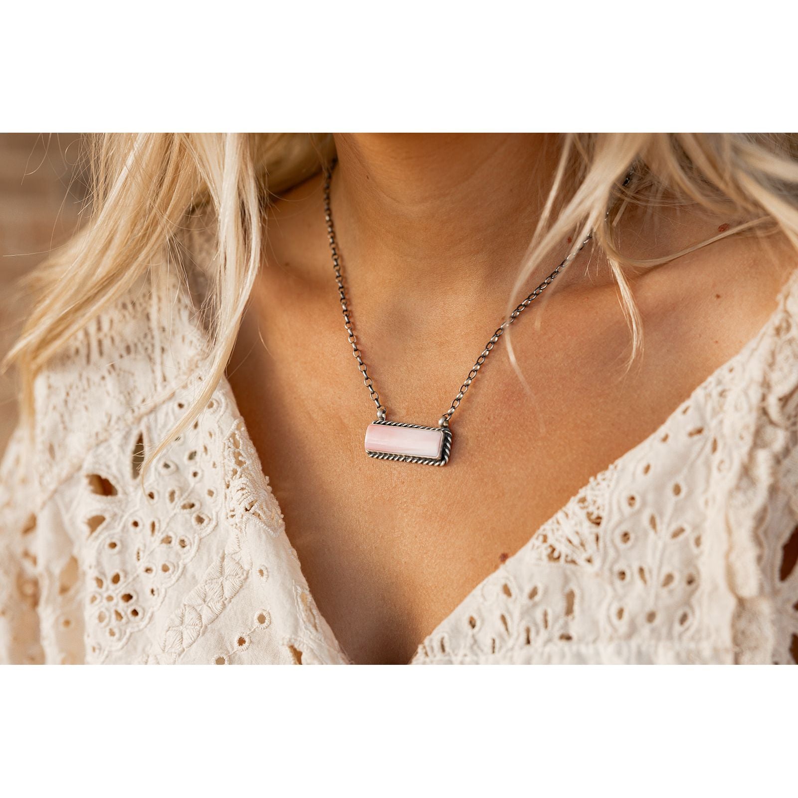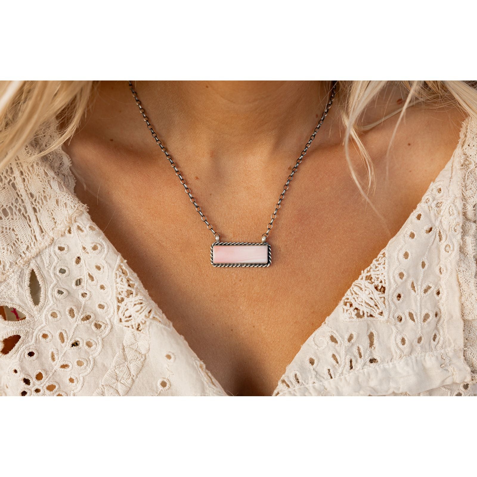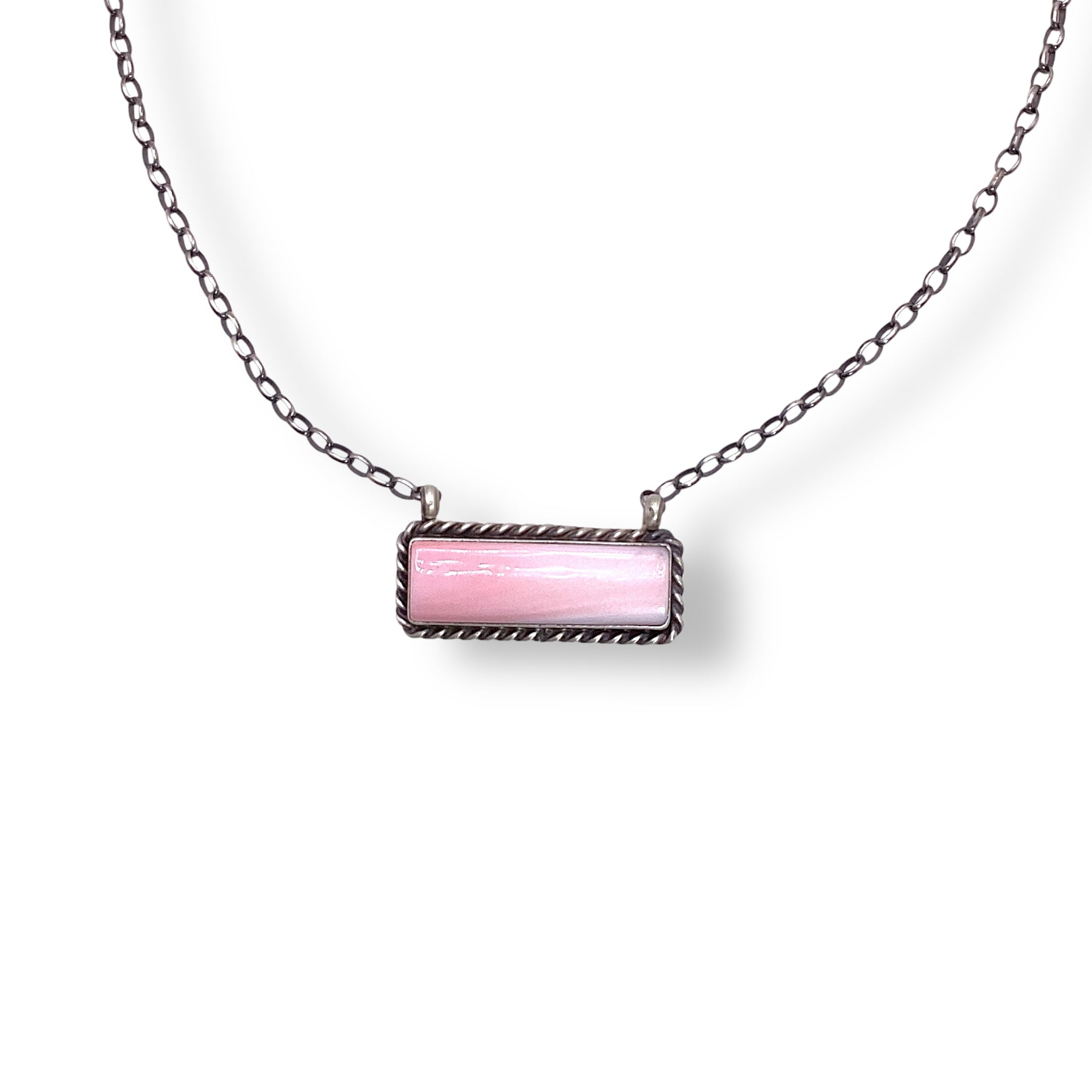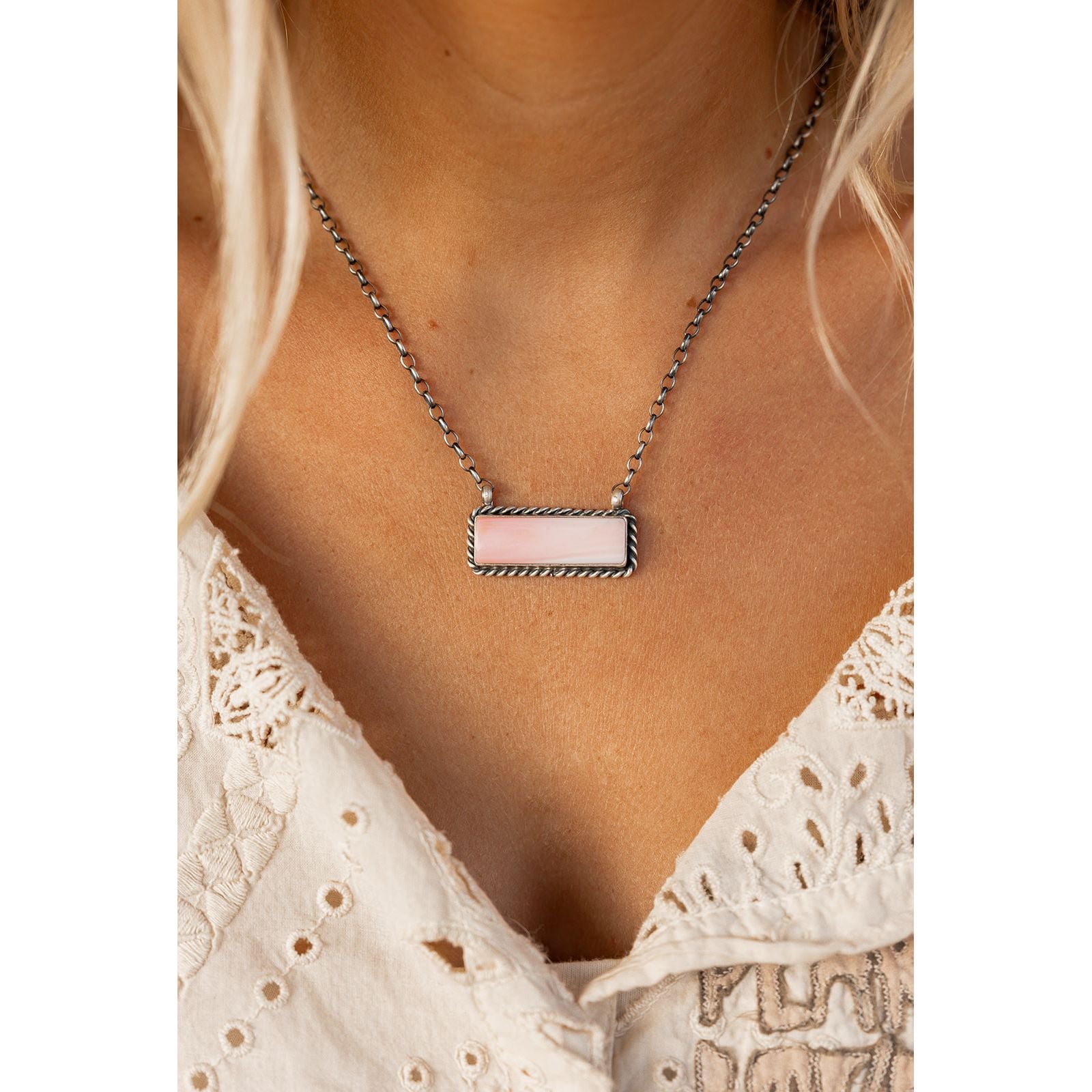 Pretty and playful, this Pink Conch Shell bar necklace by Navajo artist Johnny Dixon features a smooth, delicate design that brings a soft, feminine touch to any look.