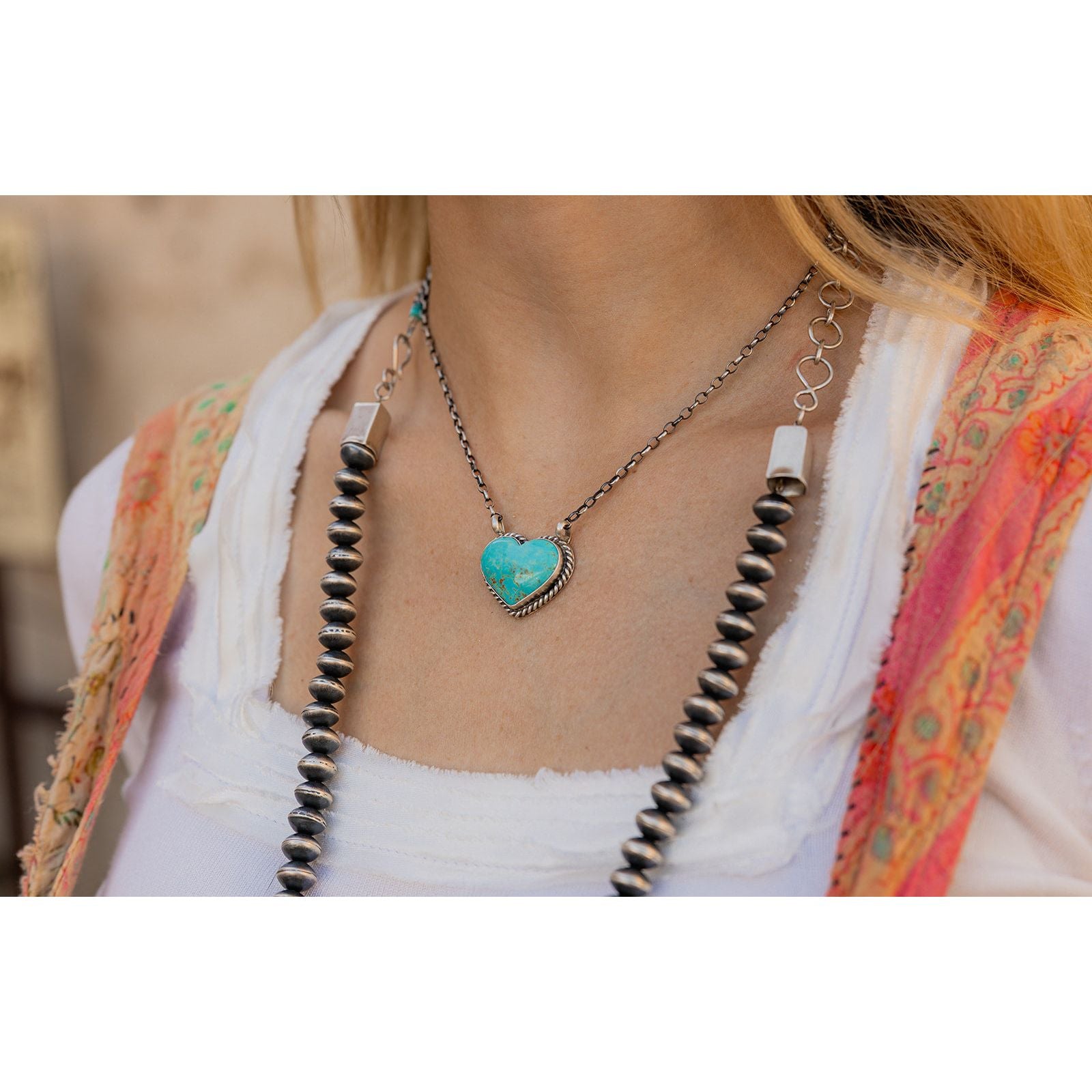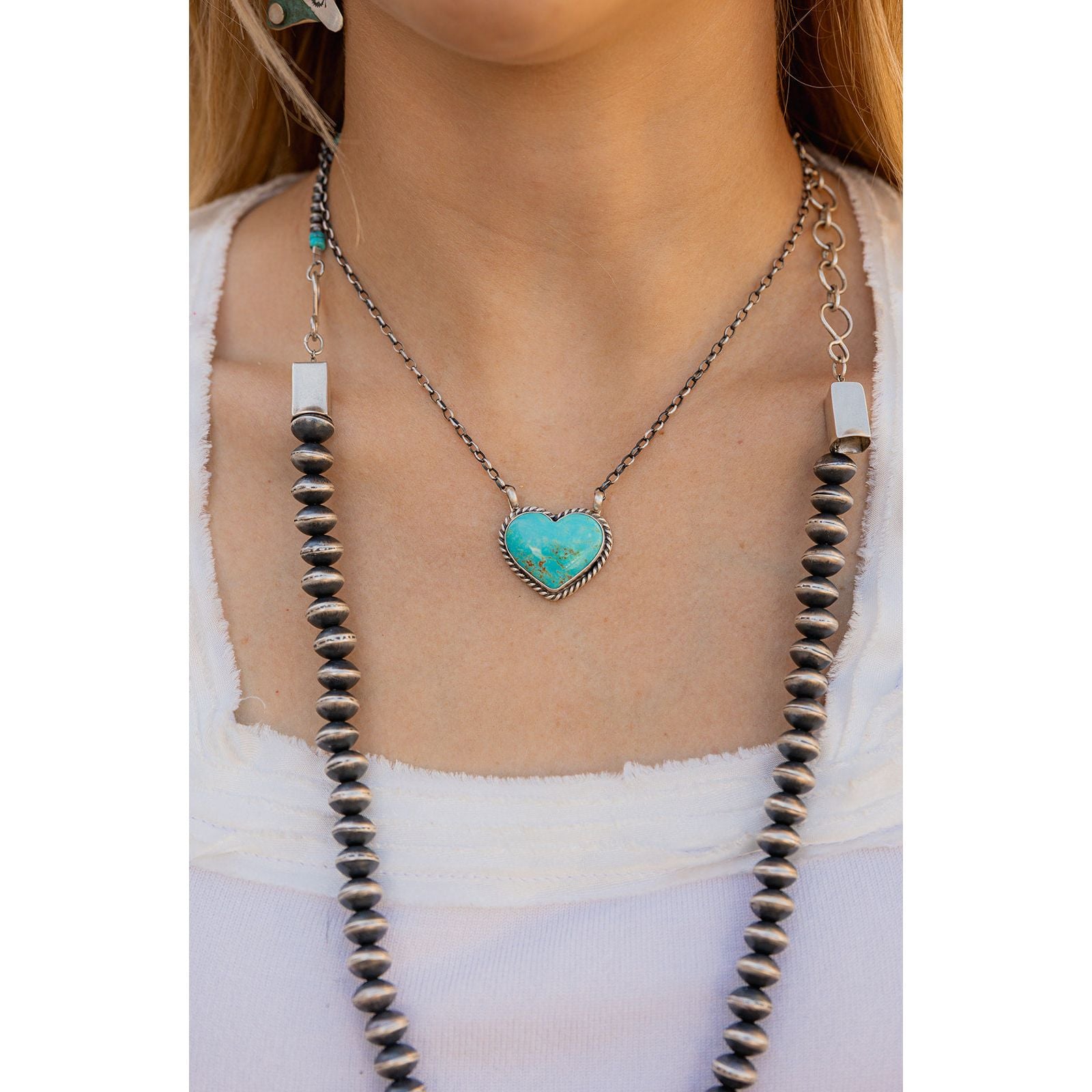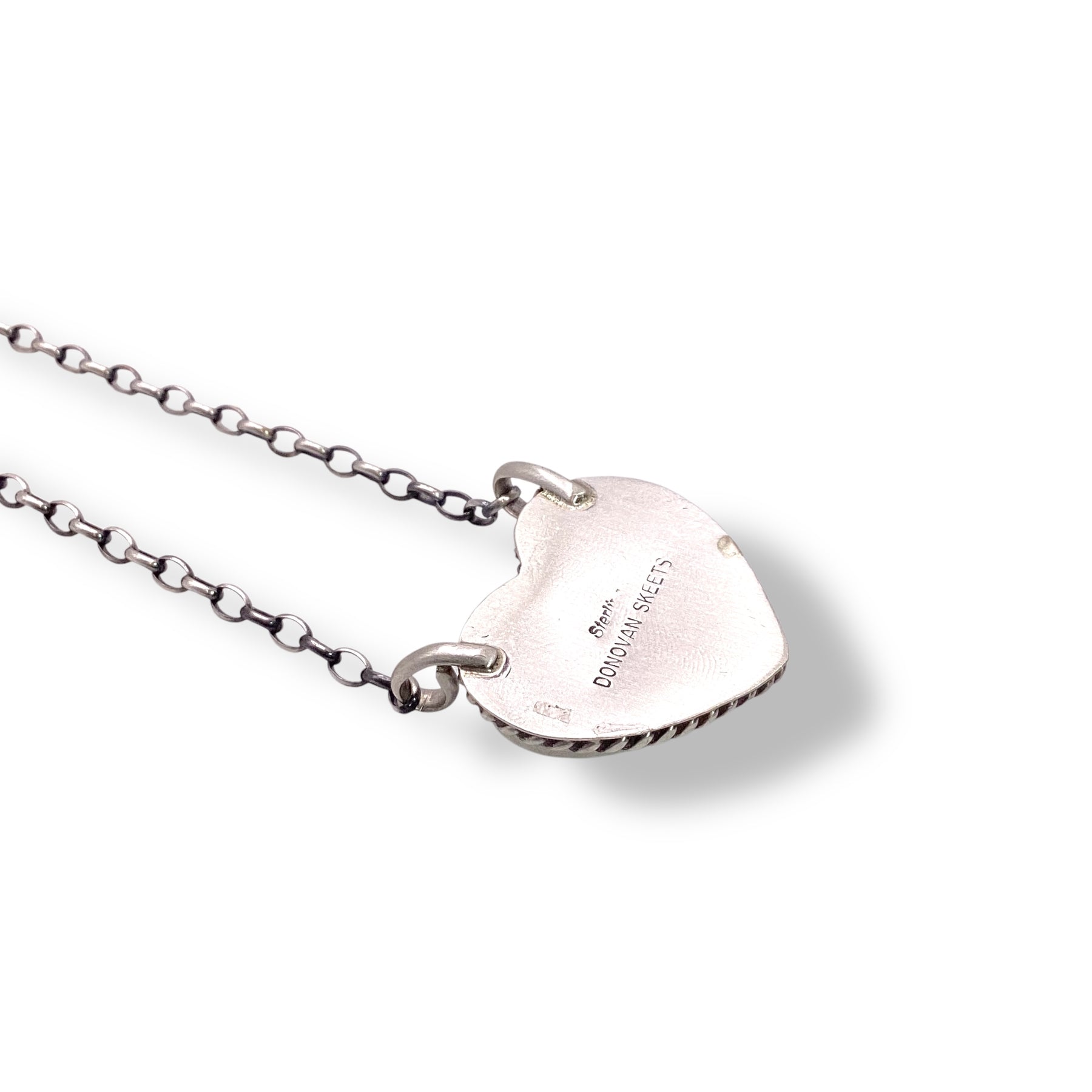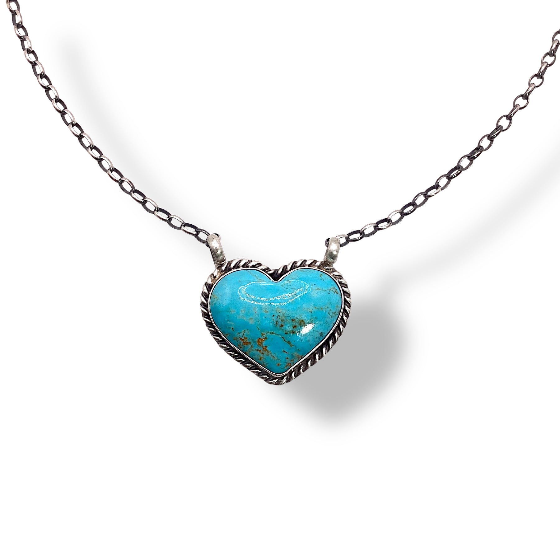 Kingman Turquoise Heart Necklace Sterling Silver Navajo Made | Donovan Skeets