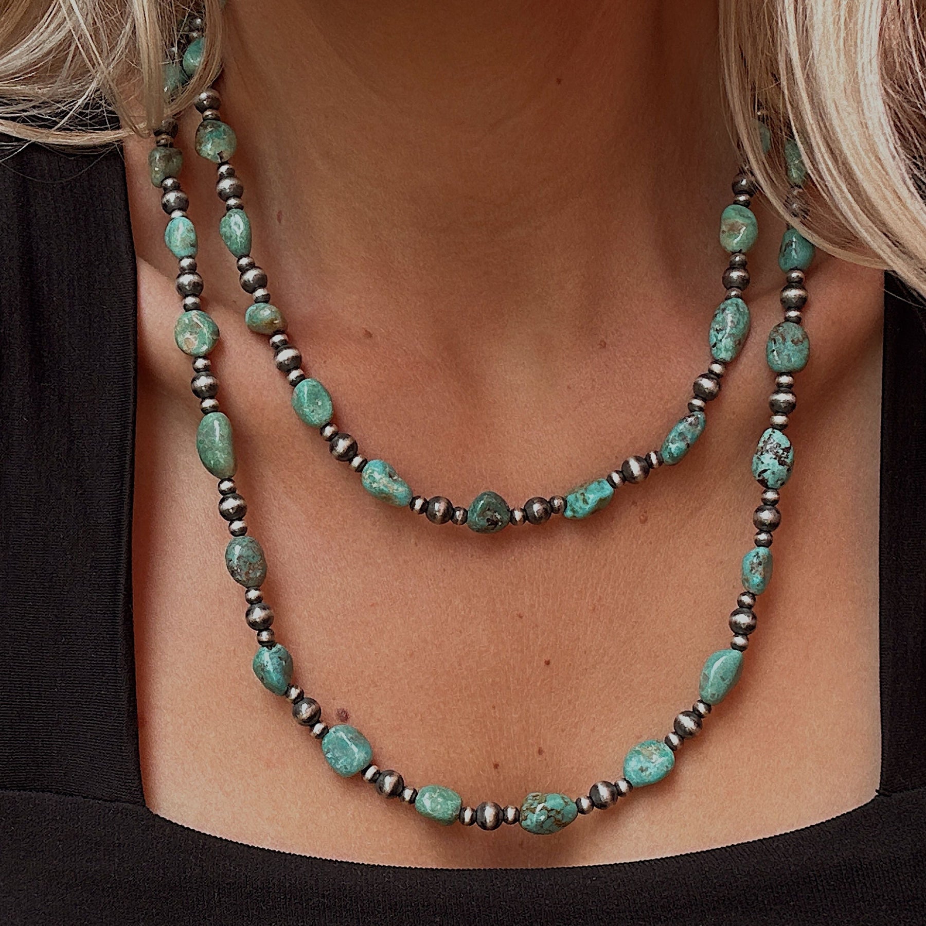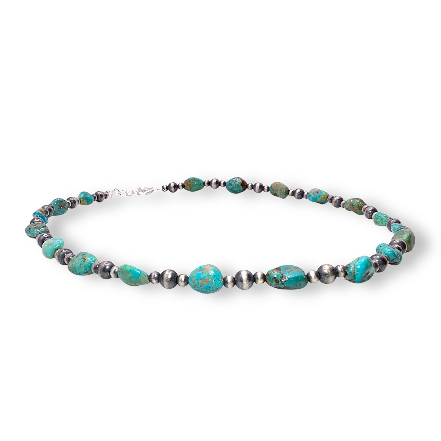 Sterling Silver Red River Turquoise And Navajo Pearl Necklace