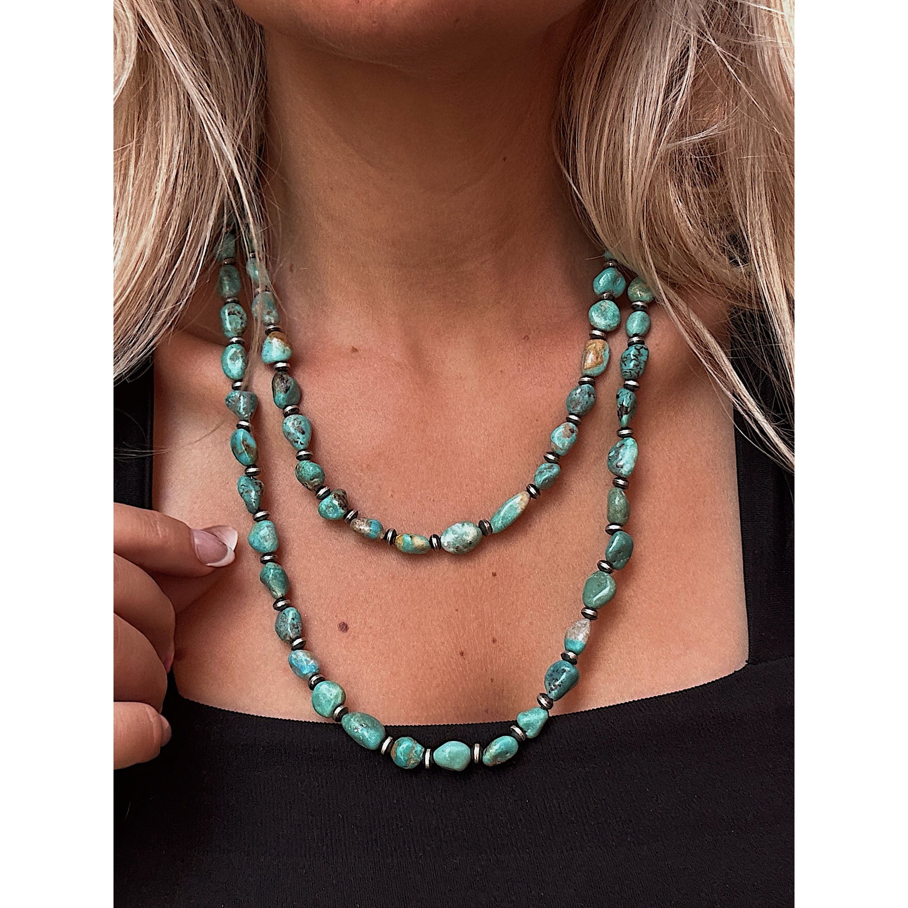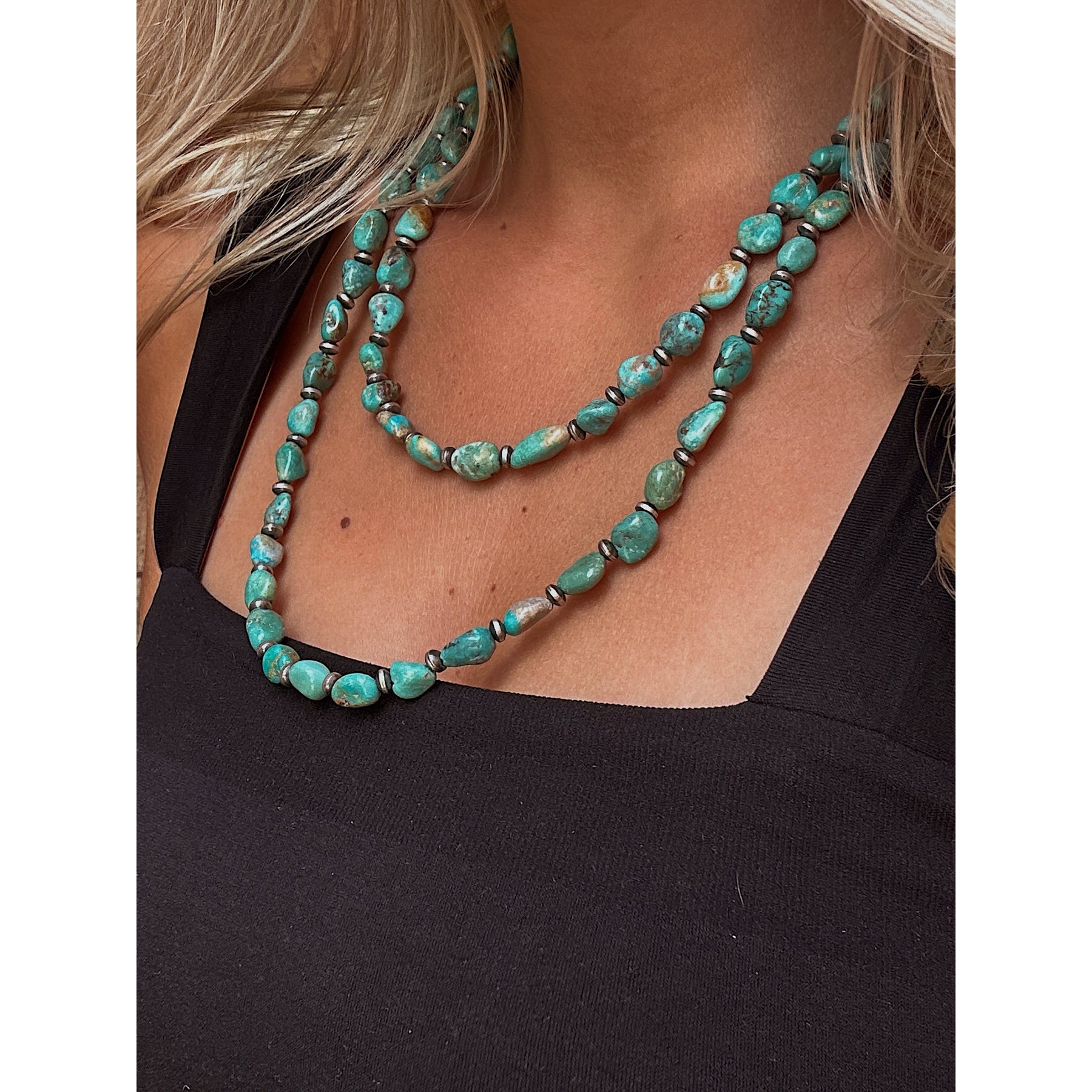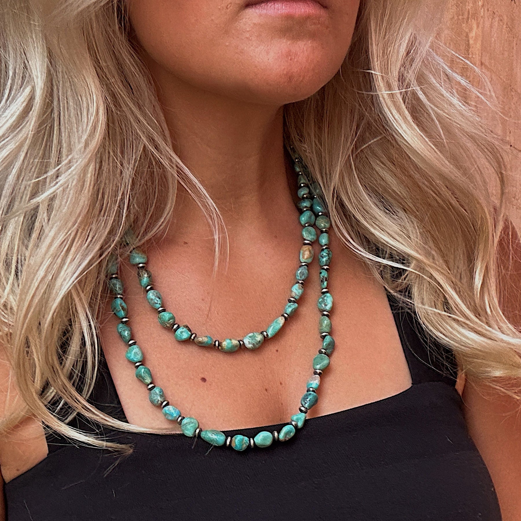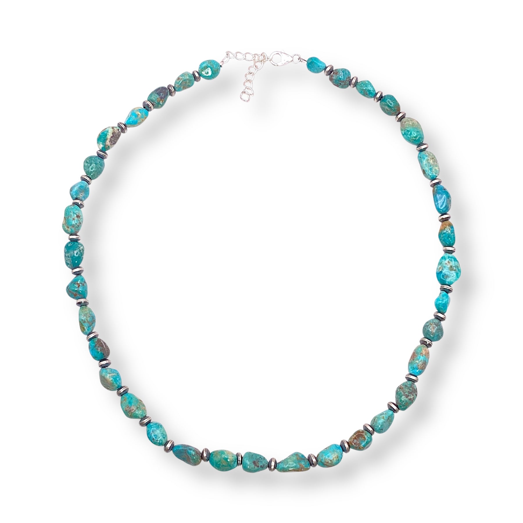 Sterling Silver Red River Turquoise And Navajo Pearl Necklace