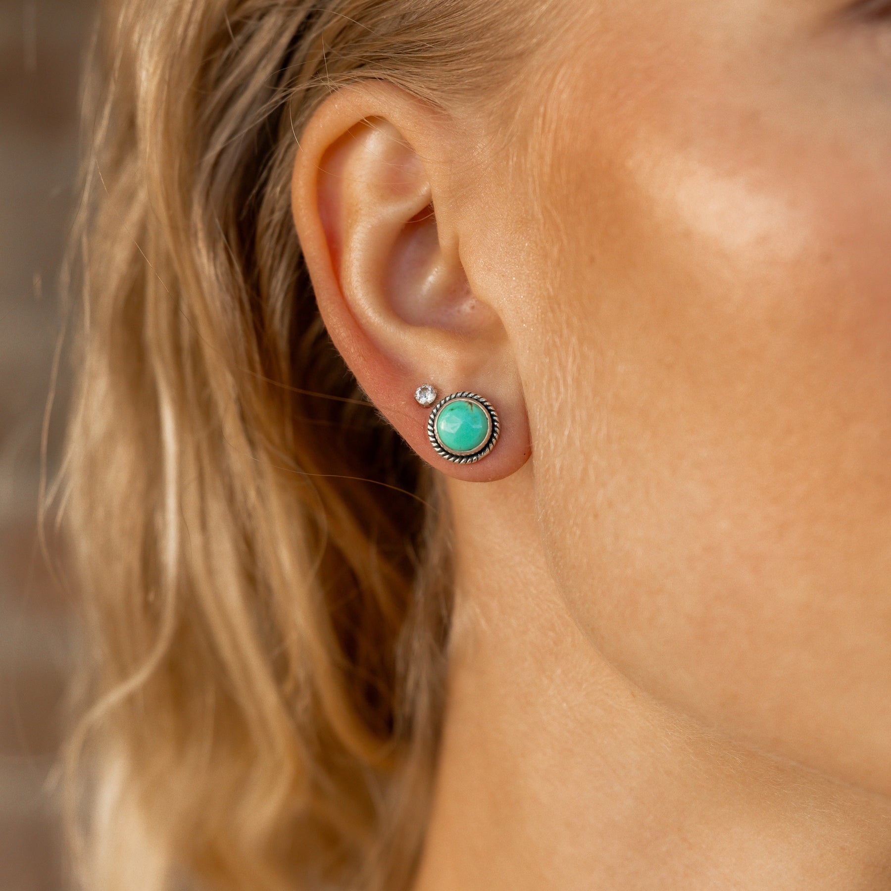 From our Southwestern Jewelry Collection these USA made sterling silver earrings with genuine turquoise stones and darling silver designs are a fan favorite.