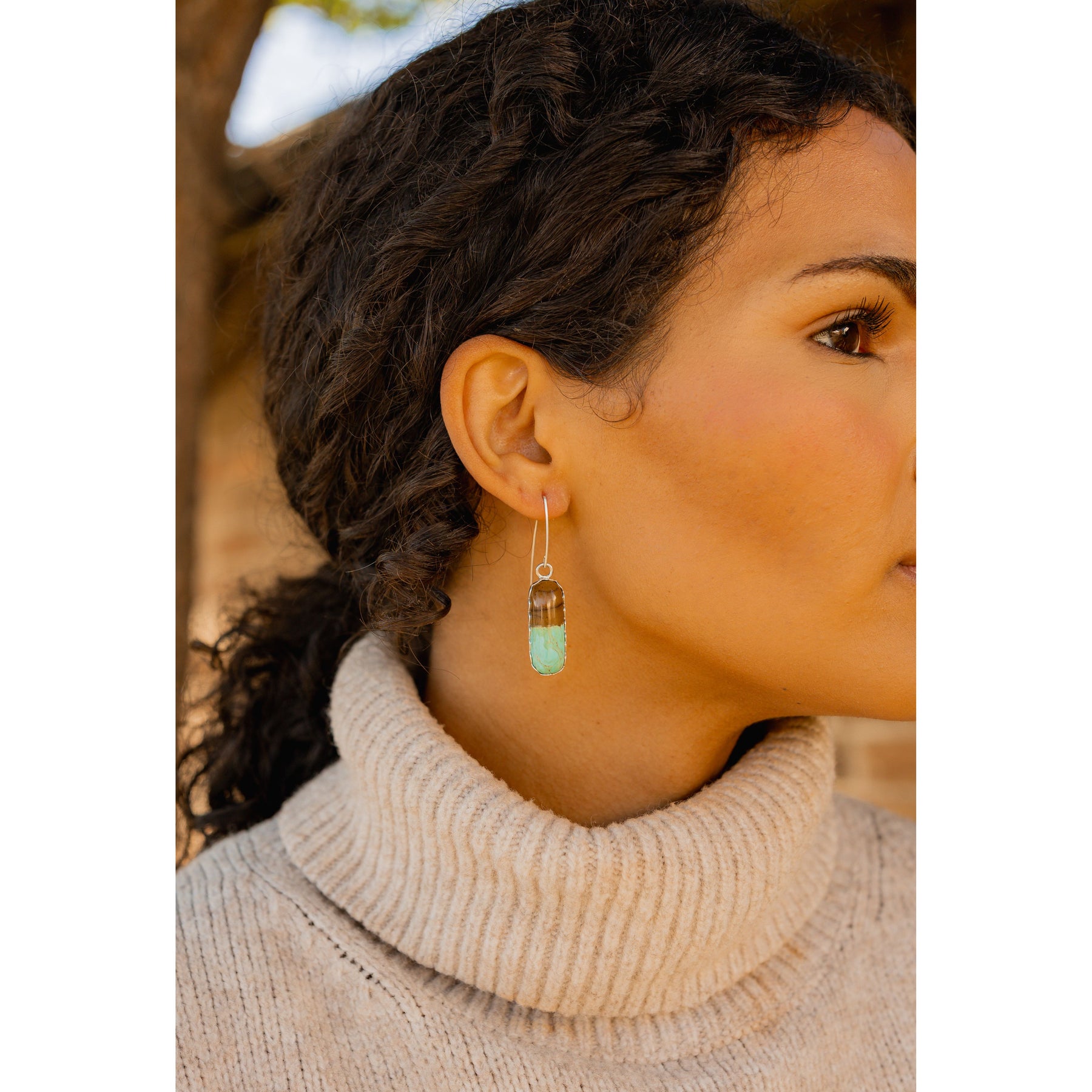 These bright, lively Number 8 Turquoise stones swing gently from sterling silver, catching the light with every move. They are expertly handcrafted by silversmith Michael Silberhorn.
