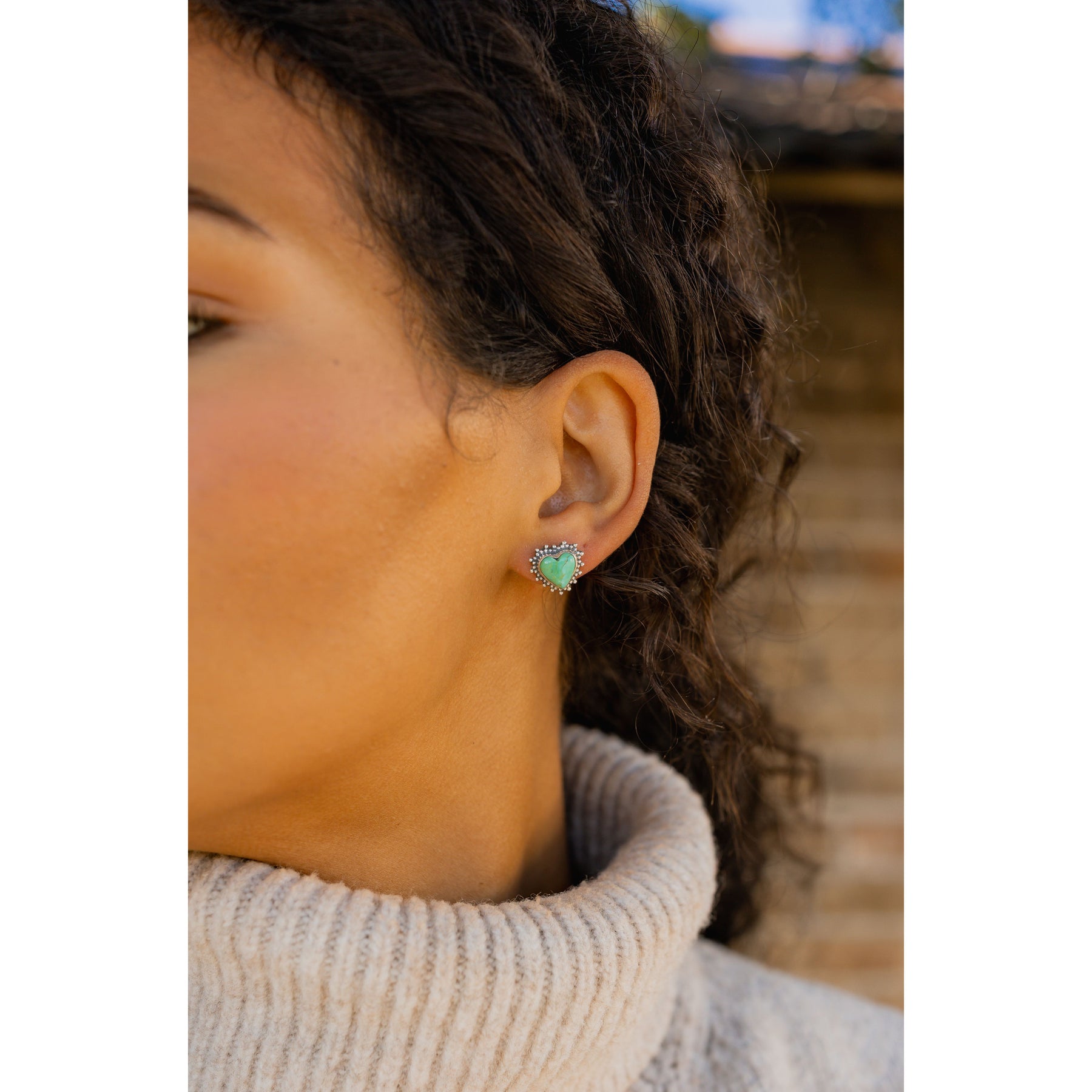 Holiday Stud Playful Kingman Turquoise Heart Earrings Sterling Silver