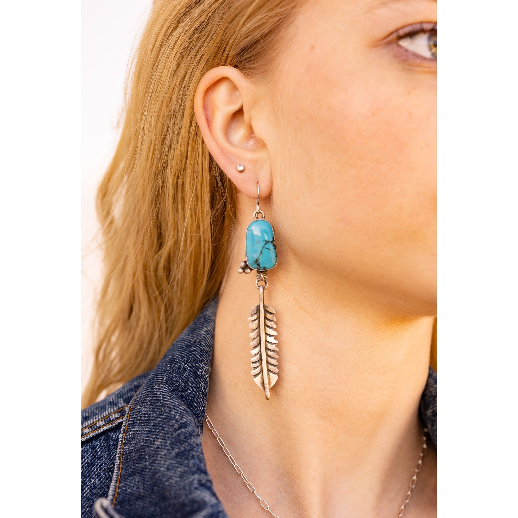 Unique Native American Made sky blue Kingman Turquoise feather earrings by Leigha Cleveland. These beauties are lightweight for comfort while being endlessly elegant.