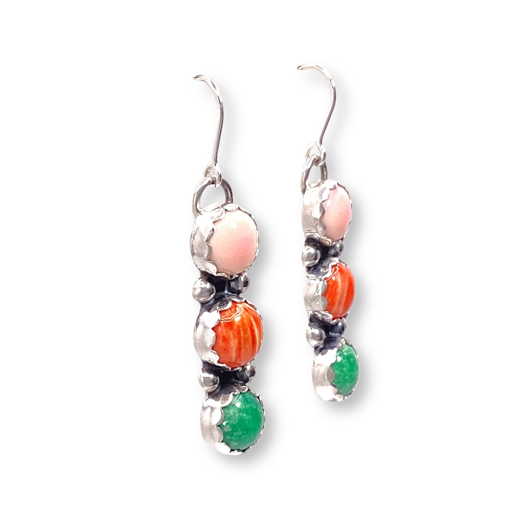 These all started with dishes. Yes, Christine and Lyanne were putting antique green glass, orange Fiestaware, and pink crystal together. Meet the earring version of that conversation.