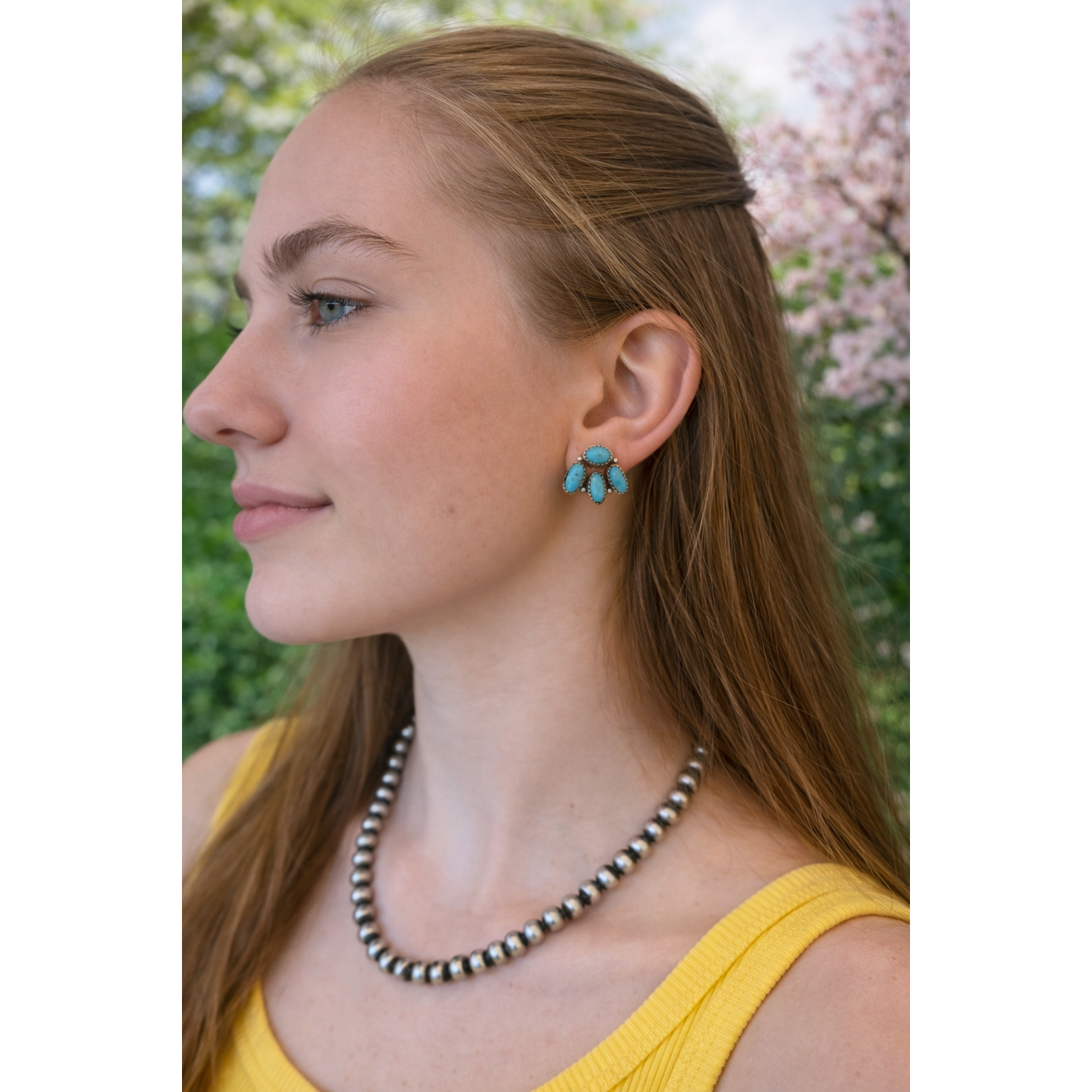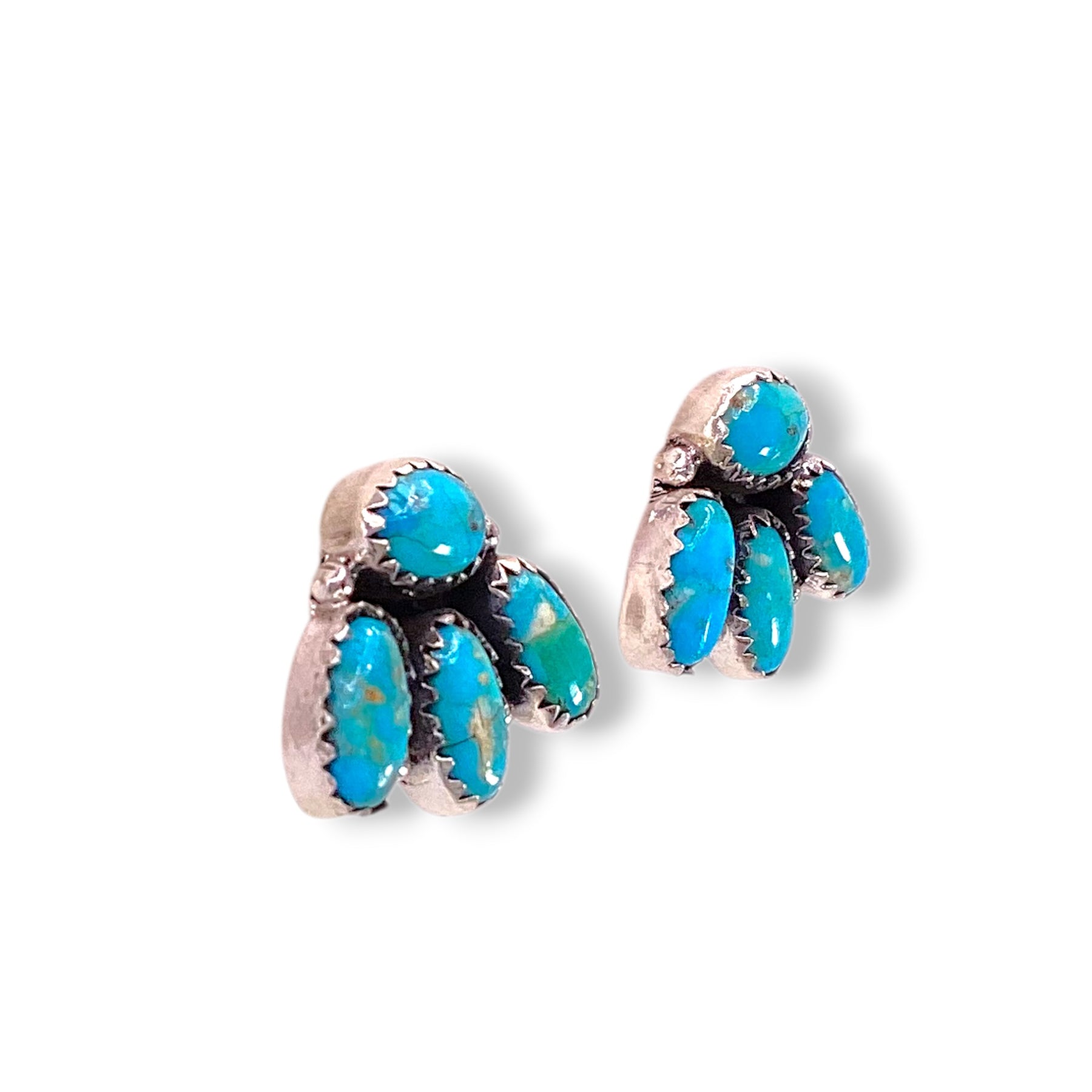 Blue Kingman Turquoise Cluster Stud Earrings Sterling Silver