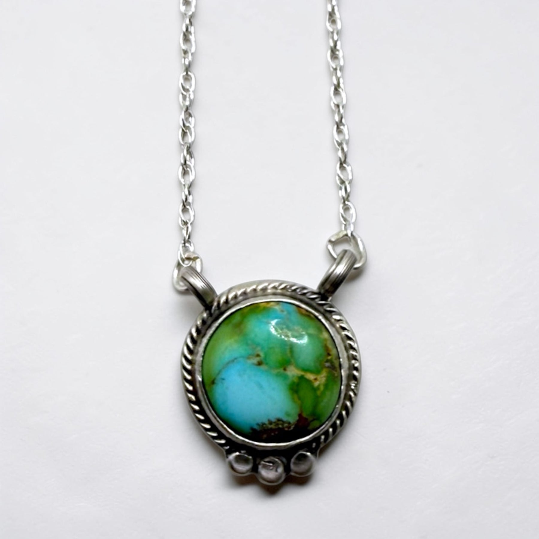 Button Sterling Silver Sonoran Gold Turquoise Necklace Native American Made