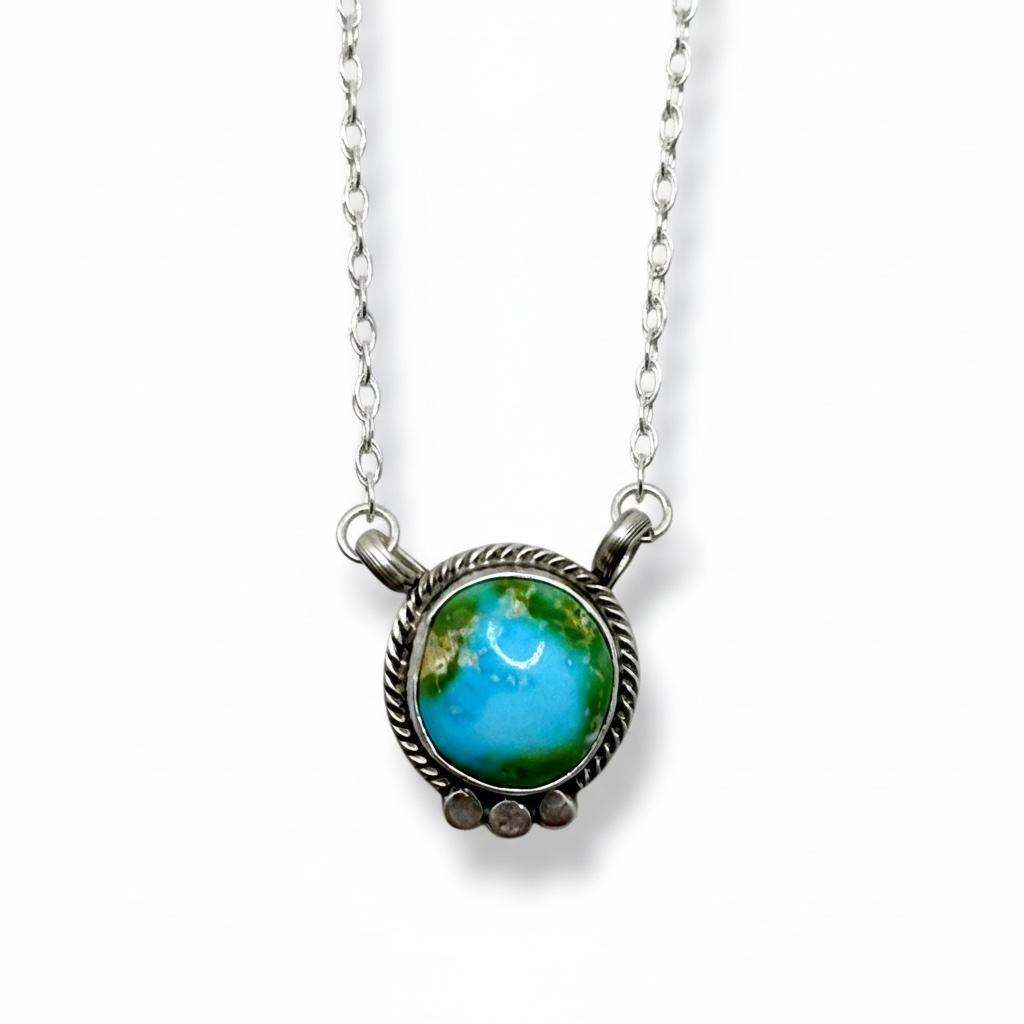 Button Sterling Silver Sonoran Gold Turquoise Necklace Native American Made